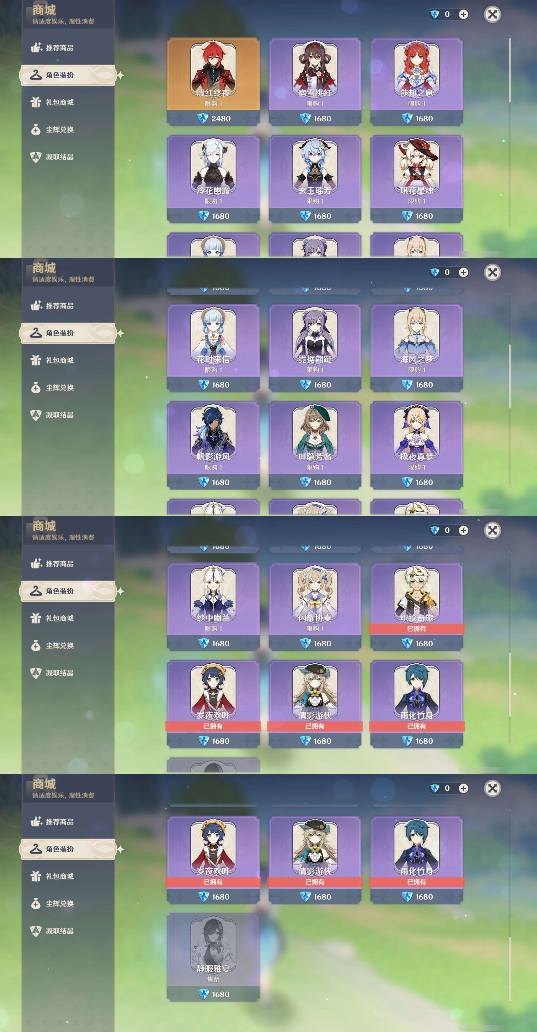 【时装】,静暇雅宴,雨化竹身,岁夜欢哗,炽绘奇旅,倩影游侠,【按区服: Mihoyo服】