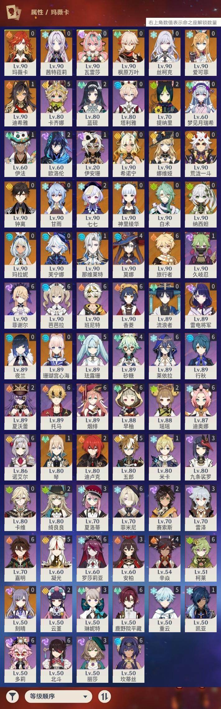 [13302744]60级/63黄/男主/29个五星角色/18个五星武器