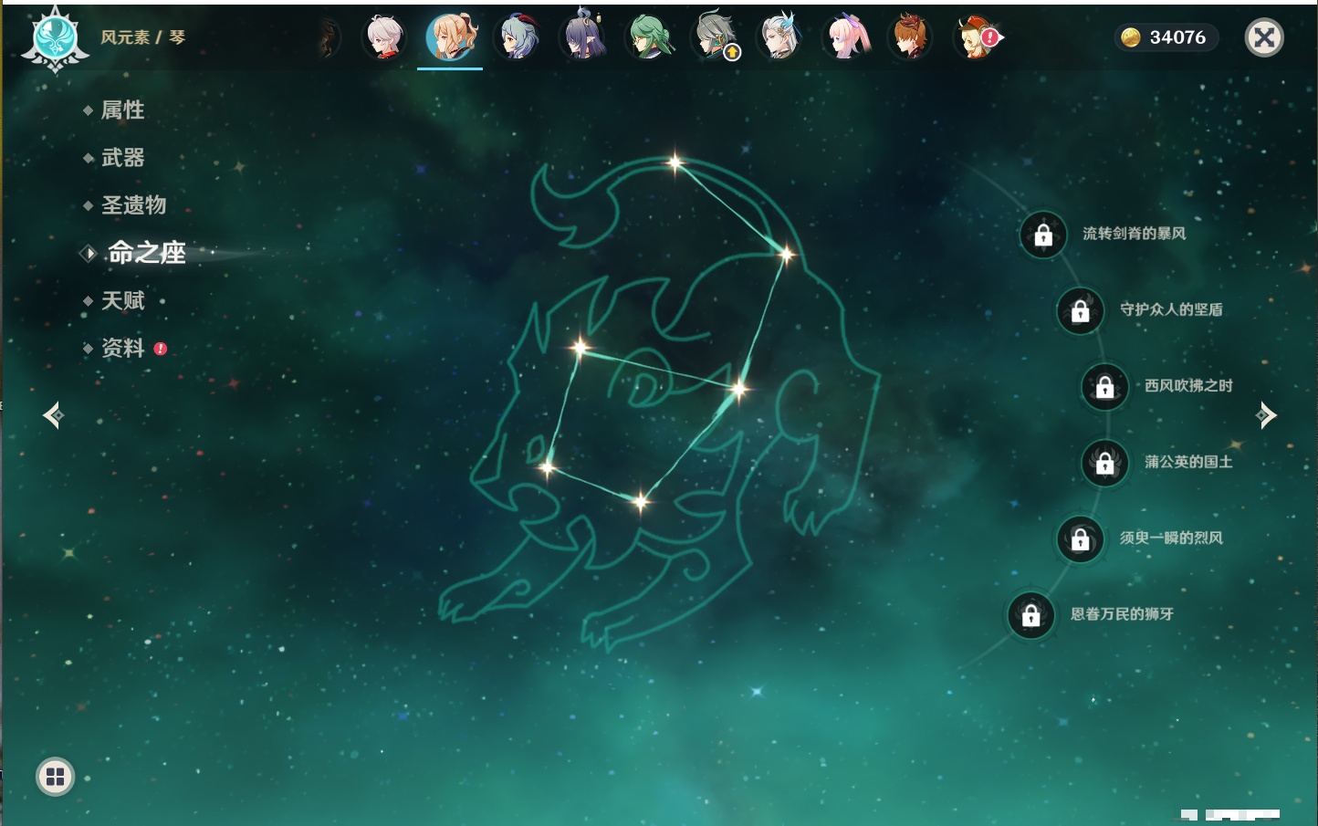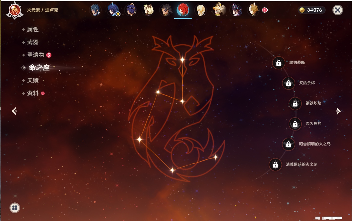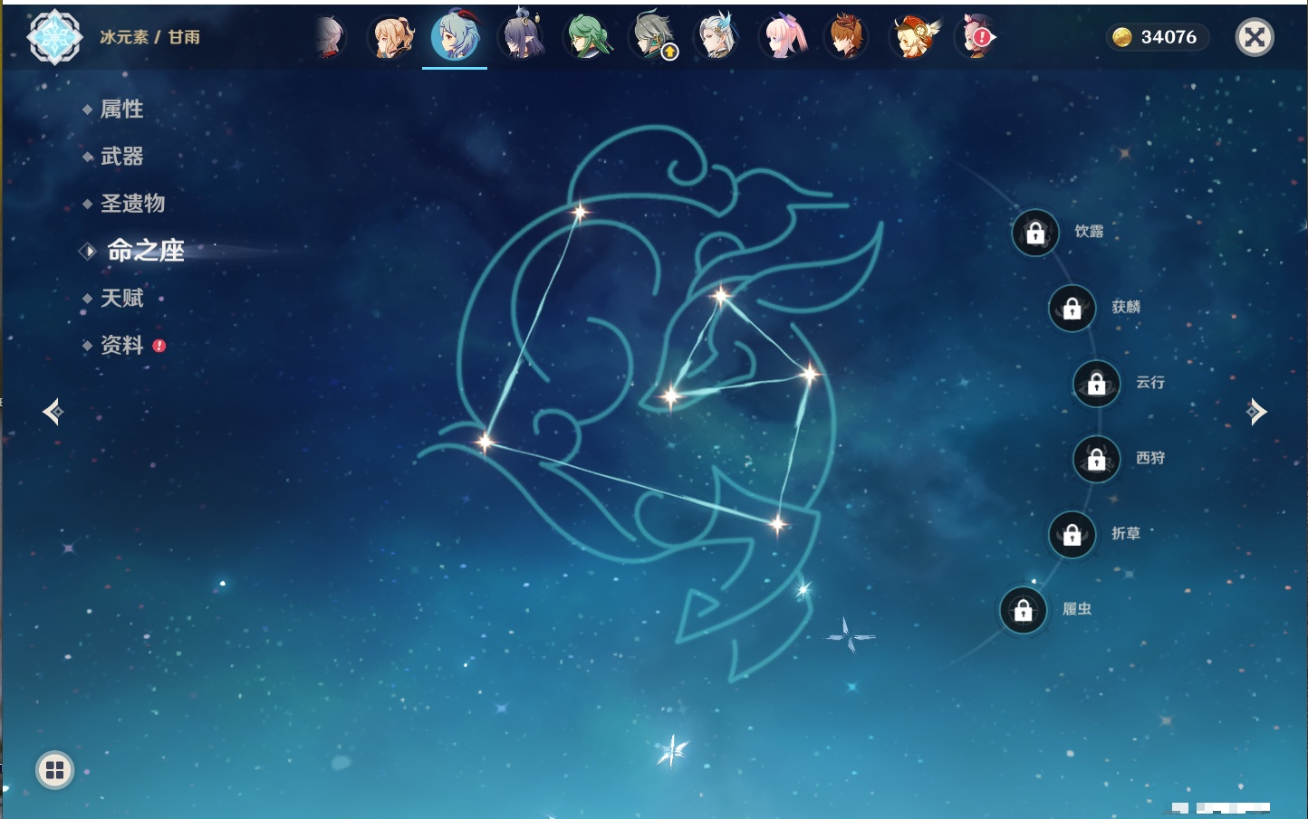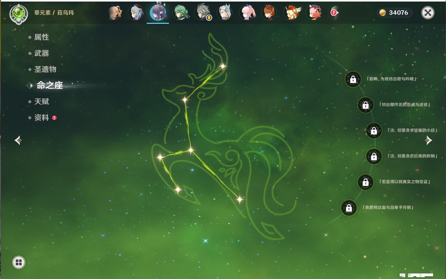 【6个五星武器】,精2天空之脊,精2狼的末路,精1碧落之珑,精1和璞鸢,精1岩峰巡歌,精1静水流涌之辉,