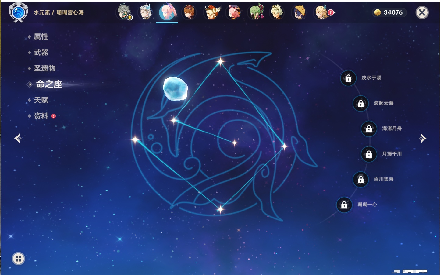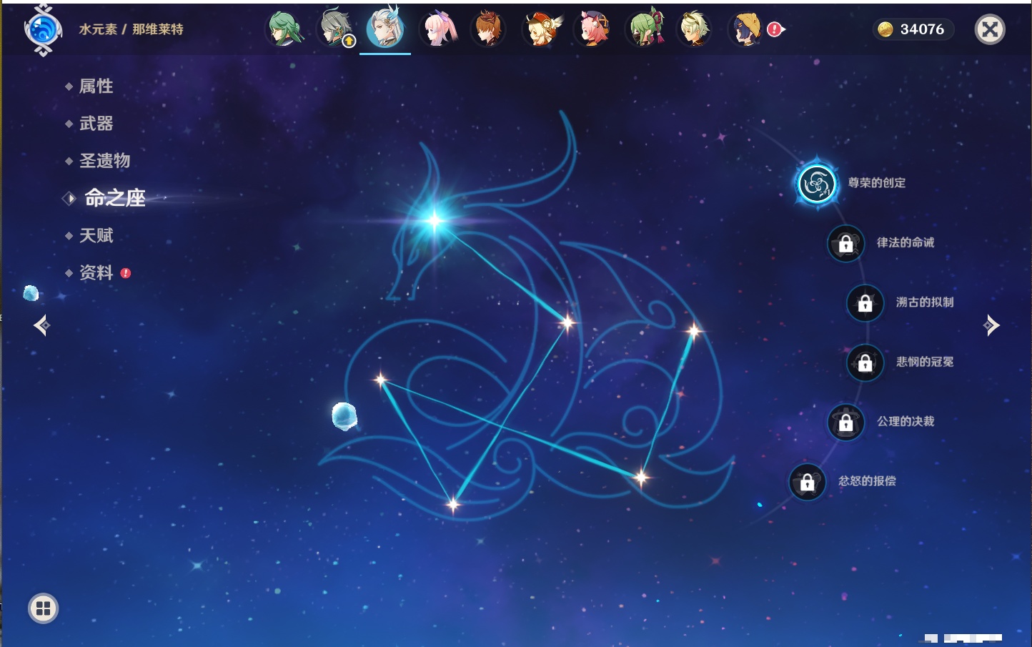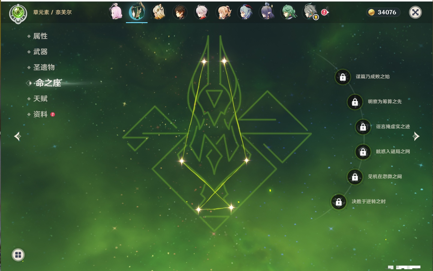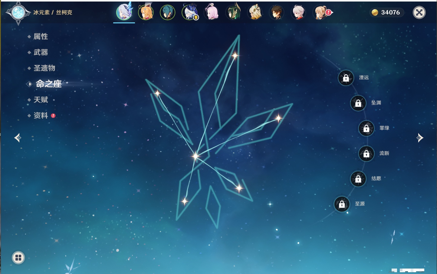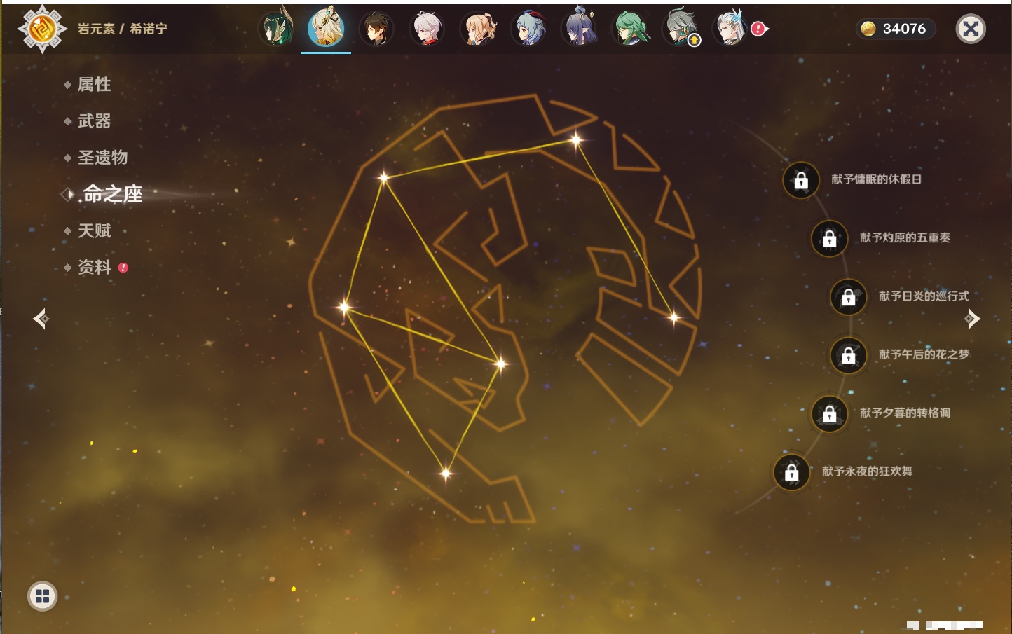【6个五星武器】,精2天空之脊,精2狼的末路,精1碧落之珑,精1和璞鸢,精1岩峰巡歌,精1静水流涌之辉,