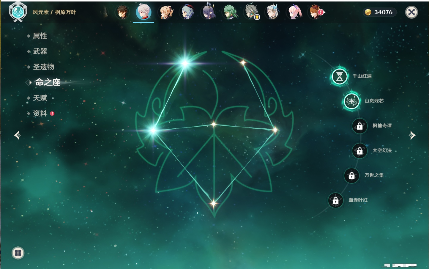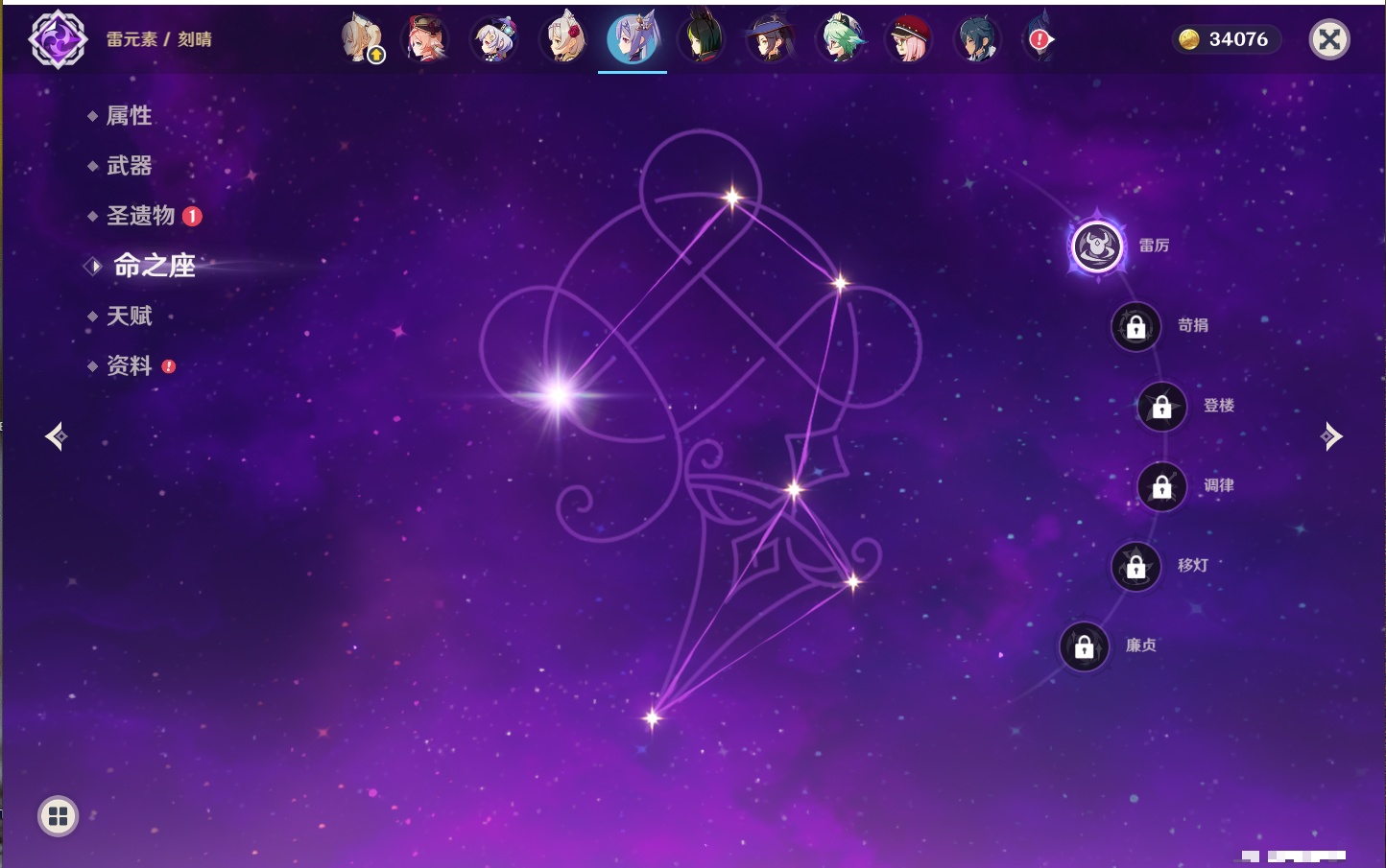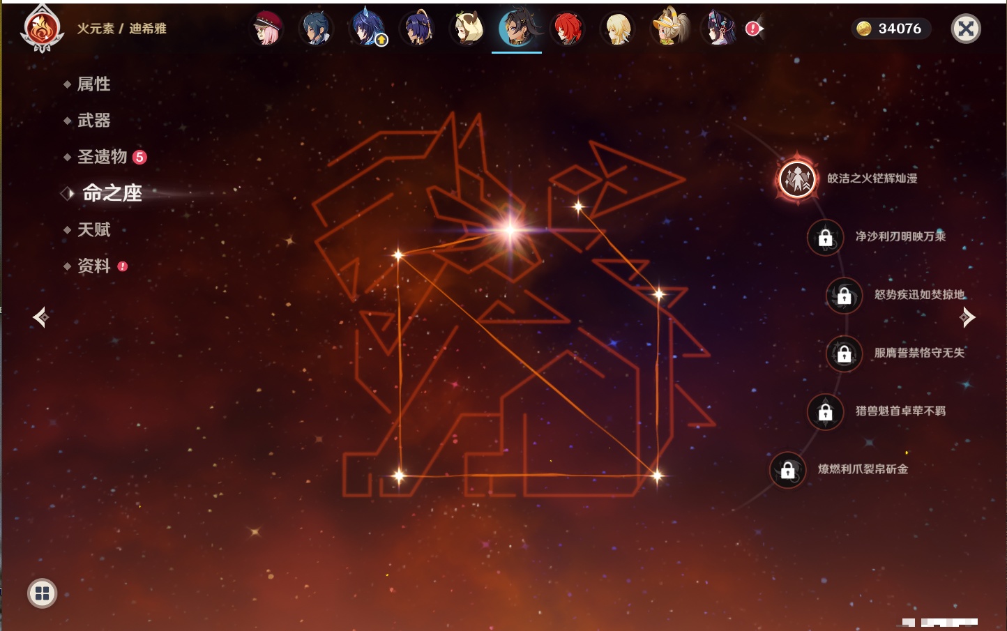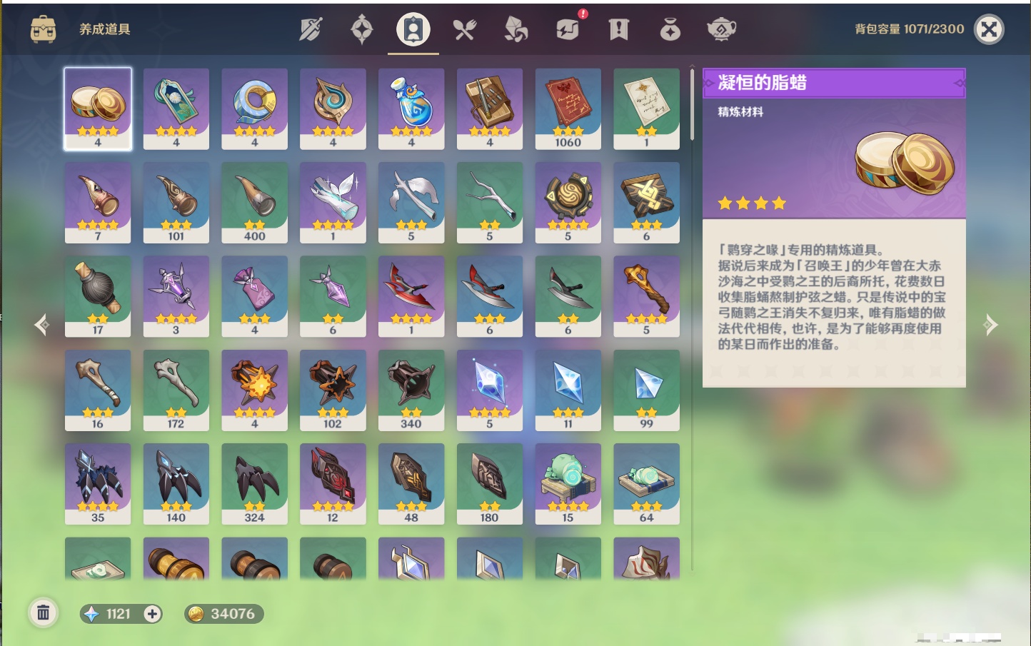 【6个五星武器】,精2天空之脊,精2狼的末路,精1碧落之珑,精1和璞鸢,精1岩峰巡歌,精1静水流涌之辉,