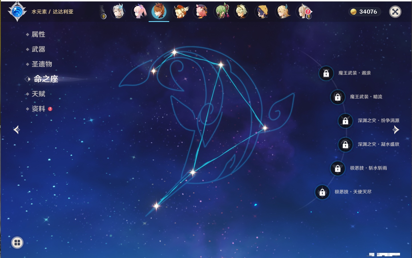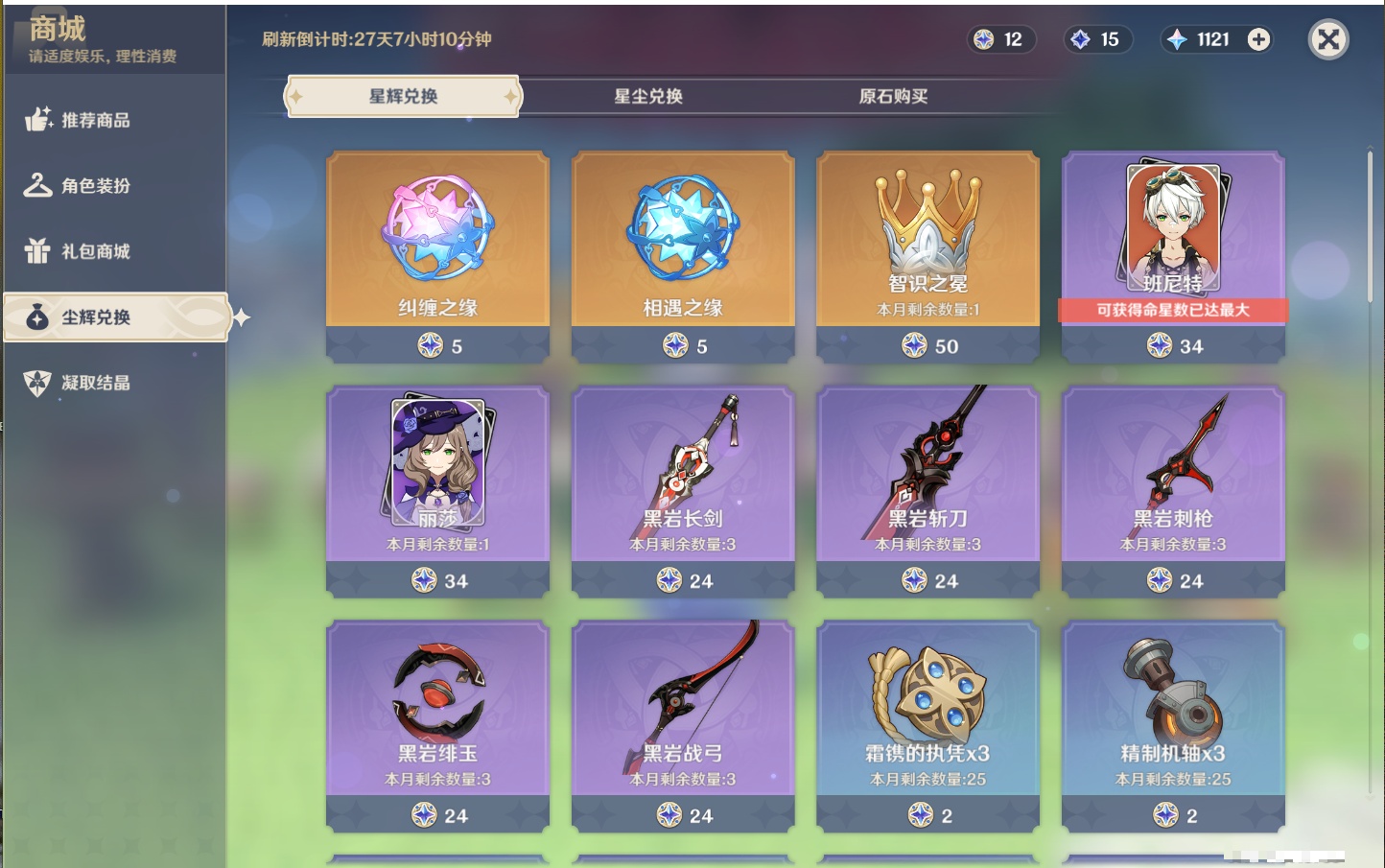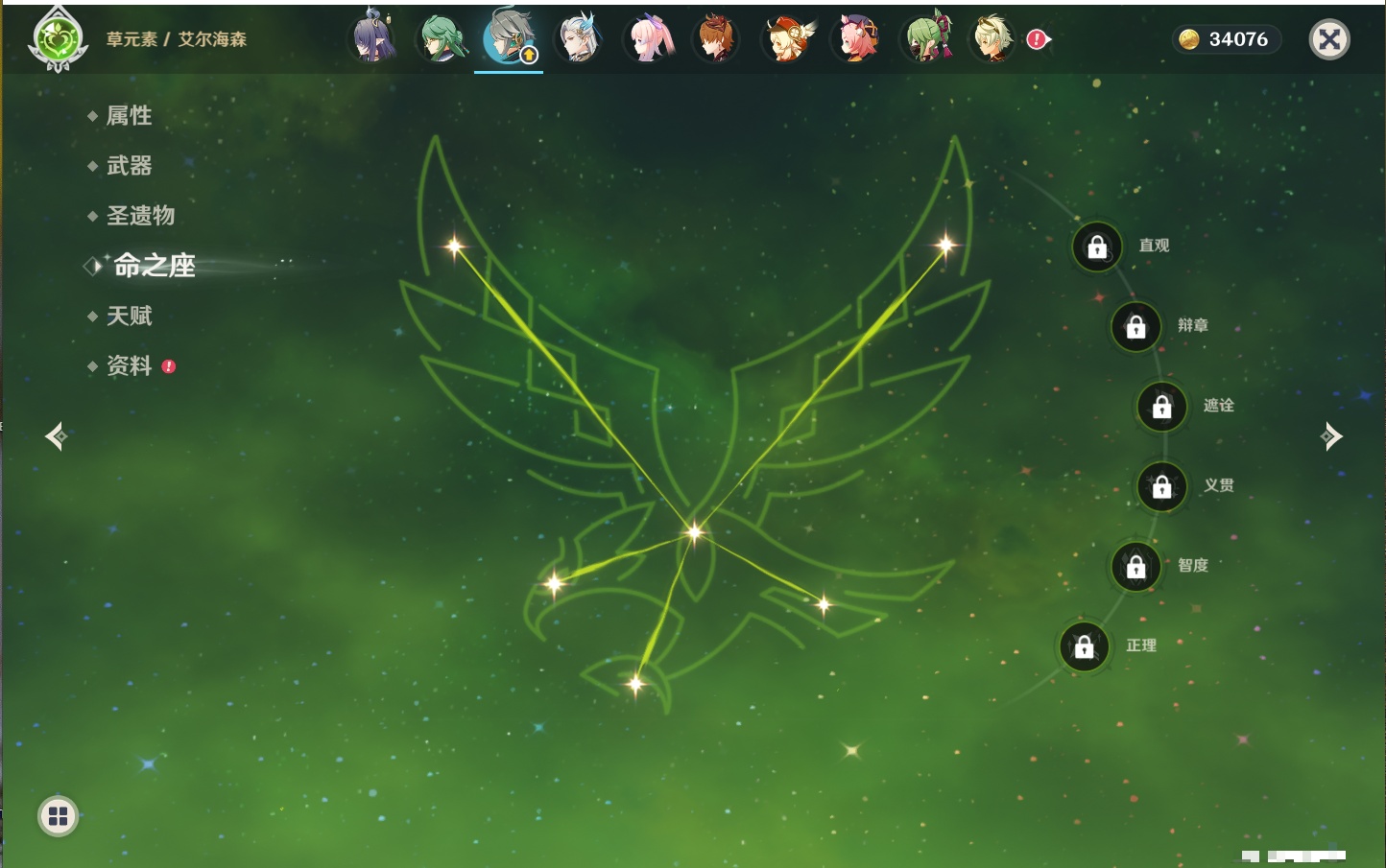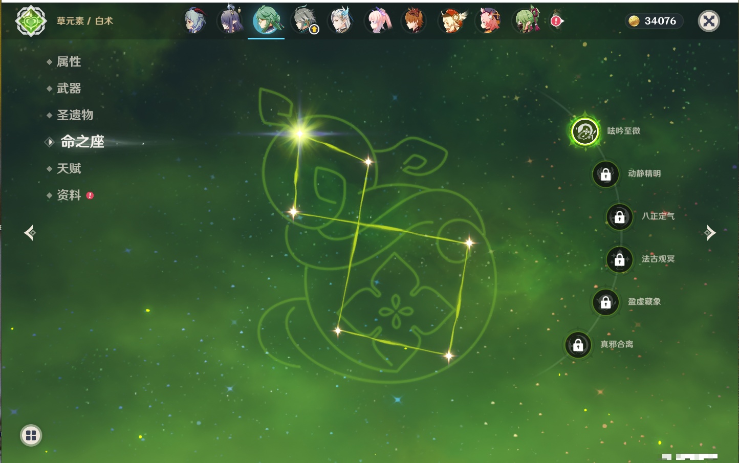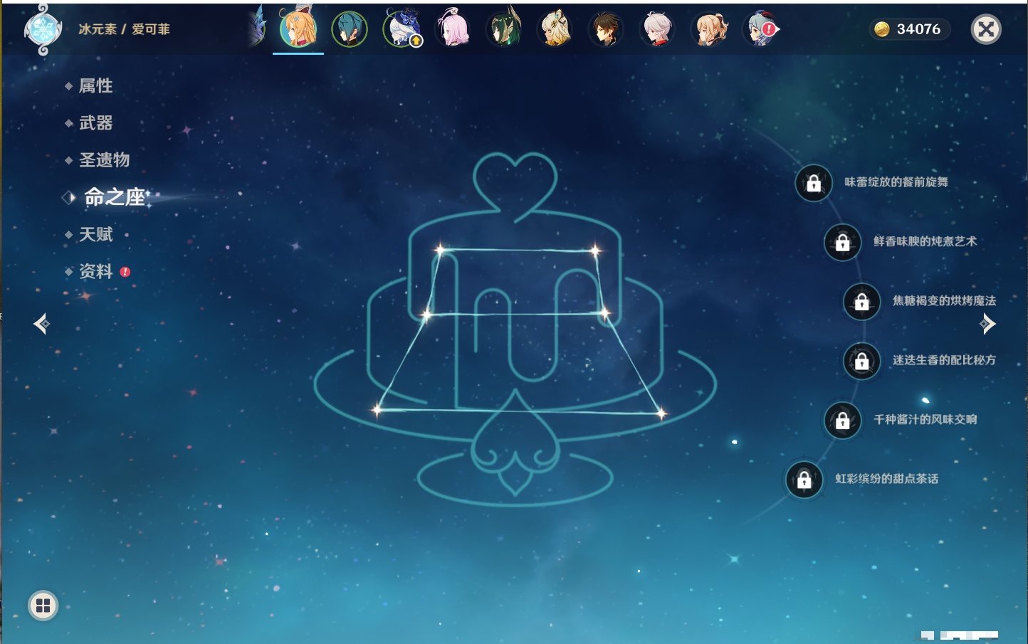 【6个五星武器】,精2天空之脊,精2狼的末路,精1碧落之珑,精1和璞鸢,精1岩峰巡歌,精1静水流涌之辉,