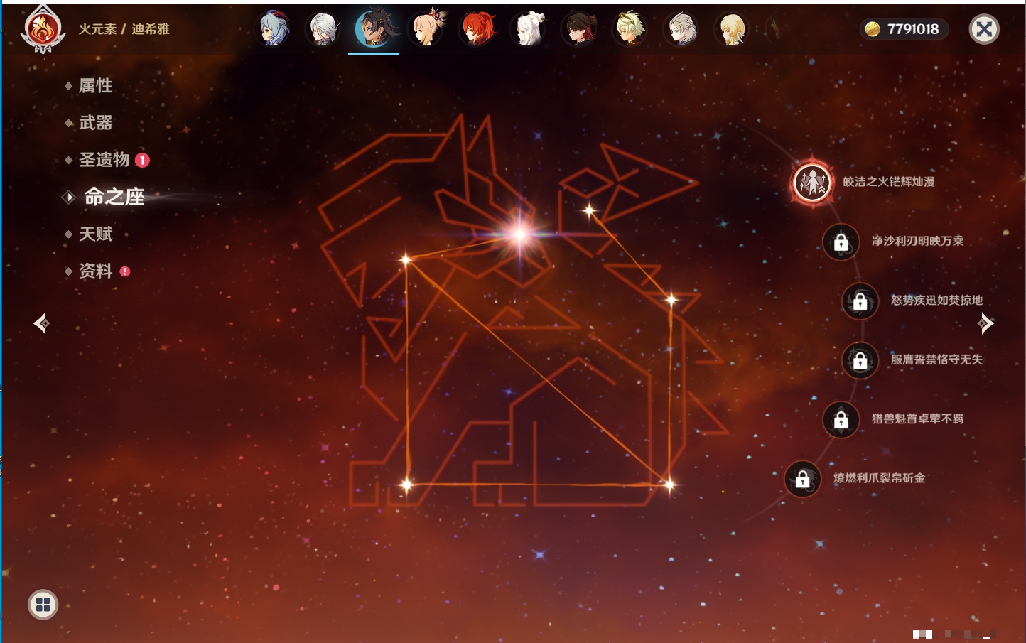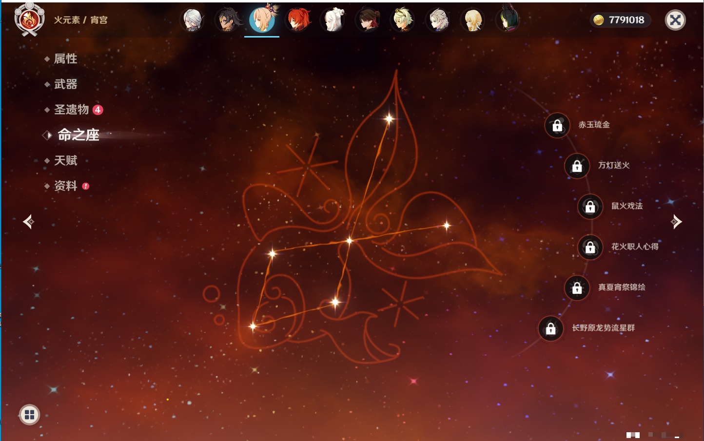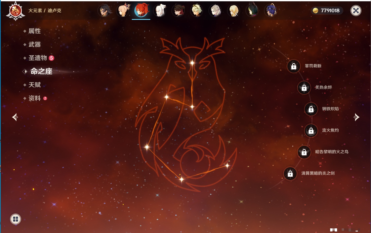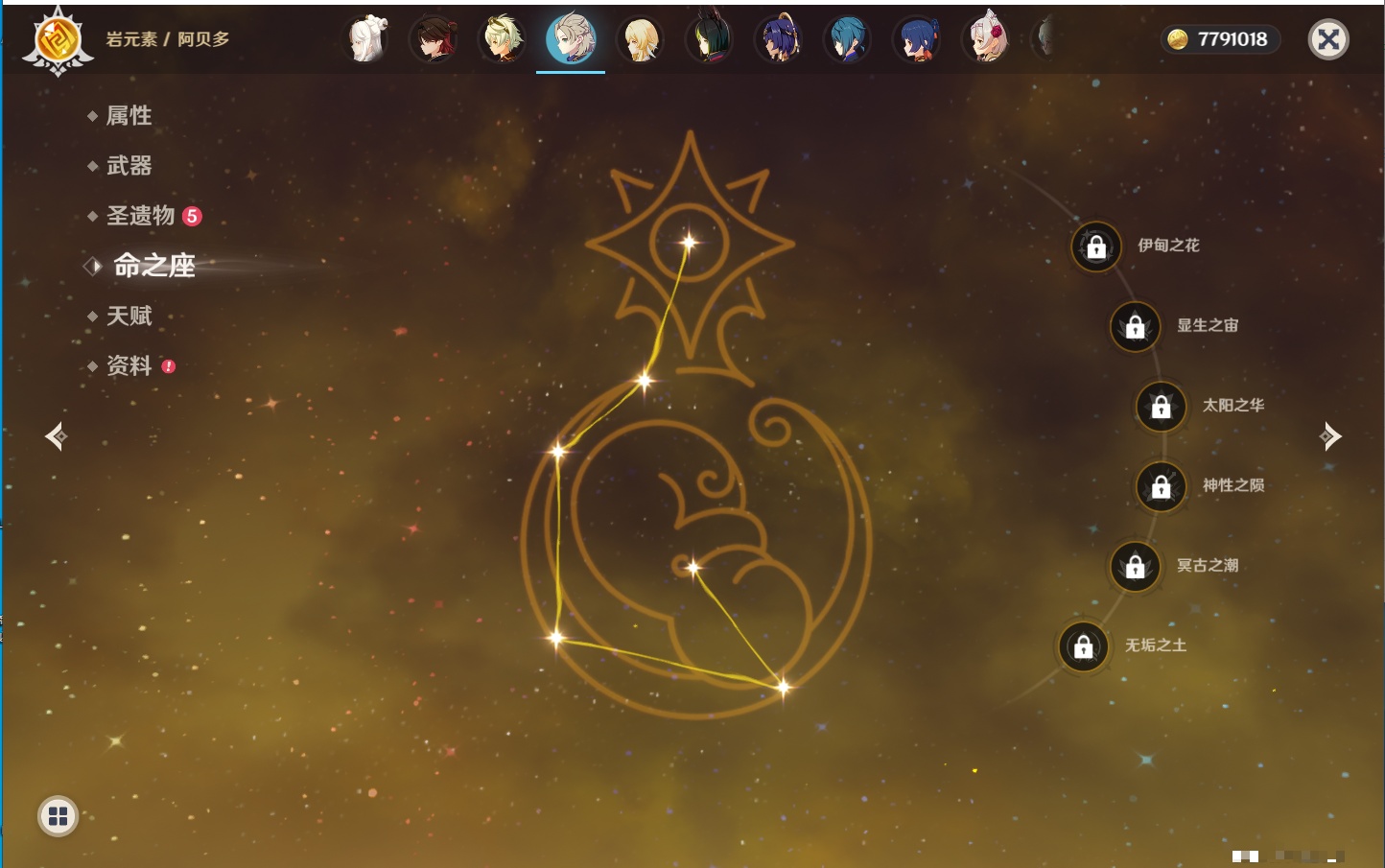 【16个五星角色】,2命提纳里,1命阿蕾奇诺,1命闲云,1命那维莱特,1命迪希雅,1命琴,0命克洛琳德,0命芙宁娜,0命枫原万叶,0命甘雨,0命宵宫,0命阿贝多,0命七七,0命莫娜,0命迪卢克,0命娜维娅,