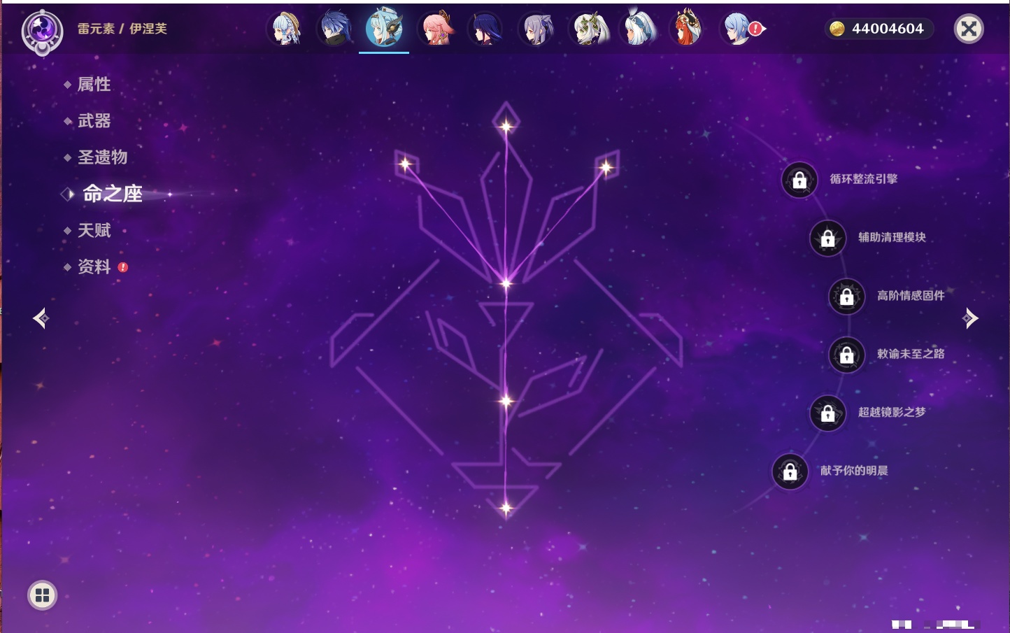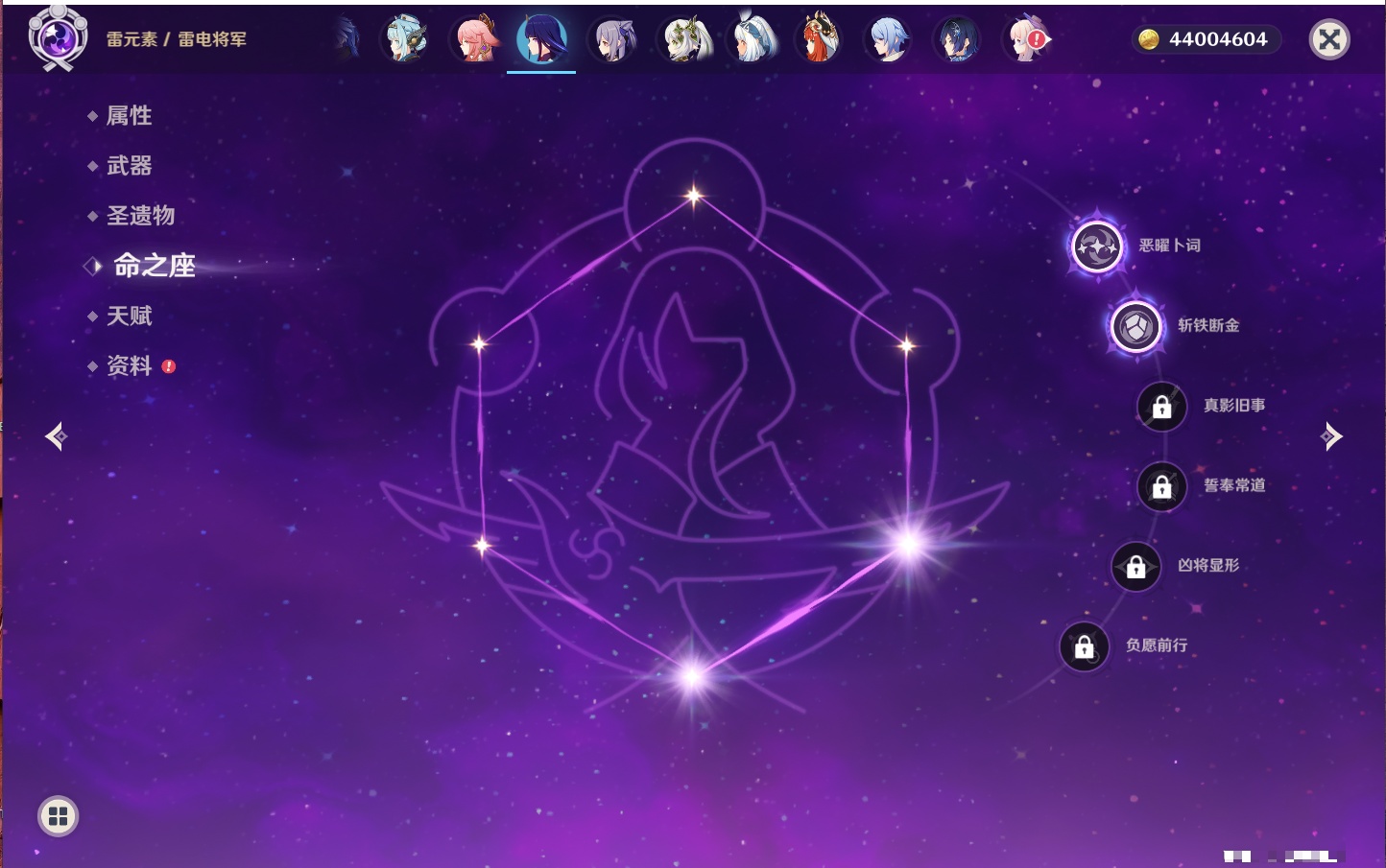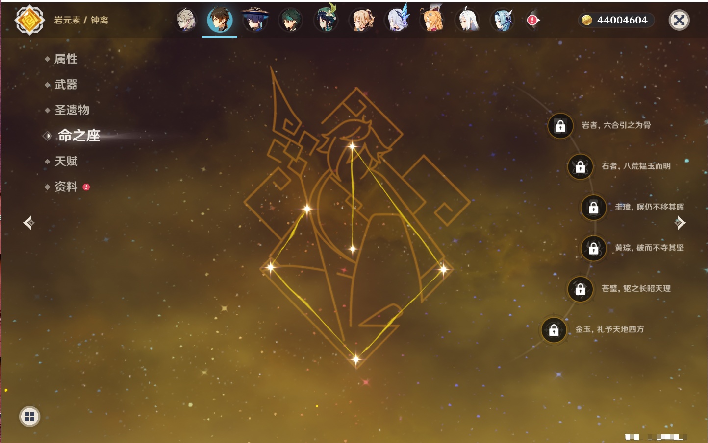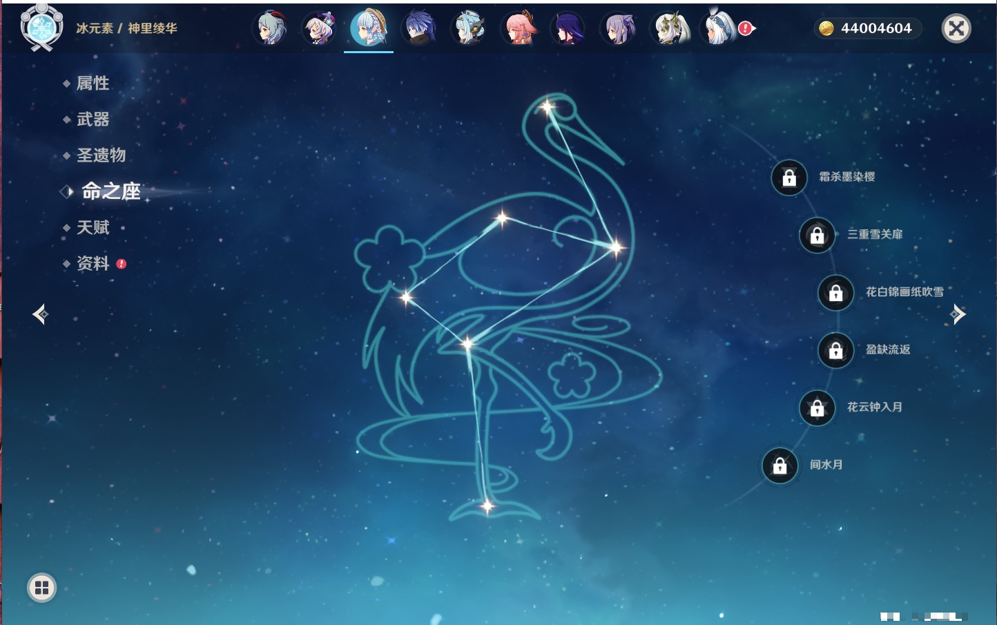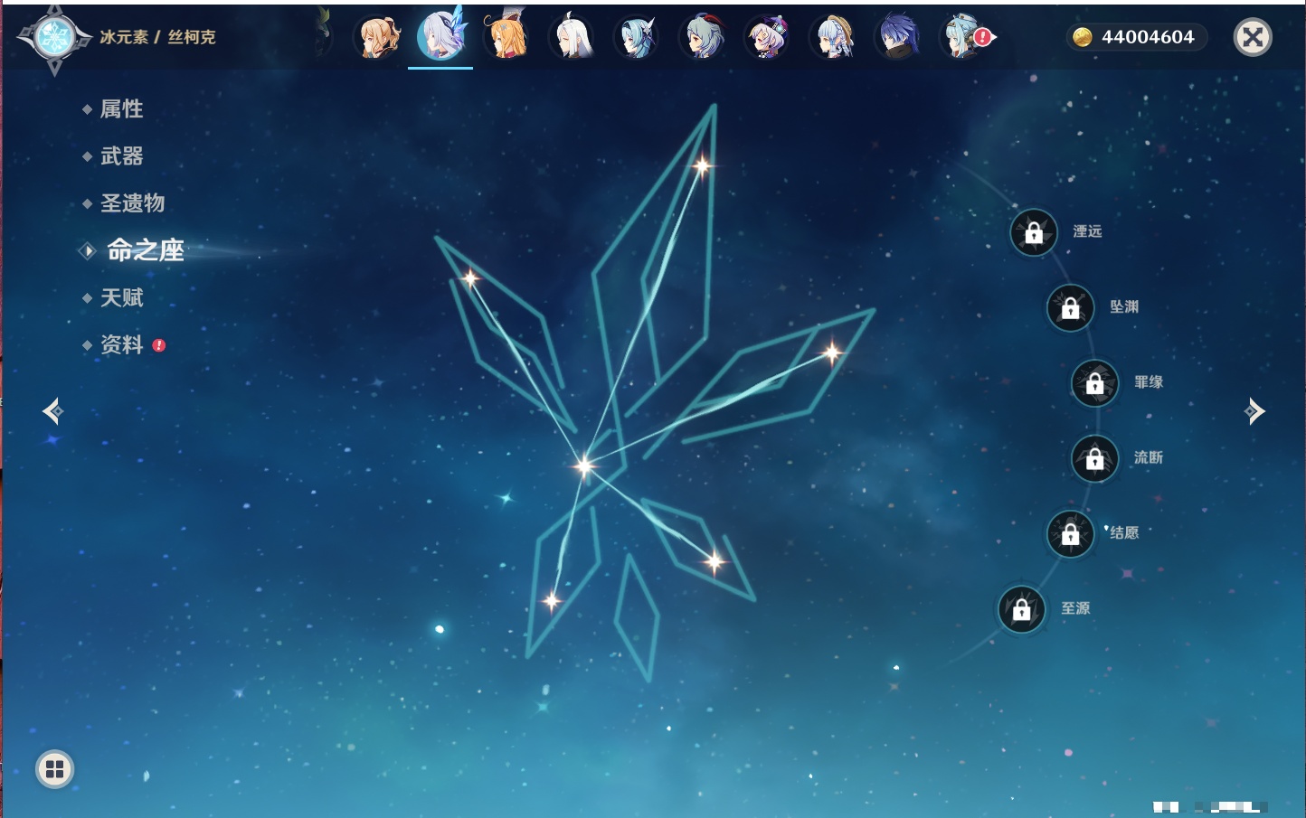 【35个五星角色】,4命七七,4命琴,4命迪卢克,3命刻晴,2命芙宁娜,2命迪希雅,2命雷电将军,1命那维莱特,1命纳西妲,1命夜兰,1命优菈,1命枫原万叶,1命胡桃,1命魈,1命莫娜,1命菲林斯,0命流浪者,0命妮露,0命提纳里,0命神里绫人,0命八重神子,0命申鹤,0命神里绫华,0命钟离,0命甘雨,0命温迪,0命可莉,0命阿贝多,0命珊瑚宫心海,0命希诺宁,0命丝柯克,0命爱可菲,0命伊涅芙,0命玛拉妮,0命奈芙尔,