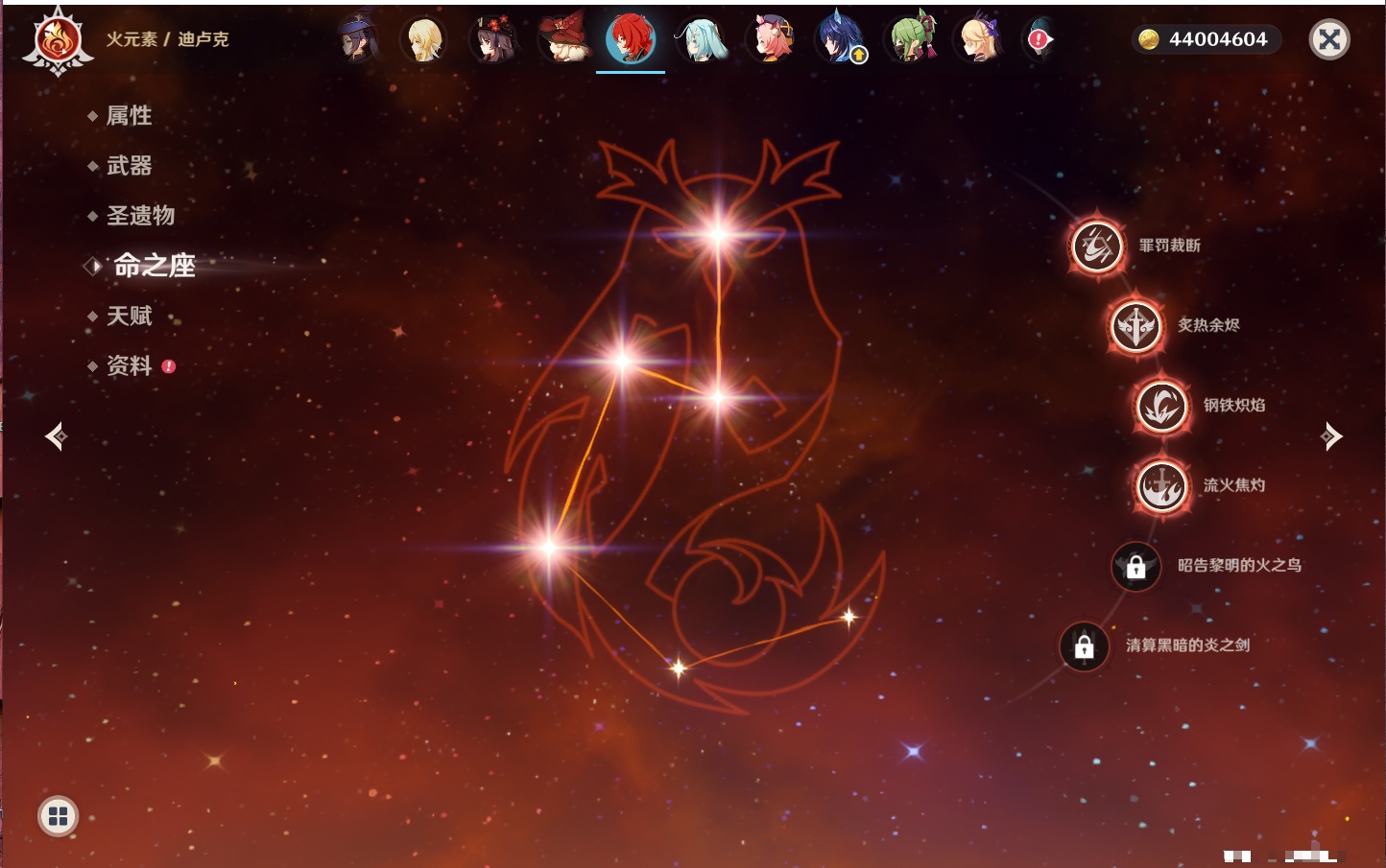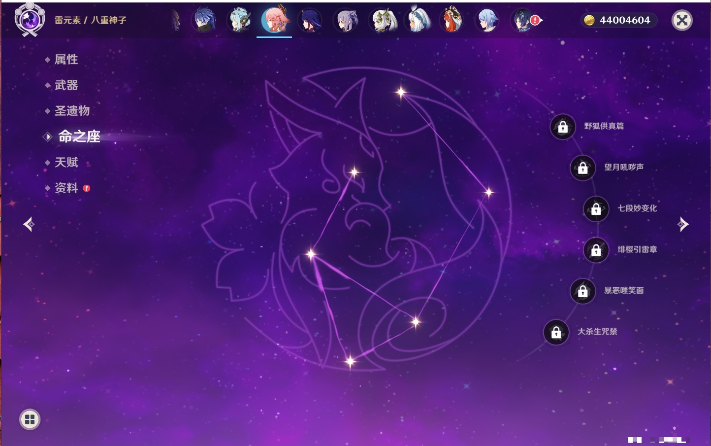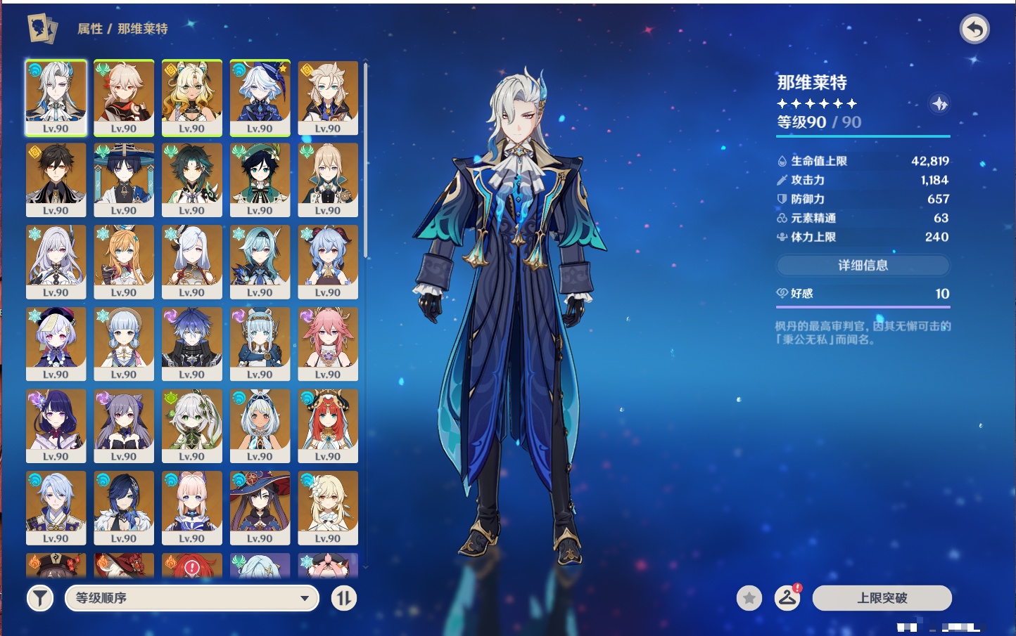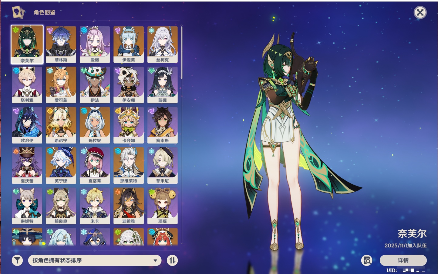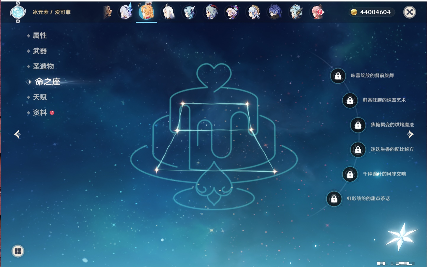 【35个五星角色】,4命七七,4命琴,4命迪卢克,3命刻晴,2命芙宁娜,2命迪希雅,2命雷电将军,1命那维莱特,1命纳西妲,1命夜兰,1命优菈,1命枫原万叶,1命胡桃,1命魈,1命莫娜,1命菲林斯,0命流浪者,0命妮露,0命提纳里,0命神里绫人,0命八重神子,0命申鹤,0命神里绫华,0命钟离,0命甘雨,0命温迪,0命可莉,0命阿贝多,0命珊瑚宫心海,0命希诺宁,0命丝柯克,0命爱可菲,0命伊涅芙,0命玛拉妮,0命奈芙尔,