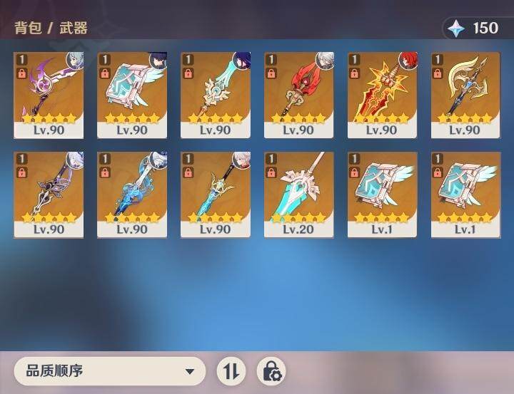【武器】 飞雷之弦振 天空之卷 天空之脊 护摩之杖 苍古自由之誓 天空之傲