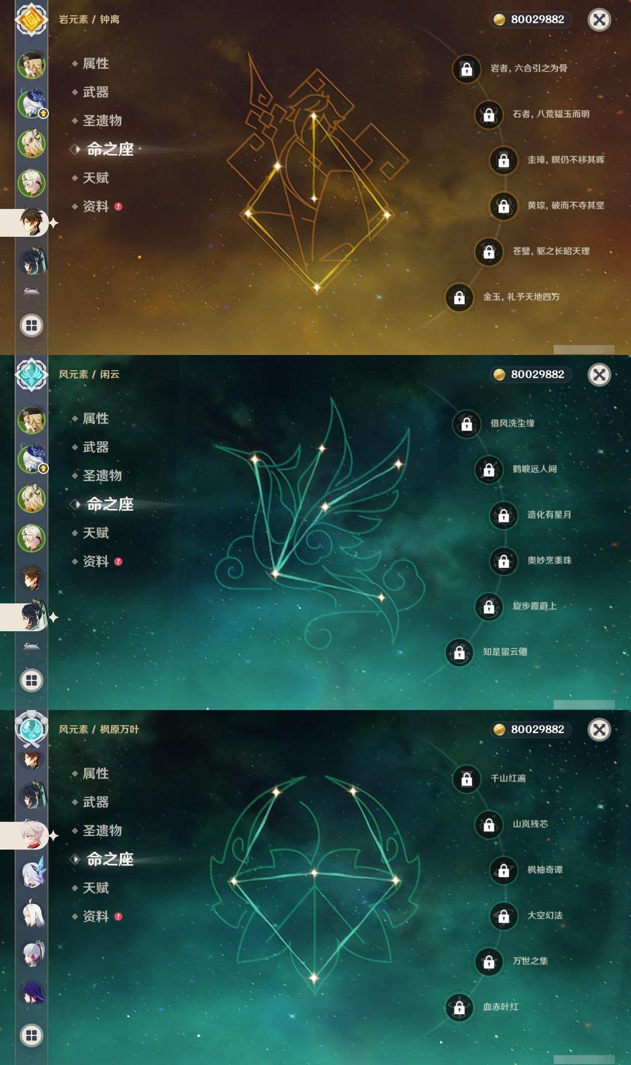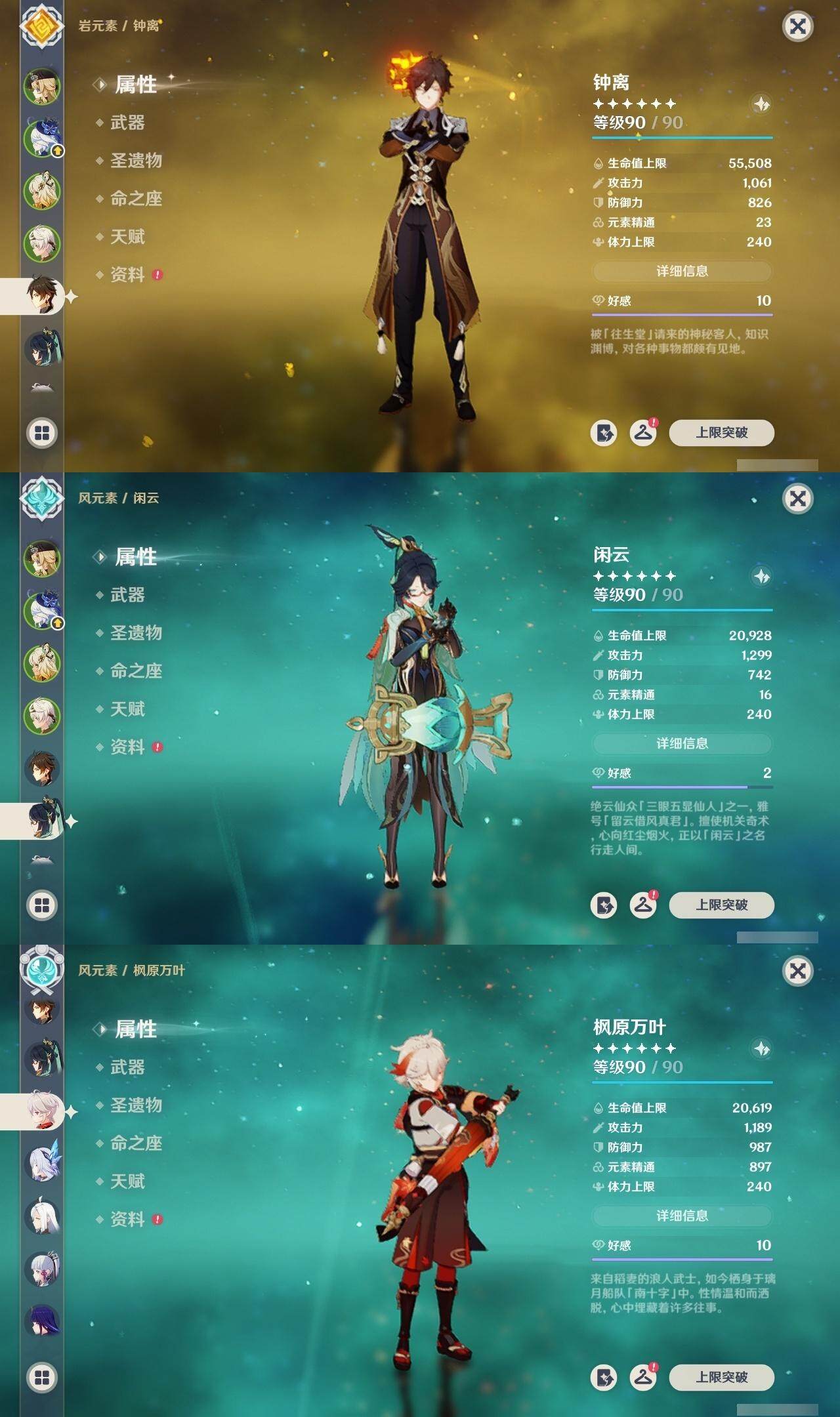 【角色】 钟离 枫原万叶 申鹤 神里绫华 雷电将军 纳西妲 夜兰 胡桃 八重神子 珊瑚宫心海 魈 莫娜 迪卢克 琴 七七 迪希雅 提纳里 刻晴