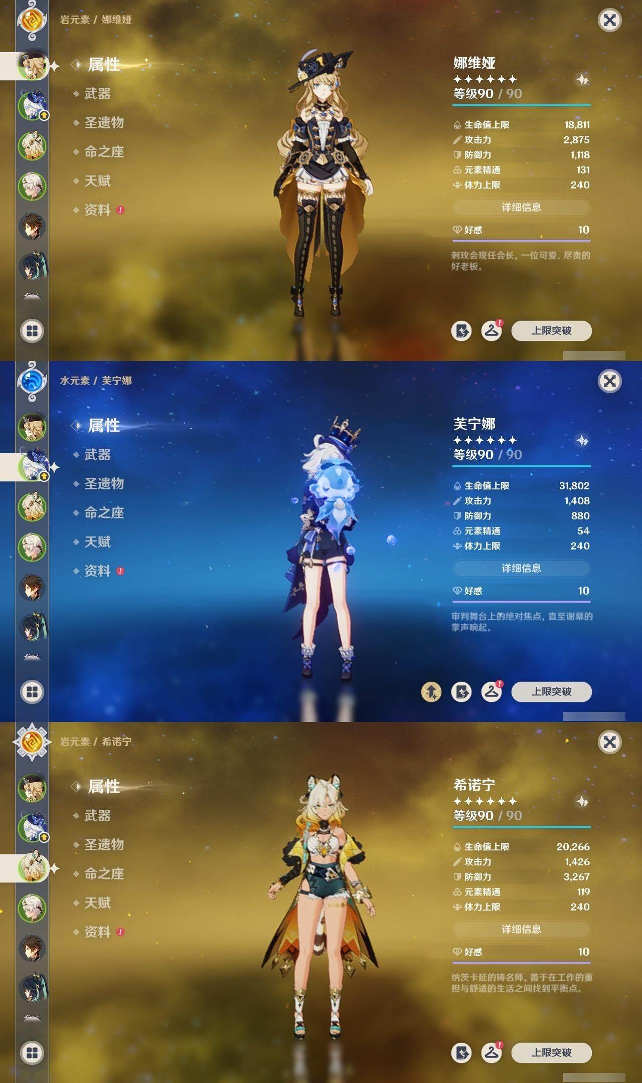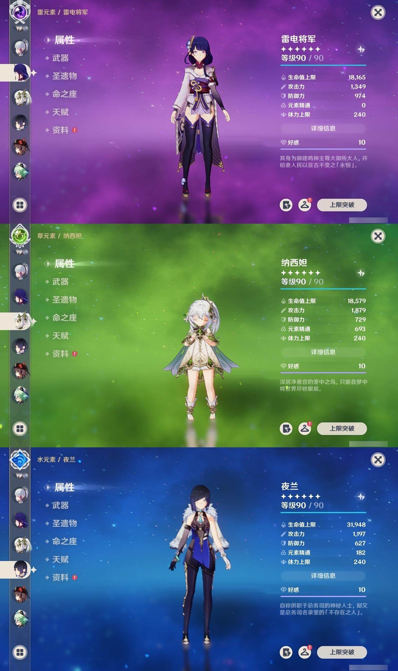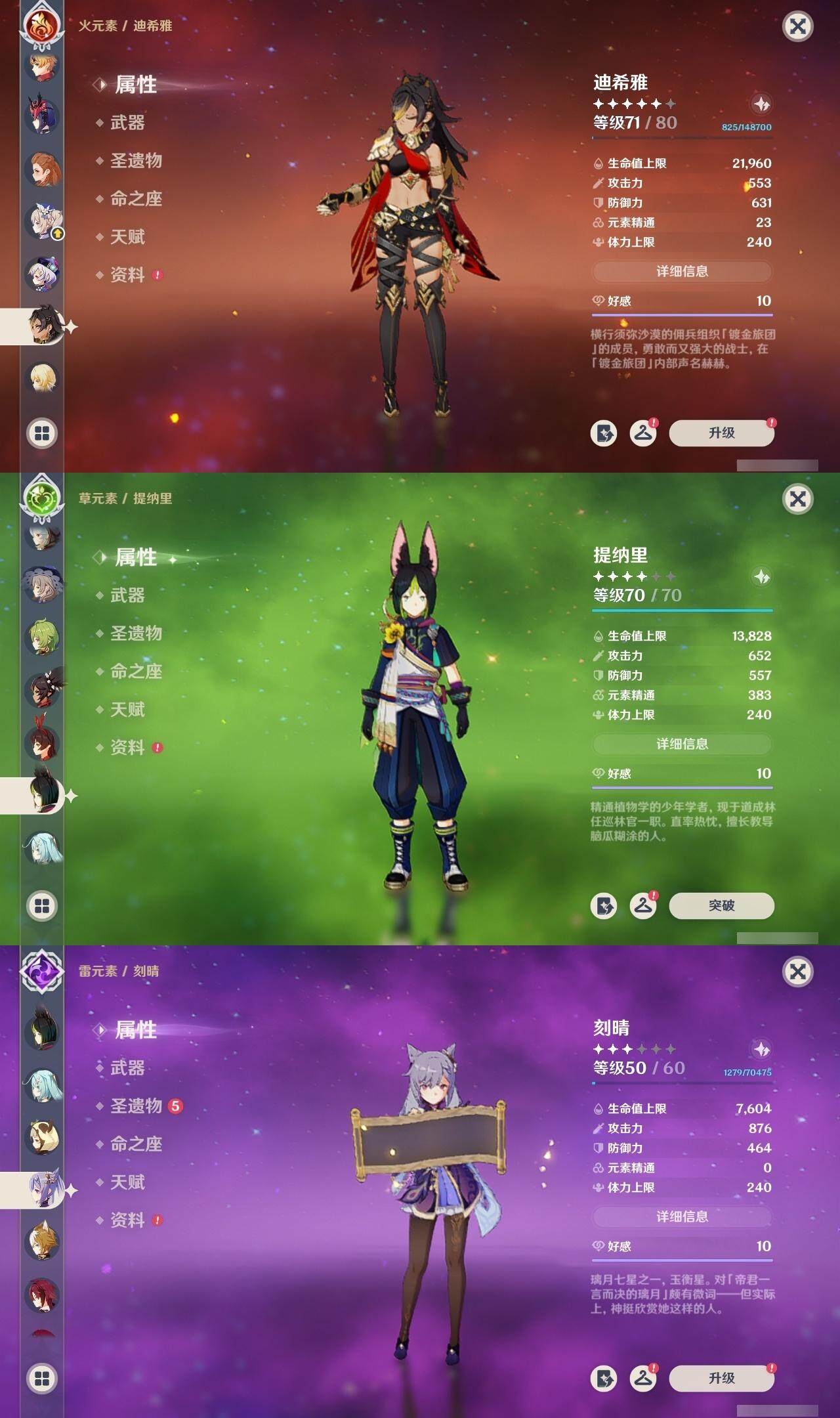 【一命角色】 1命夜兰 1命胡桃 1命迪希雅 1命提纳里