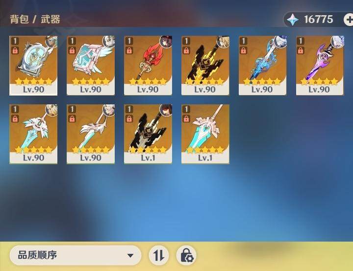 【武器】 四风原典 天空之卷 护摩之杖 无工之剑 雾切之回光 天空之刃 风鹰剑 天空之傲