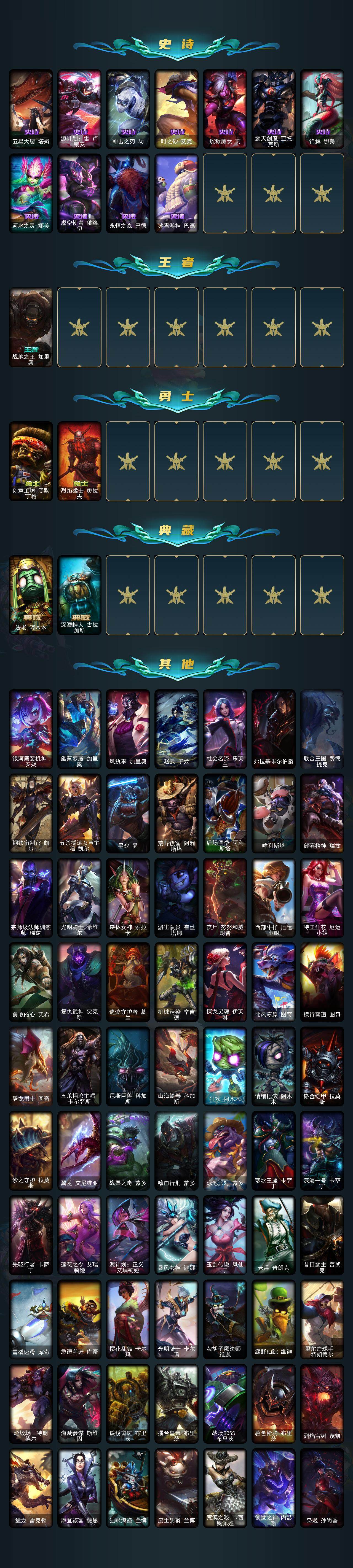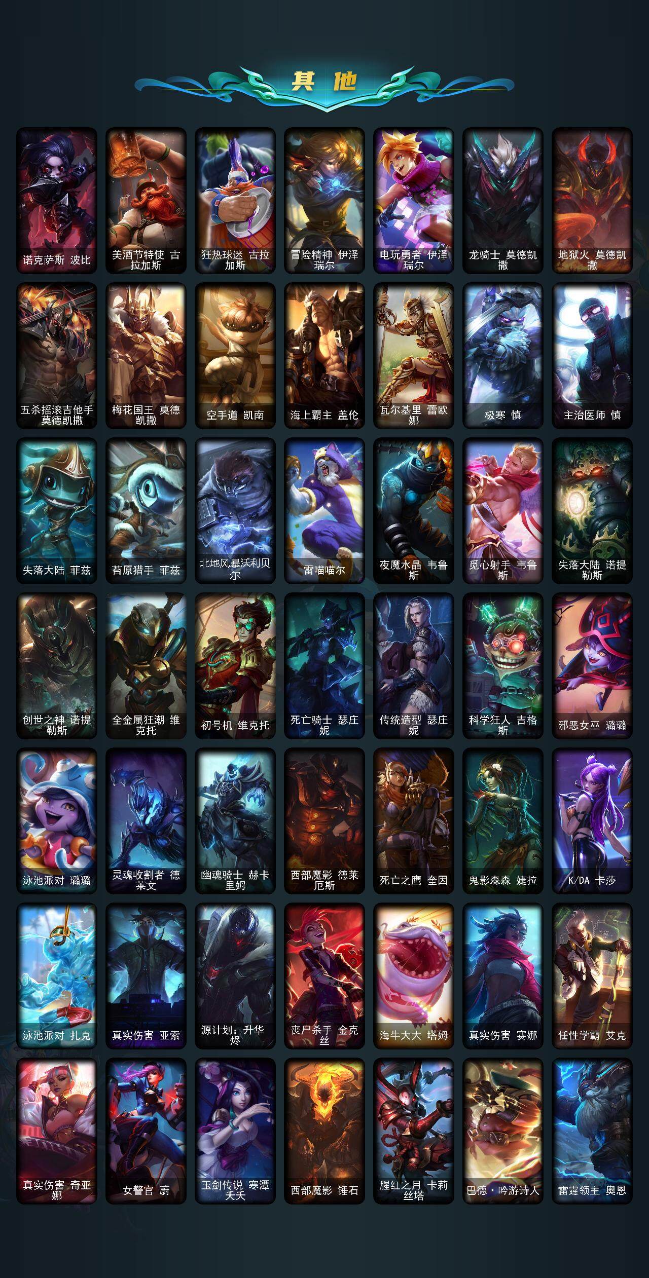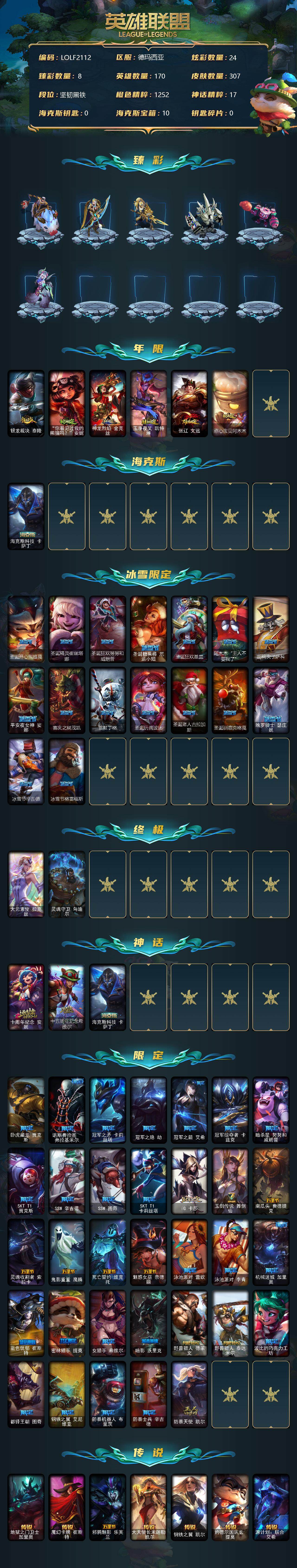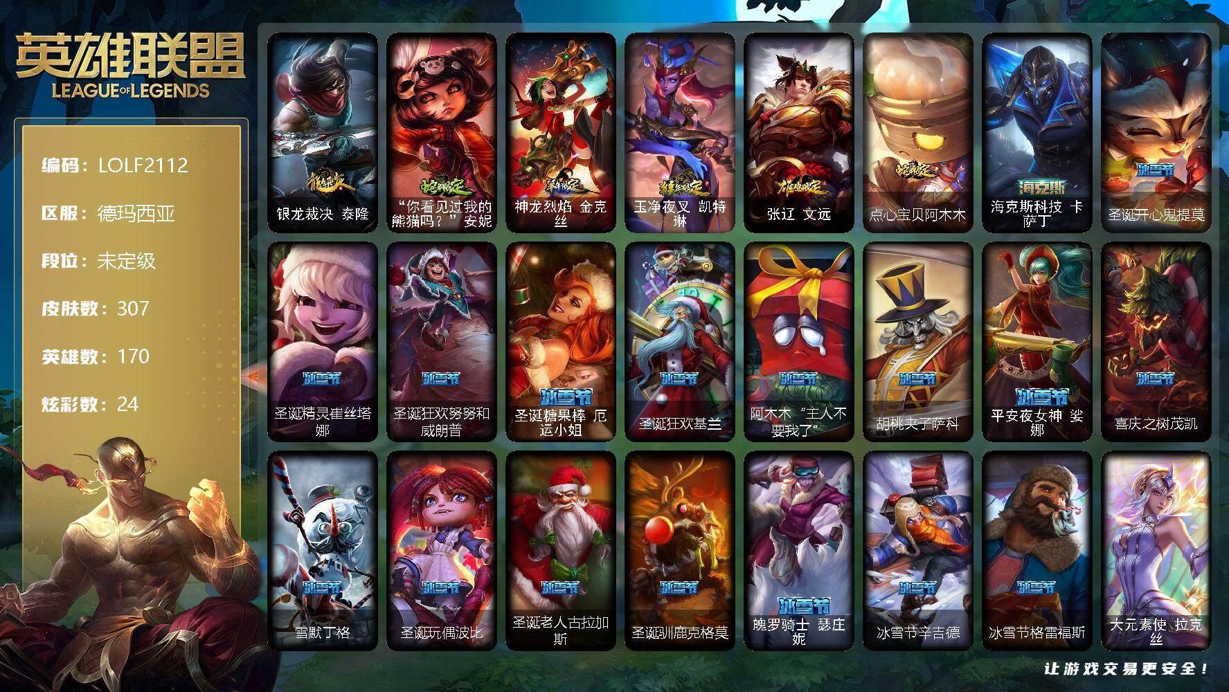 【LOLF2112】170英雄/307皮肤/2终极/3神话/56限定/8臻彩/24炫彩/34传说/88史诗/未定级/天龙之子卡莎飞龙乘云/无畏骑士瑟庄妮赤子初心/冠军之箭艾希凯旋圣装/赵云子龙炫金将军/霸天巨兽雪崩墨菲特/可爱可爱粉红红布里茨/魔女阿卡丽虚荣/净雪之月莫甘娜冬虹/银龙裁决泰隆/你看见过我的熊猫吗安妮/神龙烈焰金克丝/玉净夜叉凯特琳/张辽文远/点心宝贝阿木木/海克斯科技卡萨丁/圣诞开心鬼提莫/圣诞精灵崔丝塔娜/圣诞狂欢努努和威朗普/圣诞糖果棒厄运小姐/圣诞狂欢基兰/阿木木“主人不要我了”/胡桃夹子萨科/平安夜女神娑娜/喜庆之树茂凯/雪默丁格/圣诞玩偶波比/圣诞老人古拉加斯/圣诞驯鹿克格莫/魄罗骑士瑟庄妮/冰雪节辛吉德/冰雪节格雷福斯/大元素使拉克丝/灵魂守卫乌迪尔/十周年纪念安妮/十五周年纪念希维尔/卧虎藏龙贾克斯/诺斯费拉图弗拉基米尔/冠军之矛卡莉丝塔/冠军之隐劫/冠军之箭艾希/冠军掠夺者卡兹克/暗杀星努努和威朗普/SKTT1贾克斯/SSW辛吉德/SSW图奇/SKTT1卡莉丝塔/iG卡莎/玉剑传说舞剑仙/南瓜头费德提克/灵魂收割者索拉卡/鬼影重重魔腾/死亡誓约维克托/魅惑女巫奈德丽/泳池派对蕾欧娜/泳池派对李青/机械迷城加里奥/蓝色忧郁崔斯特/密林猎手提莫/女猎手希维尔/暗影沃里克/野兽猎人德莱文/野兽猎人泰达米尔/波比的巧克力工坊/都铎王朝图奇/钢铁之翼艾尼维亚/防暴机器人布里茨/防暴士兵辛吉德/防暴天使凯尔/双城之战2微光实验室辛吉德/地狱之门卫士加里奥/魔幻卡牌崔斯特/邪鸦魅影乐芙兰/大天使长米迦勒凯尔/钢铁之翼凯尔/约德尔国队长提莫/源计划联合艾希/鬼魂新娘莫甘娜/战地巨兽科加斯/电玩女神娑娜/女主播迦娜/最终BOSS维迦/女警狙击凯特琳/未来战士凯特琳/苹果机器人布里茨/神拳李青/炼狱魔犬内瑟斯/屠龙勇士潘森/战斗学院伊泽瑞尔/神王盖伦/黯黑魔龙希瓦娜/冰霜亚龙希瓦娜/焰尾妖狐阿狸/苍穹之光韦鲁斯/宇航员诺提勒斯/女校长菲奥娜/霸天异形卡兹克/灌篮高手德莱厄斯/蔷薇绅士杰斯/奥德赛凯隐/星之守护者金克丝/真实伤害艾克/暗星锤石/灵魂莲华锤石/冰霜烈焰安妮/安伯斯与提妮/重生之沙费德提克/圣光审判凯尔/战场公主希维尔/钢铁之心希维尔/月光女神阿忒弥斯索拉卡/兔宝宝提莫/熊猫提莫/女船长厄运小姐/国王泰达米尔/黑色荆棘莫甘娜/死神卡尔萨斯/卡尔萨斯祸害之光/侏罗纪化石科加斯/熔火之心拉莫斯/武动巅峰萨科/战争血统蒙多/掠星魔刃卡萨丁/夜刃艾瑞莉娅/穿着正装的恶魔维迦/北领前线斯维因/抵抗军天使凯特琳/铁血狙击手凯特琳/黑曜石守护者墨菲特/霸天巨兽墨菲特/无畏号墨菲特/海贼魅影卡特琳娜/蓝焰梦魔魔腾/枯萎之壤雷克顿/龙骑统帅嘉文四世/暗星嘉文四世/腥红之月伊莉丝/灵骨工匠奥莉安娜/三昧真火孙悟空/V字仇杀者布兰德/地下拳王李青/苍穹之光薇恩/战地机甲斯卡纳/法老王朝内瑟斯/四神之力乌迪尔/军神战甲波比/血色之锤波比/飞车暴走族古拉加斯/钢铁意志潘森/银色之牙阿卡丽/刺客信条凯南/腥红之月凯南/铁甲雄心盖伦/钢铁烈阳蕾欧娜/源计划山蕾欧娜/血色精锐锐雯/侏罗纪化石克格莫/战地机甲克格莫/腥红之月鬼武者慎/战国大名慎/奥术光辉拉克丝/ODST地狱伞兵拉克丝/沙之守护泽拉斯/黑帮教父格雷福斯/海牛猎手菲兹/铁血猎人雷恩加尔/暗黑武士雷恩加尔/白色死神韦鲁斯/暗星韦鲁斯/沙之守护卡兹克/暗星卡兹克/暗黑女武神黛安娜/仲裁圣女辛德拉/野火之藤婕拉/邪恶魔人扎克/腥红之月亚索/苍穹之光维克兹/腥红之月烬/黯焰双魂千珏/银河魔装机神千珏/黑帮狂花金克丝/五星大厨塔姆/源计划雷卢锡安/冲击之刃劫/时之砂艾克/炼狱魔女蔚/霸天剑魔亚托克斯/锦鲤娜美/河水之灵娜美/虚空使者俄洛伊/永恒之森巴德/冰雪游神巴德/战地之王加里奥/创意工坊黑默丁格/烈焰猛士奥拉夫/法老阿木木/深潜蛙人古拉加斯/银河魔装机神安妮/幽蓝梦魇加里奥/风执事加里奥/赵云子龙/社会名流乐芙兰/弗拉基米尔伯爵/联合王国费德提克/钢铁审判官凯尔/五杀摇滚女声主唱凯尔/星战易/荒野镖客阿利斯塔/后场堡垒阿利斯塔/哞利斯塔/部落精神瑞兹/宗师级法师训练师瑞兹/光明骑士希维尔/森林女神索拉卡/游击队员崔丝塔娜/丧尸努努和威朗普/西部牛仔厄运小姐/特工狂花厄运小姐/勇敢的心艾希/复仇武神贾克斯/遗迹守护者基兰/机械污染辛吉德/探戈灵魂伊芙琳/北风冻原图奇/横行霸道图奇/屠龙勇士图奇/五杀摇滚主唱卡尔萨斯/尼斯巨兽科加斯/山海绘卷科加斯/狂欢阿木木/情绪摇滚阿木木/铬金铠甲拉莫斯/沙之守护拉莫斯/翼龙艾尼维亚/战栗之毒蒙多/嗜血行刑蒙多/泳池派对蒙多/寒冰王座卡萨丁/深海一号卡萨丁/先驱行者卡萨丁/莲花之令艾瑞莉娅/源计划正义艾瑞莉娅/暴风女神迦娜/玉剑传说风仙子/老兵普朗克/昔日霸主普朗克/雪橇速滑库奇/急速前进库奇/樱花乱舞卡尔玛/光明骑士卡尔玛/灰胡子魔法师维迦/绿野仙踪维迦/里尔击球手特朗德尔/垃圾场特朗德尔/海贼参谋斯维因/铁锈斑斑布里茨/擂台皇帝布里茨/战场BOSS布里茨/暮色枪骑布里茨/烈焰古树茂凯/猛龙雷克顿/摩登骇客薇恩/独眼海盗兰博/废土男爵兰博/荒漠之咬卡西奥佩娅/创世之神内瑟斯/枭姬孙尚香/诺克萨斯波比/美酒节特使古拉加斯/狂热球迷古拉加斯/冒险精神伊泽瑞尔/电玩勇者伊泽瑞尔/龙骑士莫德凯撒/