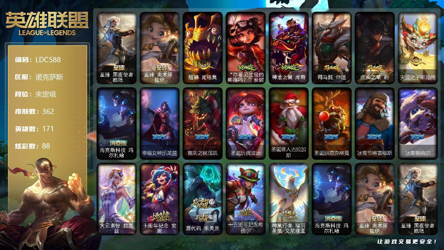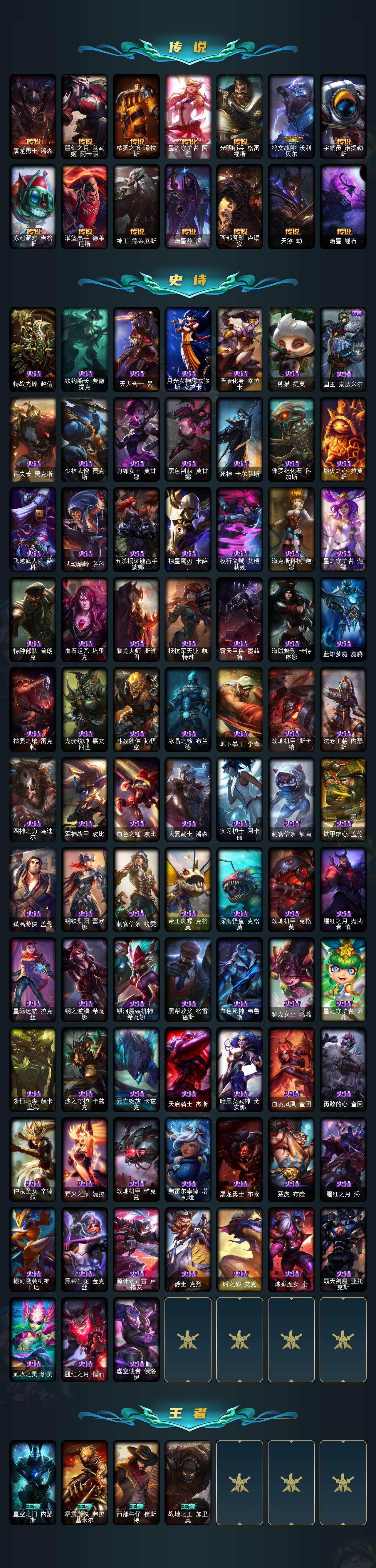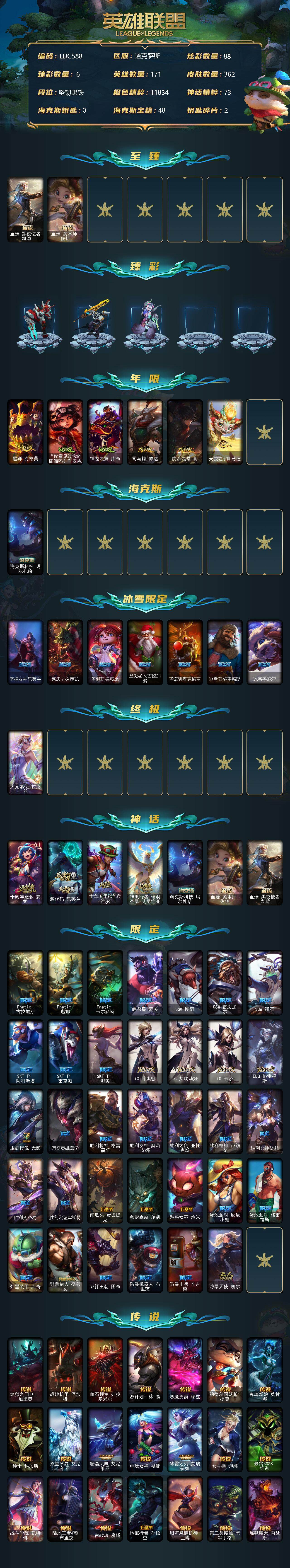 【LDC588】171英雄/362皮肤/1终极/7神话/48限定/6臻彩/88炫彩/35传说/80史诗/未定级/至臻黑夜使者凯隐/至臻奥术师佐伊/天龙之子卡莎飞龙乘云/霸天战士雷恩加尔星啸天火/霸天剑魔亚托克斯涤罪之翼/星之守护者阿卡丽未来之光/魔女阿卡丽虚荣/净雪之月莫甘娜冬虹/醒狮克格莫/你看见过我的熊猫吗安妮/神龙之翼库奇/司马懿仲达/虎痴之拳蔚/天龙之子斯莫德/海克斯科技玛尔扎哈/幸福女神乐芙兰/喜庆之树茂凯/圣诞玩偶波比/圣诞老人古拉加斯/圣诞驯鹿克格莫/冰雪节格雷福斯/冰雪兽纳尔/大元素使拉克丝/十周年纪念安妮/源代码乐芙兰/十五周年纪念希维尔/神凰行者瑞羽圣凰艾尼维亚/Fnatic古拉加斯/Fnatic迦娜/Fnatic卡尔萨斯/暗杀星蒙多/SSW图奇/SSW雷恩加尔/SSW锤石/SKTT1阿利斯塔/SKTT1雷克顿/SKTT1娜美/iG菲奥娜/iG艾瑞莉娅/iG卡莎/EDG格雷福斯/玉剑传说无影/暗裔英雄盖伦/胜利枪神格雷福斯/胜利女神奥莉安娜/胜利之剑亚托克斯/胜利枪神卢锡安/胜利女神娑娜/胜利剑圣易/胜利之运崔斯特/南瓜头费德提克/鬼影森森茂凯/魅惑女巫悠米/泳池派对厄运小姐/泳池派对格雷福斯/外星装甲库奇/野兽猎人德莱文/都铎王朝图奇/防暴机器人布里茨/防暴士兵辛吉德/防暴天使凯尔/双城之战2微光实验室辛吉德/地狱之门卫士加里奥/战地机甲厄加特/血石领主弗拉基米尔/源计划林易/恶魔男爵瑞兹/约德尔国队长提莫/鬼魂新娘莫甘娜/绅士科加斯/双重冰晶艾尼维亚/黯晶凤凰艾尼维亚/电玩女神娑娜/冰霜之刃艾瑞莉娅/女主播迦娜/最终BOSS维迦/战斗学院凯特琳/陆地王者4WD布里茨/上古战魂魔腾/地狱行者孙悟空/银河魔装机神兰博/第三类接触黑默丁格/炼狱魔犬内瑟斯/屠龙勇士潘森/腥红之月鬼武姬阿卡丽/枯萎之壤泽拉斯/星之守护者阿狸/光明哨兵格雷福斯/符文战熊沃利贝尔/宇航员诺提勒斯/泳池派对吉格斯/灌篮高手德莱厄斯/神王德莱厄斯/暗星尊烬/西部魔影卢锡安/天煞劫/暗星锤石/特战先锋赵信/铁钩船长费德提克/天人合一易/月光女神阿忒弥斯索拉卡/圣洁化身索拉卡/熊猫提莫/国王泰达米尔/百夫长贾克斯/少林武僧贾克斯/刀锋女王莫甘娜/黑色荆棘莫甘娜/死神卡尔萨斯/侏罗纪化石科加斯/熔火之心拉莫斯/飞越疯人院萨科/武动巅峰萨科/五杀摇滚键盘手娑娜/掠星魔刃卡萨丁/夜行义贼艾瑞莉娅/海克斯科技迦娜/星之守护者迦娜/特种部队普朗克/血石诅咒塔里克/驯龙大师斯维因/抵抗军天使凯特琳/霸天巨兽墨菲特/海贼魅影卡特琳娜/蓝焰梦魔魔腾/枯萎之壤雷克顿/龙骑统帅嘉文四世/斗战胜佛孙悟空/冰晶之核布兰德/地下拳王李青/战地机甲斯卡纳/法老王朝内瑟斯/四神之力乌迪尔/军神战甲波比/血色之锤波比/大夏武士潘森/实习护士阿卡丽/刺客信条凯南/铁甲雄心盖伦/孤高游侠盖伦/钢铁烈阳蕾欧娜/刺客信条锐雯/帝王斑蝶克格莫/深海怪鱼克格莫/战地机甲克格莫/腥红之月鬼武者慎/星际迷航拉克丝/钢之逆鳞希瓦娜/银河魔装机神希瓦娜/黑帮教父格雷福斯/白色死神韦鲁斯/驯龙女巫璐璐/星之守护者璐璐/永恒之森赫卡里姆/沙之守护卡兹克/死亡绽放卡兹克/天启骑士杰斯/暗黑女武神黛安娜/血羽凤凰奎因/勇敢的心奎因/仲裁圣女辛德拉/野火之藤婕拉/战地机甲维克兹/弗雷尔卓德塔莉垭/屠龙勇士布隆/猛虎布隆/腥红之月烬/银河魔装机神千珏/黑帮狂花金克丝/源计划雷卢锡安/爵士克烈/时之砂艾克/炼狱魔女蔚/霸天剑魔亚托克斯/河水之灵娜美/腥红之月锤石/虚空使者俄洛伊/星空之门内瑟斯/霹雳游侠弗拉基米尔/西部牛仔崔斯特/战地之王加里奥/拆弹专家黑默丁格/冰河时代奥拉夫/法老阿木木/魔导绅士维迦/嗜血狂暴沃里克/黑暗骑士奥拉夫/牛扒狂战奥拉夫/探戈灵魂崔斯特/逆转裁判崔斯特/未来战士崔斯特/皇家守卫赵信/魔域梦魇厄加特/弗拉基米尔伯爵/幽魂费德提克/联合王国费德提克/五杀摇滚III遗失的章节凯尔/星战易/玉剑传说无极/黑暗骑士阿利斯塔/哞利斯塔/宗师级法师训练师瑞兹/武仙座海格力斯赛恩/原野伐木工赛恩/光明骑士希维尔/奥德赛希维尔/睡衣守护者索拉卡/游击队员崔丝塔娜/约德尔海贼团崔丝塔娜/我羽饰骑士崔丝塔娜/千纸双子努努和威朗普/小蜜蜂努努和威朗普/黑暗骑士艾希/神龙尊者苍龙艾希/宗师级钓鱼训练师贾克斯/复仇武神贾克斯/武神贾克斯/源计划孤狼贾克斯/腥红之月基兰/机械污染辛吉德/冲浪高手辛吉德/科学狂人辛吉德/黑色天灾辛吉德/探戈灵魂伊芙琳/糖果大战伊芙琳/首领图奇/北风冻原图奇/横行霸道图奇/幽灵幻影卡尔萨斯/尼斯巨兽科加斯/情绪摇滚阿木木/铬金铠甲拉莫斯/沙之守护拉莫斯/小丑工作坊萨科/万能小丑萨科/健美教练蒙多/寒冰王座卡萨丁/深海一号卡萨丁/老兵普朗克/雪橇速滑库奇/柯基库奇/樱花乱舞卡尔玛/光明骑士卡尔玛/塔里克辉盾/太空律动爱乐之子塔里克/白魔法师维迦/里尔击球手特朗德尔/垃圾场特朗德尔/荒野治安官凯特琳/双城之战凯特琳/铁锈斑斑布里茨/擂台皇帝布里茨/戴一个表布里茨/银白枪骑布里茨/三叶草墨菲特/珊瑚礁墨菲特/石破天惊墨菲特/西部魔影执行人卡特琳娜/喵凯/荒野之咬雷克顿/猛龙雷克顿/屠龙勇士嘉文四世/小蜜蜂奥莉安娜/星之守护者奥莉安娜/末日余生布兰德/灵魂莲华薇恩/独眼海盗兰博/蛇发女妖卡西奥佩娅/上古魔蛇卡西奥佩娅/小蜜蜂黑默丁格/单身贵族内瑟斯/法国女仆奈德