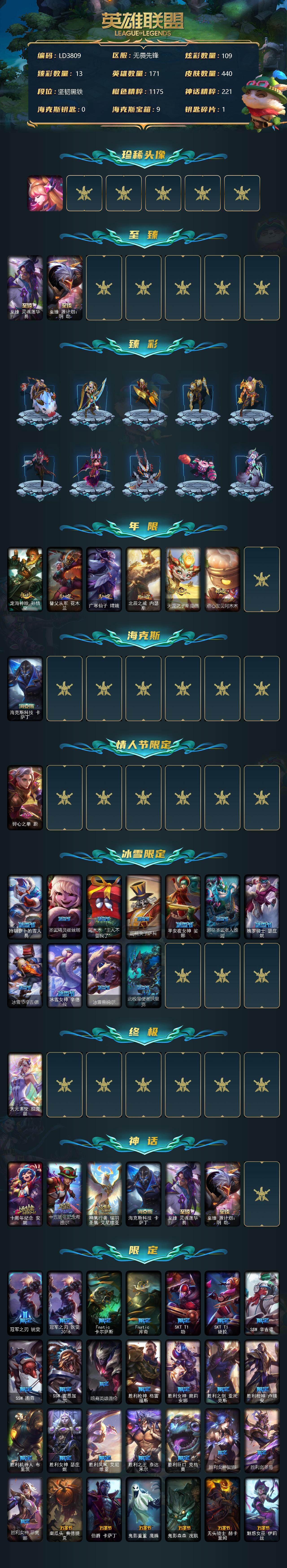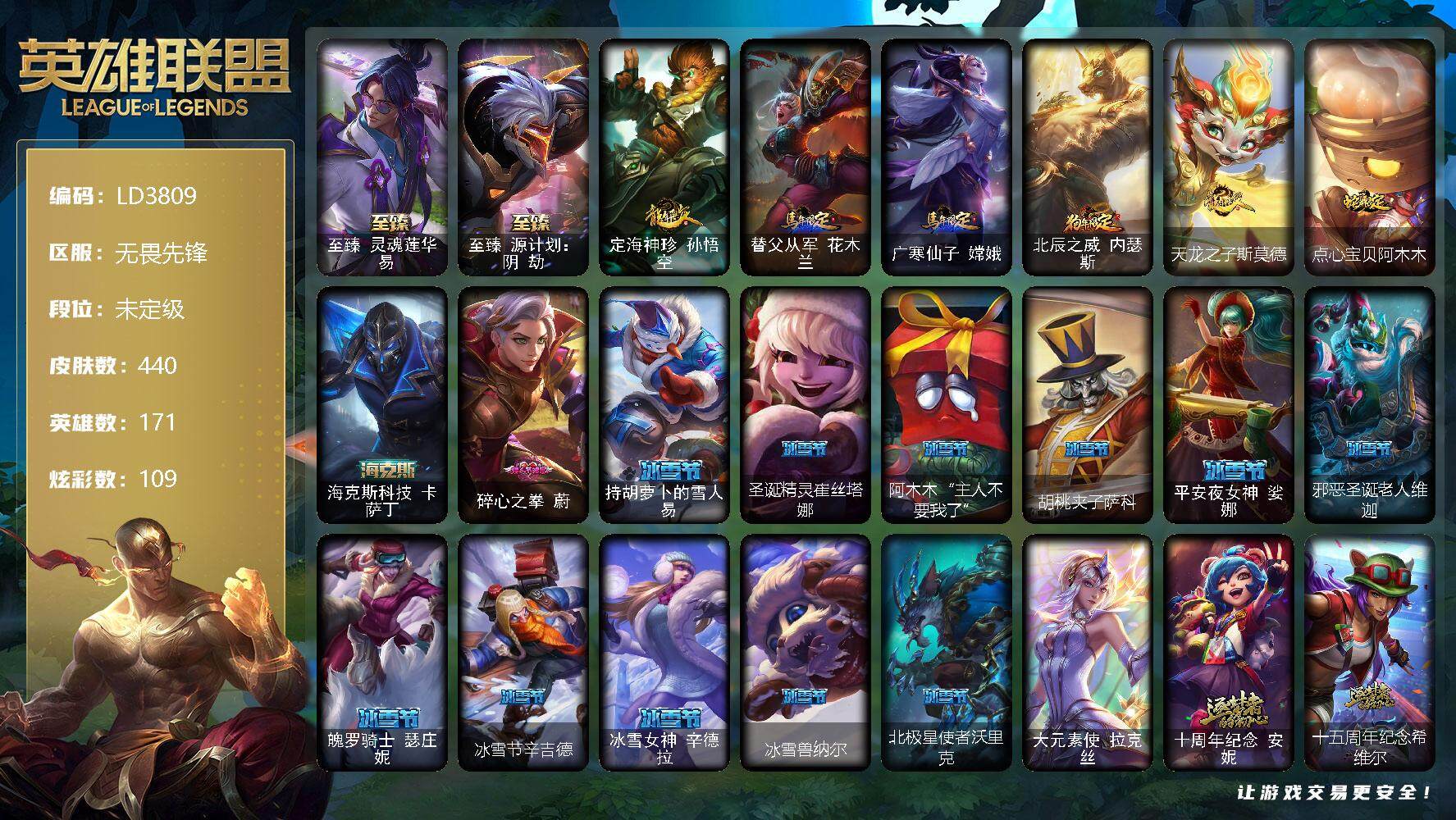 【LD3809】171英雄/440皮肤/1终极/6神话/60限定/13臻彩/109炫彩/47传说/110史诗/未定级/星守阿狸头像/至臻灵魂莲华易/至臻源计划阴劫/天龙之子卡莎飞龙乘云/无畏骑士瑟庄妮赤子初心/冠军之箭艾希凯旋圣装/墨之影武者亚索金墨耀影/征服者韦鲁斯炫金/冠军之隐劫凯旋圣装/神龙尊者圣龙李青龙腾云起/西部魔影卢锡安贝利尔之怠/星之吞噬者莫甘娜热情之末/霸天异形卡兹克刹那银光/可爱可爱粉红红布里茨/魔女阿卡丽虚荣/净雪之月莫甘娜冬虹/定海神珍孙悟空/替父从军花木兰/广寒仙子嫦娥/北辰之威内瑟斯/天龙之子斯莫德/点心宝贝阿木木/海克斯科技卡萨丁/碎心之拳蔚/持胡萝卜的雪人易/圣诞精灵崔丝塔娜/阿木木“主人不要我了”/胡桃夹子萨科/平安夜女神娑娜/邪恶圣诞老人维迦/魄罗骑士瑟庄妮/冰雪节辛吉德/冰雪女神辛德拉/冰雪兽纳尔/北极星使者沃里克/大元素使拉克丝/十周年纪念安妮/十五周年纪念希维尔/神凰行者瑞羽圣凰艾尼维亚/冠军之刃锐雯/冠军之刃锐雯2016/Fnatic卡尔萨斯/Fnatic库奇/SKTT1劫/SKTT1婕拉/SSW辛吉德/SSW图奇/SSW雷恩加尔/暗裔英雄盖伦/胜利枪神格雷福斯/胜利女神奥莉安娜/胜利之剑亚托克斯/胜利枪神卢锡安/胜利机器人布里茨/胜利女神瑟庄妮/胜利凤凰艾尼维亚/胜利之王泰达米尔/胜利巨口克格莫/胜利女神娑娜/胜利剑圣易/胜利女神菲奥娜/南瓜头费德提克/伯爵卡萨丁/鬼影重重魔腾/鬼影森森茂凯/无头骑士赫卡里姆/魅惑女巫伊莉丝/糖果使徒费德提克/泳池派对奥莉安娜/暗影沃里克/奥德赛吉格斯/野兽猎人泰达米尔/勇者阿狸/电玩战魂赫卡里姆/都铎王朝图奇/玉剑传说舞龙卫/制胜金球拉莫斯/防暴士兵格雷福斯/防暴士兵辛吉德/防暴天使凯尔/警用试作体K9内瑟斯/血石领主弗拉基米尔/大天使长米迦勒凯尔/源计划林易/欧米伽小队幽灵特工/女皇艾希/源计划联合艾希/恶魔之刃泰达米尔/至尊魔女莫甘娜/绅士科加斯/黯晶凤凰艾尼维亚/律政大亨蒙多/冰霜之刃艾瑞莉娅/女警狙击凯特琳/苹果机器人布里茨/冰川巨兽墨菲特/上古战魂魔腾/源计划泯灭雷克顿/地狱行者孙悟空/神龙尊者圣龙李青/银河魔装机神兰博/炼狱魔犬内瑟斯/屠龙勇士潘森/战斗学院伊泽瑞尔/源计划超体莫德凯撒/腥红之月鬼武姬阿卡丽/神王盖伦/星之守护者拉克丝/黯黑魔龙希瓦娜/冰霜亚龙希瓦娜/焰尾妖狐阿狸/星之守护者阿狸/符文战熊沃利贝尔/苍穹之光韦鲁斯/金牌主播德莱文/霸天异形卡兹克/灌篮高手德莱厄斯/神王德莱厄斯/奥德赛凯隐/黑夜使者亚索/星之守护者金克丝/西部天使赛娜/西部魔影卢锡安/天煞劫/真实伤害艾克/暗星锤石/源计划毁灭派克/黎明使者永恩/冰霜烈焰安妮/科学怪熊的新娘安妮/腥红之月崔斯特/特战先锋赵信/翼骑统领赵信/屠龙勇士赵信/摄魂男爵弗拉基米尔/铁钩船长费德提克/圣光审判凯尔/天人合一易/侍魂易/铁血剑豪易/钢铁之心希维尔/圣洁化身索拉卡/熊猫提莫/荒野豺狼沃里克/黑帮狂花厄运小姐/女船长厄运小姐/紫晶射手艾希/少林武僧贾克斯/刀锋女王莫甘娜/黑色荆棘莫甘娜/炼金狂士辛吉德/死神卡尔萨斯/熔火之心拉莫斯/全金属狂潮拉莫斯/贵族血统萨科/战争血统蒙多/五杀摇滚键盘手娑娜/掠星魔刃卡萨丁/海克斯科技迦娜/恐惧新星普朗克/血石诅咒塔里克/绝代智将斯维因/抵抗军天使凯特琳/古墓丽影凯特琳/黑曜石守护者墨菲特/霸天巨兽墨菲特/海贼魅影卡特琳娜/暗夜猫女卡特琳娜/前线指挥官卡特琳娜/沙漠风暴卡特琳娜/蓝焰梦魔魔腾/符文战神雷克顿/死亡绽放伊莉丝/三昧真火孙悟空/冰晶之核布兰德/灵魂烈焰布兰德/防弹武僧李青/至高之拳李青/地下拳王李青/屠龙勇士薇恩/战地机甲斯卡纳/法老王朝内瑟斯/四神之力乌迪尔/军神战甲波比/星之守护者波比/飞车暴走族古拉加斯/钢铁意志潘森/大夏武士潘森/面包之王潘森/实习护士阿卡丽/铁血女忍阿卡丽/铁甲雄心盖伦/钢铁烈阳蕾欧娜/源计划山蕾欧娜/至高君王玛尔扎哈/腥红之月泰隆/兔女郎锐雯/战地机甲克格莫/腥红之月鬼武者慎/战国大名慎/ODST地狱伞兵拉克丝/星际迷航拉克丝/钢之逆鳞希瓦娜/银河魔装机神希瓦娜/铁血猎人雷恩加尔/皇家守卫菲奥娜/源计划火菲奥娜/永恒之森赫卡里姆/沙之守护卡兹克/死亡绽放卡兹克/生化骑士德莱厄斯/天启骑士杰斯/刀锋女王丽桑卓/源代码丽桑卓/暗黑女武神黛安娜/无限烈焰黛安娜/血羽凤凰奎因/邪恶魔人扎克/西部牛仔亚索/源计划风亚索/战地机甲维克兹/苍穹之光维克兹/源代码卡蜜尔/屠龙勇士布隆/猛虎布隆/黑帮狂花金克丝/源计划雷卢锡安/冲击之刃劫/源计划阴劫/时之砂艾克/源计划自由艾克/霓虹杀拳蔚/炼狱魔女蔚/仲裁圣骑亚托克斯/霸天剑魔亚托克斯/星际之门阿兹尔/腥红之月锤石/上古战魂雷克塞/五杀摇滚鼓手奥拉夫/孤胆英豪嘉文四世/死亡骑士内瑟斯/战地之王加里奥/拆弹专家黑默丁格/烈焰猛士奥拉夫/银河魔装机神安妮/黑暗骑士奥拉夫/幽蓝梦魇加里奥/风执事加里奥/逍遥赌侠崔斯特/未来战士崔斯特/赵云子龙/秘密特工赵信/电锯狂人厄加特/社会名流乐芙兰/幻执事乐芙兰/弗拉基米尔伯爵/弗拉基米尔侯爵/黑潮弗拉基米尔/咖啡甜心弗拉基米尔/荒野幽灵费德提克/五杀摇滚女声主唱凯尔/暗影易/星战易/玉剑传说无极/斗牛士阿利斯塔/黑暗骑士阿利斯塔/哞利斯塔/宗师级法师训练师瑞兹/原野伐木工赛恩/创