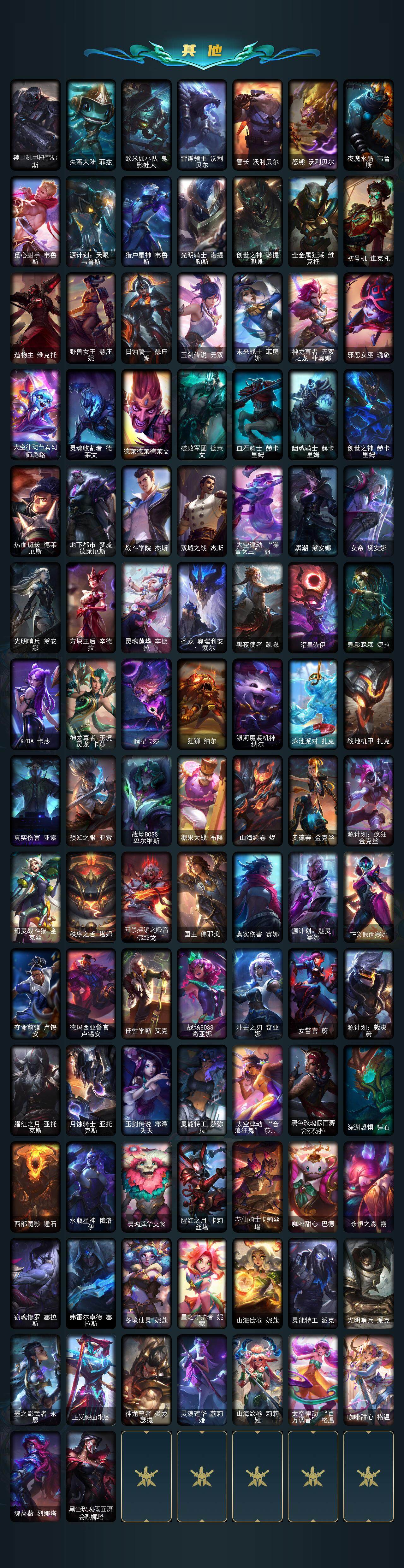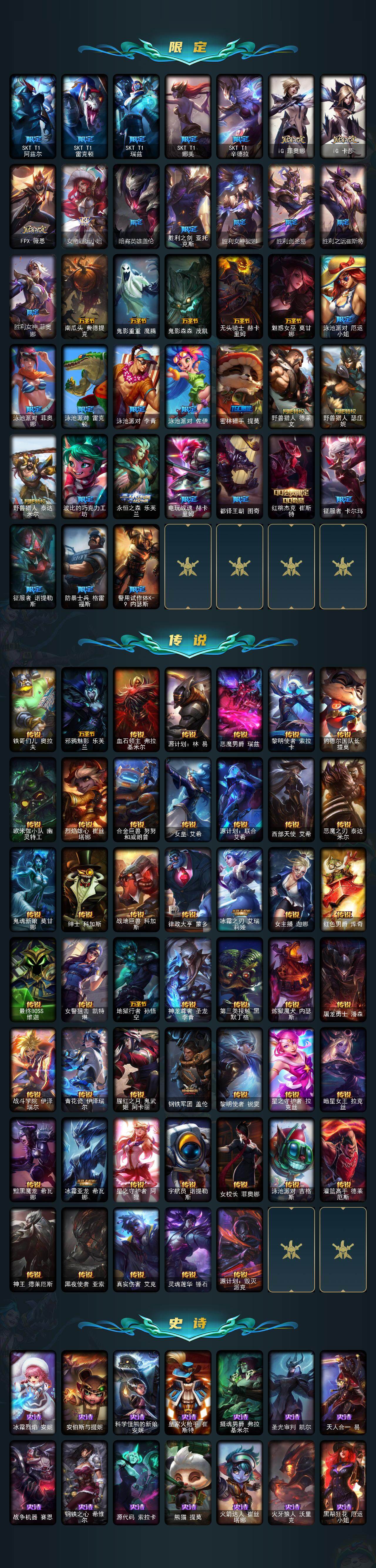 【SJ3027】171英雄/557皮肤/2终极/23神话/71限定/12臻彩/223炫彩/47传说/111史诗/未定级/觅心之翼奎因头像/至臻绝息圣堂厄运小姐/至臻黑色玫瑰假面舞会卡特琳娜/至臻天龙之子伊泽瑞尔/至臻灵魂莲华拉克丝/至臻福牛守护者菲奥娜/至臻凯旋将军德莱厄斯/至臻KDAALLOUT卡莎/至臻魔域梦魇泽丽/至臻未来战士卢锡安/至臻灵魂莲华劫/至臻DRX亚托克斯/至臻未来战士锤石/至臻源计划逆流塞拉斯/至臻T1塞拉斯/至臻心之钢永恩/天龙之子卡莎飞龙乘云/无畏骑士瑟庄妮赤子初心/墨之影武者亚索金墨耀影/征服者阿利斯塔炫金/神龙尊者圣龙李青登龙/幻灵战斗猫金克丝梦幻强袭/殿堂传奇乐芙兰登神/魔女阿卡丽虚荣/净雪之月莫甘娜冬虹/预知之眼亚索不怠/心之钢伊泽瑞尔天纵才华/张辽文远/剪纸仙灵艾瑞莉娅/剪纸仙灵加里奥/天龙之子斯莫德/点心宝贝阿木木/摄魂使者薇恩/幸福女神乐芙兰/圣诞开心鬼提莫/圣诞精灵崔丝塔娜/圣诞糖果棒厄运小姐/平安夜女神娑娜/冬季仙境卡尔玛/邪恶圣诞老人维迦/雪装奈德丽/冰雪驯鹿波比/圣诞老人古拉加斯/圣诞驯鹿克格莫/魄罗骑士瑟庄妮/冰雪节辛吉德/北极星神黛安娜/大元素使拉克丝/DJ娑娜/十周年纪念安妮/源代码乐芙兰/殿堂传奇乐芙兰/十五周年纪念希维尔/殿堂传奇薇恩/星之守护者塔莉垭/水晶圣骑塔莉娅/冠军之刃锐雯2016/冠军之隐劫/冠军掠夺者卡兹克/Fnatic迦娜/Fnatic库奇/暗杀星蒙多/暗杀星努努和威朗普/暗杀星慎/SKTT1贾克斯/SKTT1劫/SKTT1李青/SKTT1薇恩/SSW图奇/SSW泰隆/SKTT1阿兹尔/SKTT1雷克顿/SKTT1瑞兹/SKTT1娜美/SKTT1辛德拉/iG菲奥娜/iG卡莎/FPX薇恩/女帝厄运小姐/暗裔英雄盖伦/胜利之剑亚托克斯/胜利女神娑娜/胜利剑圣易/胜利之运崔斯特/胜利女神菲奥娜/南瓜头费德提克/鬼影重重魔腾/鬼影森森茂凯/无头骑士赫卡里姆/魅惑女巫莫甘娜/泳池派对厄运小姐/泳池派对菲奥娜/泳池派对雷克顿/泳池派对李青/泳池派对佐伊/密林猎手提莫/野兽猎人德莱文/野兽猎人瑟庄妮/野兽猎人泰达米尔/波比的巧克力工坊/永恒之森乐芙兰/电玩战魂赫卡里姆/都铎王朝图奇/红桃杰克崔斯特/征服者卡尔玛/征服者诺提勒斯/防暴士兵格雷福斯/警用试作体K9内瑟斯/铁哥们儿奥拉夫/邪鸦魅影乐芙兰/血石领主弗拉基米尔/源计划林易/恶魔男爵瑞兹/黎明使者索拉卡/约德尔国队长提莫/欧米伽小队幽灵特工/烈焰雄心崔丝塔娜/合金巨兽努努和威朗普/女皇艾希/源计划联合艾希/西部天使艾希/恶魔之刃泰达米尔/鬼魂新娘莫甘娜/绅士科加斯/战地巨兽科加斯/律政大亨蒙多/冰霜之刃艾瑞莉娅/女主播迦娜/红色男爵库奇/最终BOSS维迦/女警狙击凯特琳/地狱行者孙悟空/神龙尊者圣龙李青/第三类接触黑默丁格/炼狱魔犬内瑟斯/屠龙勇士潘森/战斗学院伊泽瑞尔/青花瓷伊泽瑞尔/腥红之月鬼武姬阿卡丽/钢铁军团盖伦/黎明使者锐雯/星之守护者拉克丝/暗星女王拉克丝/黯黑魔龙希瓦娜/冰霜亚龙希瓦娜/星之守护者阿狸/宇航员诺提勒斯/女校长菲奥娜/泳池派对吉格斯/灌篮高手德莱厄斯/神王德莱厄斯/黑夜使者亚索/真实伤害艾克/灵魂莲华锤石/源计划毁灭派克/冰霜烈焰安妮/安伯斯与提妮/科学怪熊的新娘安妮/皇家火枪手崔斯特/摄魂男爵弗拉基米尔/圣光审判凯尔/天人合一易/战争机器赛恩/钢铁之心希维尔/源代码索拉卡/熊猫提莫/火箭达人崔丝塔娜/火牙狼人沃里克/黑帮狂花厄运小姐/国王泰达米尔/少林武僧贾克斯/黑色荆棘莫甘娜/炼金狂士辛吉德/死神卡尔萨斯/侏罗纪化石科加斯/小小骑士阿木木/熔火之心拉莫斯/全金属狂潮拉莫斯/飞越疯人院萨科/战争血统蒙多/五杀摇滚键盘手娑娜/掠星魔刃卡萨丁/夜刃艾瑞莉娅/夜行义贼艾瑞莉娅/绝代智将斯维因/驯龙大师斯维因/抵抗军天使凯特琳/古墓丽影凯特琳/铁血狙击手凯特琳/霸天巨兽墨菲特/无畏号墨菲特/海贼魅影卡特琳娜/前线指挥官卡特琳娜/符文战神雷克顿/枯萎之壤雷克顿/凯旋英雄嘉文四世/死亡绽放伊莉丝/腥红之月伊莉丝/灵骨工匠奥莉安娜/三昧真火孙悟空/斗战胜佛孙悟空/冰晶之核布兰德/灵魂烈焰布兰德/防弹武僧李青/至高之拳李青/苍穹之光薇恩/深海妖姬卡西奥佩娅/生化博士黑默丁格/艳后奈德丽/军神战甲波比/飞车暴走族古拉加斯/冰川勇者伊泽瑞尔/死亡领主莫德凯撒/银色之牙阿卡丽/铁甲雄心盖伦/孤高游侠盖伦/至高君王玛尔扎哈/刺客信条锐雯/血色精锐锐雯/兔女郎锐雯/帝王斑蝶克格莫/侏罗纪化石克格莫/战地机甲克格莫/战国大名慎/奥术光辉拉克丝/ODST地狱伞兵拉克丝/星际迷航拉克丝/骸骨之爪希瓦娜/银河魔装机神希瓦娜/暗影妖狐阿狸/黑帮教父格雷福斯/白色死神韦鲁斯/皇家守卫菲奥娜/夜鸦菲奥娜/源计划火菲奥娜/驯龙女巫璐璐/绞肉机刽子手德莱文/生化骑士德莱厄斯/全金属狂潮杰斯/源代码丽桑卓/暗黑女武神黛安娜/腥红之月黛安娜/仲裁圣女辛德拉/亚特兰蒂斯辛德拉/野火之藤婕拉/驯龙女巫婕拉/萌侦探喵尔摩斯/邪恶魔人扎克/西部牛仔亚索/源计划风亚索/腥红之月亚索/源代码卡蜜尔/银河魔装机神千珏/黑帮狂花金克丝/五星大厨塔姆/职业杀手卢锡安/源计划雷卢锡安/源计划自由艾克/霸天剑魔亚托克斯/锦鲤娜美/星际之门阿兹尔/幽冥领主阿兹尔/腥红之月锤石/虚空使者俄洛伊/冰雪游神巴德/暮星之羽霞/星空之门内瑟斯/霹雳游侠弗拉基米尔/西部牛仔崔斯特/战地之王加里奥/亮丽