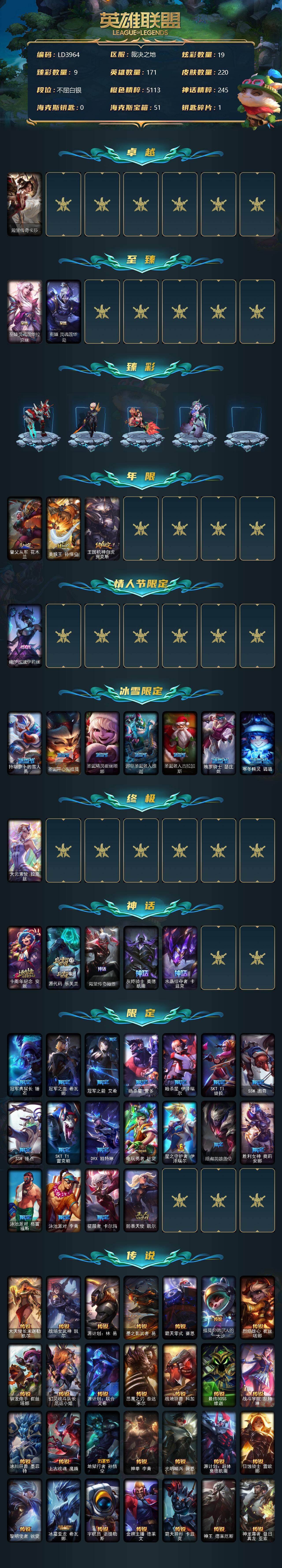 【LD3964】171英雄/220皮肤/1终极/7神话/29限定/9臻彩/19炫彩/32传说/44史诗/白银账号等级:258/殿堂传奇卡莎/至臻灵魂莲华拉克丝/至臻灵魂莲华劫/霸天战士雷恩加尔星啸天火/源计划火菲奥娜惩戒/玉剑传说寒潭夭夭胭脂/魔女阿卡丽虚荣/净雪之月莫甘娜冬虹/王国机神白虎贾克斯云霄/替父从军花木兰/美猴王孙悟空/王国机神白虎贾克斯/幽梦玫瑰伊莉丝/持胡萝卜的雪人易/圣诞开心鬼提莫/圣诞精灵崔丝塔娜/邪恶圣诞老人维迦/圣诞老人古拉加斯/魄罗骑士瑟庄妮/寒冬精灵璐璐/大元素使拉克丝/十周年纪念安妮/源代码乐芙兰/殿堂传奇薇恩/灰烬骑士莫德凯撒/水晶掠夺者卡兹克/冠军典狱长锤石/冠军之血希瓦娜/冠军之箭艾希/暗杀星蒙多/暗杀星伊泽瑞尔/SKTT1婕拉/SSW图奇/SSW锤石/SKTT1雷克顿/DRX凯特琳/电玩勇者锐雯/星之守护者伊泽瑞尔/暗裔英雄盖伦/胜利女神奥莉安娜/泳池派对格雷福斯/泳池派对李青/征服者卡尔玛/防暴天使凯尔/大天使长米迦勒凯尔/战场女武神凯尔/源计划林易/墨之影武者易/霸天零式赛恩/提莫约德尔人的一大步/烈焰雄心崔丝塔娜/驯龙炮手崔丝塔娜/幻灵战斗队长厄运小姐/源计划联合艾希/恶魔之刃泰达米尔/战地巨兽科加斯/最终BOSS维迦/战斗学院凯特琳/冰川巨兽墨菲特/上古战魂魔腾/地狱行者孙悟空/神拳李青/光明哨兵薇恩/源计划超体莫德凯撒/日蚀骑士蕾欧娜/黎明使者锐雯/冰霜亚龙希瓦娜/宇航员诺提勒斯/金牌主播德莱文/霸天异形卡兹克/神王德莱厄斯/神龙尊者昼日真龙亚索/西部魔影卢锡安/天煞劫/影执事劫/真实伤害艾克/屠龙勇士赵信/铁钩船长费德提克/重生之沙费德提克/圣光审判凯尔/天人合一易/侍魂易/荒野豺狼沃里克/黑色荆棘莫甘娜/武动巅峰萨科/战争血统蒙多/抵抗军天使凯特琳/铁血狙击手凯特琳/霸天巨兽墨菲特/无畏号墨菲特/暗星嘉文四世/地下拳王李青/血色之锤波比/飞车暴走族古拉加斯/钢铁意志潘森/大夏武士潘森/冰川勇者伊泽瑞尔/死亡领主莫德凯撒/兔女郎锐雯/深海怪鱼克格莫/侏罗纪化石克格莫/战地机甲克格莫/骸骨之爪希瓦娜/源计划火菲奥娜/驯龙女巫璐璐/绞肉机刽子手德莱文/死亡绽放卡兹克/暗星卡兹克/铁血帝皇德莱厄斯/生化骑士德莱厄斯/刀锋女王丽桑卓/野火之藤婕拉/源计划风亚索/腥红之月亚索/银河魔装机神千珏/源计划雷卢锡安/霓虹杀拳蔚/河水之灵娜美/腥红之月锤石/上古战魂雷克塞/五杀摇滚鼓手奥拉夫/星空之门内瑟斯/拆弹专家黑默丁格/法老阿木木/深潜蛙人古拉加斯/黑暗骑士奥拉夫/幽蓝梦魇加里奥/逆转裁判崔斯特/皇家守卫赵信/赵云子龙/弗拉基米尔伯爵/联合王国费德提克/暗影易/星战易/玉剑传说无极/无极执事易/哞利斯塔/武仙座海格力斯赛恩/灵魂莲华索拉卡/灵魂莲华提莫/约德尔海贼团崔丝塔娜/花仙子崔丝塔娜/攻城巨兽努努和威朗普/西部牛仔厄运小姐/黑暗骑士艾希/神龙尊者苍龙艾希/腥红之月泰达米尔/武神贾克斯/杀戮天使昔拉莫甘娜/遗迹守护者基兰/黑色天灾辛吉德/探戈灵魂伊芙琳/黑夜使者伊芙琳/北风冻原图奇/黑金诱惑图奇/屠龙勇士图奇/泳池派对图奇/五杀摇滚主唱卡尔萨斯/尼斯巨兽科加斯/绝息圣堂科加斯/铬金铠甲拉莫斯/榴莲龙龟拉莫斯/重甲猎鹰艾尼维亚/战栗之毒蒙多/虚空前世卡萨丁/先驱行者卡萨丁/凌云之翼艾瑞莉娅/暴风女神迦娜/黎明使者迦娜/日冕女神卡尔玛/腥红之月卡特琳娜/烈焰古树茂凯/绿茵门神茂凯/血石战神雷克顿/哥特女仆奥莉安娜/末日余生布兰德/乡村农夫古拉加斯/龙骑士莫德凯撒/地狱火莫德凯撒/暗星莫德凯撒/刺身之拳阿卡丽/空手道凯南/医学博士凯南/战神阿瑞斯盖伦/毛毛虫克格莫/奥术师克格莫/山海绘卷克格莫/极寒慎/战地法师泽拉斯/欲望之主泽拉斯/KDAALLOUT阿狸/绒毛菲兹/坚韧不屈沃利贝尔/神龙尊者均衡之龙沃利贝尔/光明哨兵雷恩加尔/失落大陆诺提勒斯/初号机维克托/少校吉格斯/灵魂收割者德莱文/泳池派对德莱文/刃执事德莱文/人马星神赫卡里姆/血石妖后丽桑卓/黑夜使者凯隐/KDA卡莎/灵魂莲华千珏/青花瓷千珏/源计划疯狂金克丝/正义之枪卢锡安/狗粮克烈/战场BOSS奇亚娜/狂鲨亚托克斯/西部魔影持枪女巫莎弥拉/深渊恐惧锤石/泳池派对雷克塞/灌篮高手艾翁/灵魂莲华艾翁/雷霆领主奥恩/幻灵战斗狼塞拉斯/星之守护者妮蔻/光明哨兵派克/黎明使者薇古丝/心之钢瑟提/山海绘卷莉莉娅/魂蔷薇烈娜塔/花仙贤者米利欧【按大区: 电信】