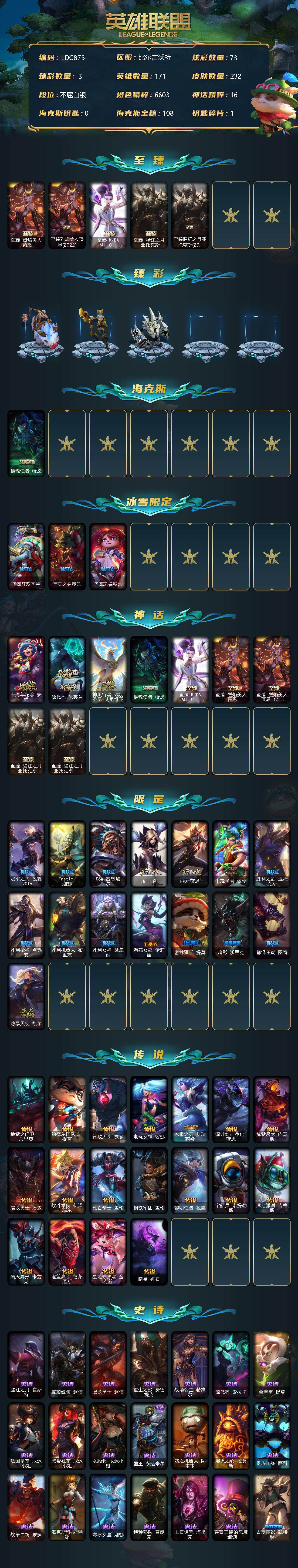 【LDC875】171英雄/232皮肤/9神话/18限定/3臻彩/73炫彩/18传说/72史诗/白银/至臻烈焰美人薇恩/至臻烈焰美人薇恩(2022)/至臻KDAALLOUT卡莎/至臻腥红之月亚托克斯/至臻腥红之月亚托克斯(2022)/无畏骑士瑟庄妮赤子初心/替父从军花木兰炫金龙刃/霸天巨兽雪崩墨菲特/摄魂使者薇恩/圣诞狂欢基兰/喜庆之树茂凯/圣诞玩偶波比/十周年纪念安妮/源代码乐芙兰/神凰行者瑞羽圣凰艾尼维亚/至臻烈焰美人薇恩2022/至臻腥红之月亚托克斯2022/冠军之刃锐雯2016/Fnatic迦娜/SSW雷恩加尔/iG卡莎/FPX薇恩/电玩勇者锐雯/胜利之剑亚托克斯/胜利枪神卢锡安/胜利机器人布里茨/胜利女神瑟庄妮/魅惑女巫伊莉丝/密林猎手提莫/暗影沃里克/都铎王朝图奇/防暴天使凯尔/地狱之门卫士加里奥/约德尔国队长提莫/律政大亨蒙多/电玩女神娑娜/冰霜之刃艾瑞莉娅/源计划净化薇恩/炼狱魔犬内瑟斯/屠龙勇士潘森/战斗学院伊泽瑞尔/死亡骑士盖伦/钢铁军团盖伦/黎明使者锐雯/宇航员诺提勒斯/泳池派对吉格斯/霸天异形卡兹克/灌篮高手德莱厄斯/星之守护者金克丝/暗星锤石/腥红之月崔斯特/翼骑统领赵信/屠龙勇士赵信/重生之沙费德提克/战场公主希维尔/源代码索拉卡/兔宝宝提莫/法国皇室厄运小姐/黑帮狂花厄运小姐/女船长厄运小姐/国王泰达米尔/殇之机器人阿木木/熔火之心拉莫斯/贵族血统萨科/战争血统蒙多/海克斯科技迦娜/寒冰女皇迦娜/特种部队普朗克/血石诅咒塔里克/穿着正装的恶魔维迦/古墓丽影凯特琳/铁血狙击手凯特琳/霸天巨兽墨菲特/凯旋英雄嘉文四世/暗星嘉文四世/死亡绽放伊莉丝/腥红之月伊莉丝/灵骨工匠奥莉安娜/冰晶之核布兰德/灵魂烈焰布兰德/至高之拳李青/地下拳王李青/屠龙勇士薇恩/苍穹之光薇恩/战地机甲斯卡纳/四神之力乌迪尔/血色之锤波比/飞车暴走族古拉加斯/腥红之月凯南/铁甲雄心盖伦/刺客信条锐雯/侏罗纪化石克格莫/腥红之月鬼武者慎/战国大名慎/沙之守护泽拉斯/黑帮教父格雷福斯/银河魔装机神菲兹/铁血猎人雷恩加尔/驯龙女巫璐璐/星之守护者璐璐/永恒之森赫卡里姆/死亡绽放卡兹克/生化骑士德莱厄斯/全金属狂潮杰斯/无限烈焰黛安娜/血羽凤凰奎因/勇敢的心奎因/驯龙女巫婕拉/萌侦探喵尔摩斯/邪恶魔人扎克/源计划风亚索/战地机甲维克兹/弗雷尔卓德塔莉垭/屠龙勇士布隆/黯焰双魂千珏/五星大厨塔姆/冲击之刃劫/源计划阴劫/爵士克烈/星际之门阿兹尔/腥红之月锤石/冰雪游神巴德/孤胆英豪嘉文四世/死亡骑士内瑟斯/拆弹专家黑默丁格/创意工坊黑默丁格/亮丽女神希维尔/烈焰猛士奥拉夫/深潜蛙人古拉加斯/小红帽安妮/银河魔装机神安妮/幽蓝梦魇加里奥/风执事加里奥/皇家守卫赵信/电锯狂人厄加特/荒野幽灵费德提克/五杀摇滚女声主唱凯尔/玉剑传说无极/腥红之月易/后场堡垒阿利斯塔/黑暗骑士阿利斯塔/哞利斯塔/瑞兹白须/约德尔海贼团崔丝塔娜/我羽饰骑士崔丝塔娜/攻城巨兽努努和威朗普/星之守护者厄运小姐/腥红之月泰达米尔/机械污染辛吉德/冲浪高手辛吉德/黑暗女王伊芙琳/探戈灵魂伊芙琳/腥红之月伊芙琳/首领图奇/横行霸道图奇/忍龟拉莫斯/沙之守护拉莫斯/小丑工作坊萨科/万能小丑萨科/战栗之毒蒙多/硬汉蒙多/寒冰王座卡萨丁/凌云之翼艾瑞莉娅/玉剑传说风仙子/急速前进库奇/日冕女神卡尔玛/樱花乱舞卡尔玛/光明骑士卡尔玛/灰胡子魔法师维迦/绿野仙踪维迦/欧米伽小队天雷爆破手/垃圾场特朗德尔/战场BOSS布里茨/银白枪骑布里茨/珊瑚礁墨菲特/赏金猎人卡特琳娜/战斗学院卡特琳娜/腥红之月卡特琳娜/幻影梦魔魔腾/烈焰古树茂凯/鳄霸雷克顿/末日余生布兰德/猎天使魔女薇恩/热带丛林兰博/法国女仆奈德丽/枭姬孙尚香/乡村农夫古拉加斯/美酒节特使古拉加斯/斯巴达之魂潘森/英仙座珀尔修斯潘森/黑桃皇牌伊泽瑞尔/五杀摇滚吉他手莫德凯撒/五杀摇滚贝斯手约里克/苍穹之光约里克/荣誉使者玛尔扎哈/未来战士锐雯/极寒慎/主治医师慎/荣誉使者慎/符文生物泽拉斯/战地法师泽拉斯/高丽风情阿狸/风纪委员阿狸/KDA阿狸/杀出重围格雷福斯/兔宝宝菲兹/坚韧不屈沃利贝尔/觅心射手韦鲁斯/失落大陆诺提勒斯/野兽女王瑟庄妮/死亡骑士瑟庄妮/玉剑传说无双/少校吉格斯/灵魂收割者德莱文/德莱德莱德莱文/血石骑士赫卡里姆/幽魂骑士赫卡里姆/西部魔影德莱厄斯/黑潮黛安娜/星之守护者辛德拉/霸天龙神奥瑞利安索尔/奥术师佐伊/鬼影森森婕拉/KDA卡莎/泳池派对扎克/奥德赛亚索/荣誉使者阿克尚/真实伤害赛娜/夺命前锋卢锡安/黑暗骑士克烈/腥红之月亚托克斯/源代码娜美/深渊恐惧锤石/西部魔影锤石/黑夜使者厄斐琉斯/怨之砂派克/腥红之月派克【按大区: 网通】