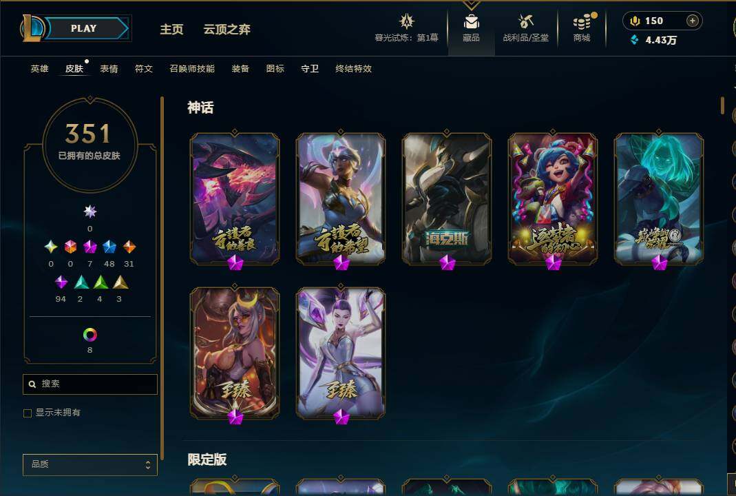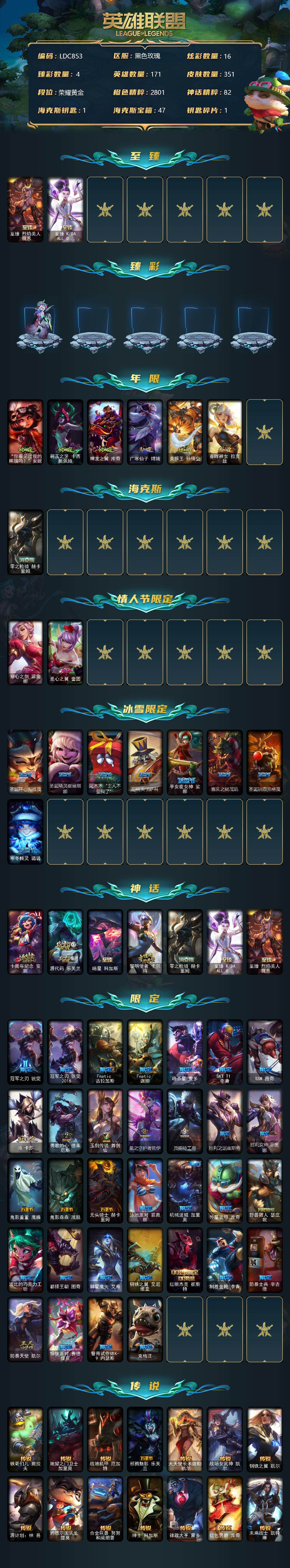 【LDC853】171英雄/351皮肤/7神话/48限定/4臻彩/16炫彩/31传说/94史诗/黄金账号等级:314/至臻烈焰美人薇恩/至臻KDAALLOUT卡莎/天龙之子卡莎飞龙乘云/冠军之刃锐雯2016凯旋圣装/魔女阿卡丽虚荣/净雪之月莫甘娜冬虹/你看见过我的熊猫吗安妮/碧玉之牙卡西奥佩娅/神龙之翼库奇/广寒仙子嫦娥/美猴王孙悟空/春晖神女拉克丝/零之枪骑赫卡里姆/穿心之剑菲奥娜/觅心之翼奎因/圣诞开心鬼提莫/圣诞精灵崔丝塔娜/阿木木“主人不要我了”/胡桃夹子萨科/平安夜女神娑娜/喜庆之树茂凯/圣诞驯鹿克格莫/寒冬精灵璐璐/十周年纪念安妮/源代码乐芙兰/暗星科加斯/黎明使者卡尔玛/冠军之刃锐雯/冠军之刃锐雯2016/Fnatic古拉加斯/Fnatic迦娜/暗杀星蒙多/SKTT1李青/SSW图奇/iG卡莎/勇敢的心德莱厄斯/玉剑传说舞剑仙/星之守护者佐伊/灵能特工易/胜利之运崔斯特/胜利女神菲奥娜/鬼影重重魔腾/鬼影森森茂凯/无头骑士赫卡里姆/泳池派对菲奥娜/机械迷城加里奥/外星装甲库奇/野兽猎人瑟庄妮/波比的巧克力工坊/都铎王朝图奇/御星魔矢艾希/钢铁之翼艾尼维亚/红桃杰克崔斯特/制胜金靴李青/防暴士兵辛吉德/防暴天使凯尔/惊悚派对费德提克/警用试作体K9内瑟斯/克格汪/铁哥们儿奥拉夫/地狱之门卫士加里奥/战地机甲厄加特/邪鸦魅影乐芙兰/大天使长米迦勒凯尔/战场女武神凯尔/钢铁之翼凯尔/源计划林易/约德尔国队长提莫/合金巨兽努努和威朗普/绅士科加斯/律政大亨蒙多/红色男爵库奇/未来战士凯特琳/陆地王者4WD布里茨/丧尸布兰德/第三类接触黑默丁格/炼狱魔犬内瑟斯/战斗学院伊泽瑞尔/枯萎之壤泽拉斯/黯黑魔龙希瓦娜/符文战熊沃利贝尔/苍穹之光韦鲁斯/宇航员诺提勒斯/金牌主播德莱文/霸天异形卡兹克/灌篮高手德莱厄斯/神王德莱厄斯/黑夜使者亚索/星之守护者金克丝/西部魔影卢锡安/安伯斯与提妮/特战先锋赵信/翼骑统领赵信/摄魂男爵弗拉基米尔/铁钩船长费德提克/圣光审判凯尔/侍魂易/地狱火阿利斯塔/战争机器赛恩/战场公主希维尔/钢铁之心希维尔/月光女神阿忒弥斯索拉卡/圣洁化身索拉卡/源代码索拉卡/熊猫提莫/火箭达人崔丝塔娜/狼外婆沃里克/女船长厄运小姐/国王泰达米尔/百夫长贾克斯/刀锋女王莫甘娜/黑色荆棘莫甘娜/炼金狂士辛吉德/熔火之心拉莫斯/全金属狂潮拉莫斯/贵族血统萨科/飞越疯人院萨科/武动巅峰萨科/战争血统蒙多/夜行义贼艾瑞莉娅/海克斯科技迦娜/血石诅咒塔里克/北领前线斯维因/绝代智将斯维因/抵抗军天使凯特琳/霸天巨兽墨菲特/海贼魅影卡特琳娜/源计划雄心卡特琳娜/蓝焰梦魔魔腾/符文战神雷克顿/暗星嘉文四世/死亡绽放伊莉丝/腥红之月伊莉丝/灵骨工匠奥莉安娜/至高之拳李青/地下拳王李青/苍穹之光薇恩/法老王朝内瑟斯/艳后奈德丽/四神之力乌迪尔/军神战甲波比/血色之锤波比/飞车暴走族古拉加斯/大夏武士潘森/冰川勇者伊泽瑞尔/银色之牙阿卡丽/刺客信条凯南/铁甲雄心盖伦/孤高游侠盖伦/钢铁烈阳蕾欧娜/至高君王玛尔扎哈/腥红之月泰隆/刺客信条锐雯/血色精锐锐雯/帝王斑蝶克格莫/侏罗纪化石克格莫/腥红之月鬼武者慎/战国大名慎/奥术光辉拉克丝/ODST地狱伞兵拉克丝/星际迷航拉克丝/钢之逆鳞希瓦娜/银河魔装机神希瓦娜/黑帮教父格雷福斯/铁血猎人雷恩加尔/奥术大师吉格斯/暗星卡兹克/铁血帝皇德莱厄斯/生化骑士德莱厄斯/刀锋女王丽桑卓/暗黑女武神黛安娜/血羽凤凰奎因/野火之藤婕拉/萌侦探喵尔摩斯/邪恶魔人扎克/西部牛仔亚索/源计划风亚索/苍穹之光维克兹/黑帮狂花金克丝/五星大厨塔姆/源计划雷卢锡安/霸天剑魔亚托克斯/幽冥领主阿兹尔/腥红之月锤石/五杀摇滚鼓手奥拉夫/星空之门内瑟斯/拆弹专家黑默丁格/冰河时代奥拉夫/创意工坊黑默丁格/烈焰猛士奥拉夫/钢铁终结者赛恩/魔导绅士维迦/宗师级锻造训练师/牛扒狂战奥拉夫/幽蓝梦魇加里奥/未来战士崔斯特/深渊巨蟹厄加特/社会名流乐芙兰/弗拉基米尔伯爵/弗拉基米尔侯爵/幽魂费德提克/星战易/斗牛士阿利斯塔/荒野镖客阿利斯塔/后场堡垒阿利斯塔/部落精神瑞兹/美国大叔瑞兹/宗师级法师训练师瑞兹/武仙座海格力斯赛恩/原野伐木工赛恩/光明骑士希维尔/蕉泥座人索拉卡/约德尔海贼团崔丝塔娜/欧米伽小队魔鬼伞兵/冻原猎手沃里克/黑暗骑士沃里克/西部牛仔厄运小姐/勇敢的心艾希/梦魇泰达米尔/冰球队员贾克斯/复仇武神贾克斯/源计划孤狼贾克斯/杀戮天使昔拉莫甘娜/地狱厨房莫甘娜/嘻哈精神基兰/时间机器基兰/腥红之月基兰/机械污染辛吉德/冲浪高手辛吉德/科学狂人辛吉德/黑色天灾辛吉德/抵抗军绿魔辛吉德/黑暗女王伊芙琳/假面女皇伊芙琳/惊天魔盗伊芙琳/首领图奇/北风冻原图奇/黑金诱惑图奇/横行霸道图奇/绝影神偷图奇/自由女神卡尔萨斯/五杀摇滚主唱卡尔萨斯/梦魇科加斯/尼斯巨兽科加斯/情绪摇滚阿木木/铬金铠甲拉莫斯/忍龟拉莫斯/沙之守护拉莫斯/联盟之喙艾尼维亚/重甲猎鹰艾尼维亚/恐怖之源萨科/小丑工作坊萨科/战栗之毒蒙多/健美教练蒙多/嗜血行刑蒙多/硬汉蒙多/缪斯女神娑娜/奥德赛娑娜/深海一号卡萨丁/虚空前世卡萨丁/凌云之翼艾瑞莉娅/暴风女神迦娜/玉剑传说风仙子/大力水手普朗克/海牛骑手库奇/日冕女神卡尔玛/传统服饰卡尔玛/白魔法师维迦/永恒之森维迦/垃圾场特朗德尔/传统造型特朗德尔/巡逻警官特朗德尔/