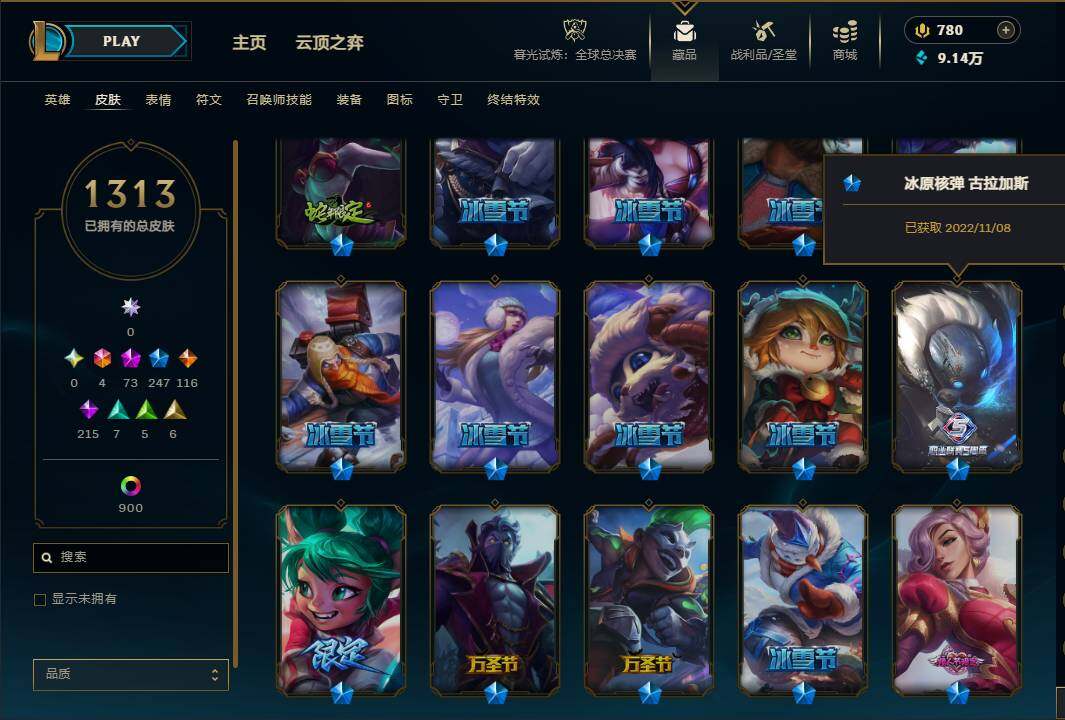 【皮肤数量: 1313】