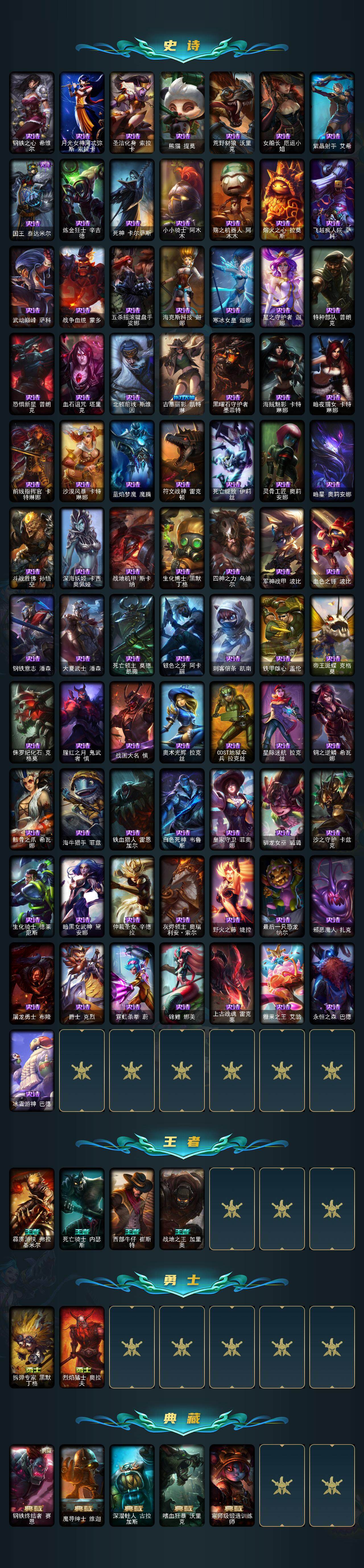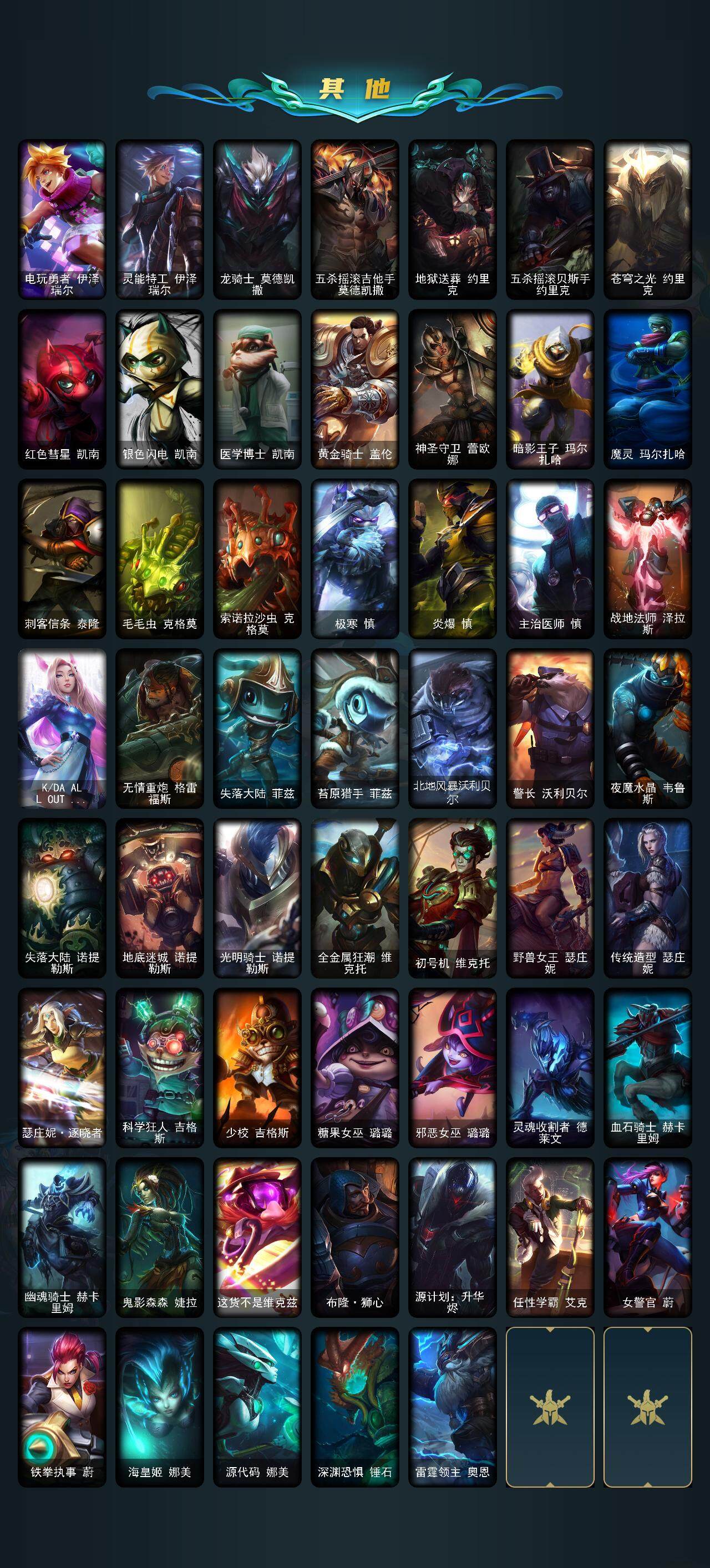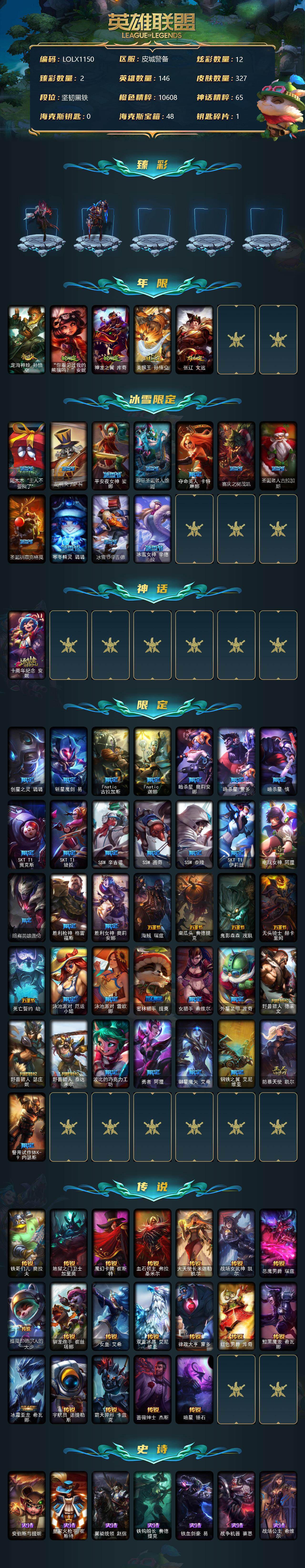 【LOLX1150】146英雄/327皮肤/1神话/52限定/2臻彩/12炫彩/19传说/85史诗/未定级账号等级:290/西部魔影卢锡安贝利尔之怠/玉剑传说无劫胭脂/定海神珍孙悟空/你看见过我的熊猫吗安妮/神龙之翼库奇/美猴王孙悟空/张辽文远/阿木木“主人不要我了”/胡桃夹子萨科/平安夜女神娑娜/邪恶圣诞老人维迦/夺命美人卡特琳娜/喜庆之树茂凯/圣诞老人古拉加斯/圣诞驯鹿克格莫/寒冬精灵璐璐/冰雪节辛吉德/冰雪女神辛德拉/十周年纪念安妮/创星之灵璐璐/斩星魔剑易/Fnatic古拉加斯/Fnatic迦娜/暗杀星奥莉安娜/暗杀星蒙多/暗杀星慎/SKTT1贾克斯/SKTT1婕拉/SSW辛吉德/SSW图奇/SSW泰隆/SKTT1伊莉丝/电玩女神阿狸/暗裔英雄盖伦/胜利枪神格雷福斯/胜利女神奥莉安娜/海贼瑞兹/南瓜头费德提克/鬼影森森茂凯/无头骑士赫卡里姆/死亡誓约劫/泳池派对厄运小姐/泳池派对蕾欧娜/密林猎手提莫/女猎手希维尔/外星装甲库奇/野兽猎人德莱文/野兽猎人瑟庄妮/野兽猎人泰达米尔/波比的巧克力工坊/勇者阿狸/御星魔矢艾希/钢铁之翼艾尼维亚/防暴天使凯尔/警用试作体K9内瑟斯/铁哥们儿奥拉夫/地狱之门卫士加里奥/魔幻卡牌崔斯特/血石领主弗拉基米尔/大天使长米迦勒凯尔/战场女武神凯尔/恶魔男爵瑞兹/提莫约德尔人的一大步/驯龙炮手崔丝塔娜/女皇艾希/双重冰晶艾尼维亚/律政大亨蒙多/红色男爵库奇/黯黑魔龙希瓦娜/冰霜亚龙希瓦娜/宇航员诺提勒斯/霸天异形卡兹克/蔷薇绅士杰斯/暗星锤石/安伯斯与提妮/皇家火枪手崔斯特/翼骑统领赵信/铁钩船长费德提克/铁血剑豪易/战争机器赛恩/战场公主希维尔/钢铁之心希维尔/月光女神阿忒弥斯索拉卡/圣洁化身索拉卡/熊猫提莫/荒野豺狼沃里克/女船长厄运小姐/紫晶射手艾希/国王泰达米尔/炼金狂士辛吉德/死神卡尔萨斯/小小骑士阿木木/殇之机器人阿木木/熔火之心拉莫斯/飞越疯人院萨科/武动巅峰萨科/战争血统蒙多/五杀摇滚键盘手娑娜/海克斯科技迦娜/寒冰女皇迦娜/星之守护者迦娜/特种部队普朗克/恐惧新星普朗克/血石诅咒塔里克/北领前线斯维因/古墓丽影凯特琳/黑曜石守护者墨菲特/海贼魅影卡特琳娜/暗夜猫女卡特琳娜/前线指挥官卡特琳娜/沙漠风暴卡特琳娜/蓝焰梦魔魔腾/符文战神雷克顿/死亡绽放伊莉丝/灵骨工匠奥莉安娜/暗星奥莉安娜/斗战胜佛孙悟空/深海妖姬卡西奥佩娅/战地机甲斯卡纳/生化博士黑默丁格/四神之力乌迪尔/军神战甲波比/血色之锤波比/钢铁意志潘森/大夏武士潘森/死亡领主莫德凯撒/银色之牙阿卡丽/刺客信条凯南/铁甲雄心盖伦/帝王斑蝶克格莫/侏罗纪化石克格莫/腥红之月鬼武者慎/战国大名慎/奥术光辉拉克丝/ODST地狱伞兵拉克丝/星际迷航拉克丝/钢之逆鳞希瓦娜/骸骨之爪希瓦娜/海牛猎手菲兹/铁血猎人雷恩加尔/白色死神韦鲁斯/皇家守卫菲奥娜/驯龙女巫璐璐/沙之守护卡兹克/生化骑士德莱厄斯/暗黑女武神黛安娜/仲裁圣女辛德拉/灰烬领主奥瑞利安索尔/野火之藤婕拉/最后一只恐龙纳尔/邪恶魔人扎克/屠龙勇士布隆/爵士克烈/霓虹杀拳蔚/锦鲤娜美/上古战魂雷克塞/糖果之王艾翁/永恒之森巴德/冰雪游神巴德/霹雳游侠弗拉基米尔/死亡骑士内瑟斯/西部牛仔崔斯特/战地之王加里奥/拆弹专家黑默丁格/烈焰猛士奥拉夫/钢铁终结者赛恩/魔导绅士维迦/深潜蛙人古拉加斯/嗜血狂暴沃里克/宗师级锻造训练师/小红帽安妮/黑暗骑士奥拉夫/牛扒狂战奥拉夫/幽蓝梦魇加里奥/风执事加里奥/潮流女王乐芙兰/社会名流乐芙兰/弗拉基米尔伯爵/弗拉基米尔侯爵/学生会长弗拉基米尔/幽魂费德提克/联合王国费德提克/五杀摇滚女声主唱凯尔/斗牛士阿利斯塔/荒野镖客阿利斯塔/后场堡垒阿利斯塔/哞利斯塔/部落精神瑞兹/宗师级法师训练师瑞兹/武仙座海格力斯赛恩/原野伐木工赛恩/光明骑士希维尔/森林女神索拉卡/蕉泥座人索拉卡/约德尔海贼团崔丝塔娜/脏兮兮努努和威朗普/西部牛仔厄运小姐/勇敢的心艾希/梦魇泰达米尔/冰球队员贾克斯/光明骑士贾克斯/地狱厨房莫甘娜/嘻哈精神基兰/时间机器基兰/腥红之月基兰/冲浪高手辛吉德/黑色天灾辛吉德/黑暗女王伊芙琳/假面女皇伊芙琳/惊天魔盗伊芙琳/腥红之月伊芙琳/首领图奇/北风冻原图奇/横行霸道图奇/自由女神卡尔萨斯/五杀摇滚主唱卡尔萨斯/梦魇科加斯/尼斯巨兽科加斯/情绪摇滚阿木木/王子不是我阿木木/铬金铠甲拉莫斯/忍龟拉莫斯/联盟之喙艾尼维亚/翼龙艾尼维亚/恐怖之源萨科/小丑工作坊萨科/万能小丑萨科/战栗之毒蒙多/健美教练蒙多/缪斯女神娑娜/寒冰王座卡萨丁/深海一号卡萨丁/虚空前世卡萨丁/先驱行者卡萨丁/凌云之翼艾瑞莉娅/暴风女神迦娜/大力水手普朗克/昔日霸主普朗克/日冕女神卡尔玛/樱花乱舞卡尔玛/绿水晶光辉塔里克/冰壶选手维迦/灰胡子魔法师维迦/绿野仙踪维迦/里尔击球手特朗德尔/垃圾场特朗德尔/传统造型特朗德尔/海贼参谋斯维因/铁锈斑斑布里茨/三叶草墨菲特/幻影梦魔魔腾/劫掠梦魇魔腾/恶咒亡魂魔腾/烈焰古树茂凯/星河战队雷克顿/荒野之咬雷克顿/血石战神雷克顿/恶灵布偶奥莉安娜/末日余生布兰德/热带丛林兰博/独眼海盗兰博/荒漠之咬卡西奥佩娅/蛇发女妖卡西奥佩娅/沙暴巨蝎斯卡纳/远土之灵斯卡纳/沙之守护斯卡纳/创世之神内瑟斯/丛林猎豹奈德丽/法国女仆奈德丽/武力全开乌迪尔/这货不是乌迪尔/乡村农夫古拉加斯/美酒节