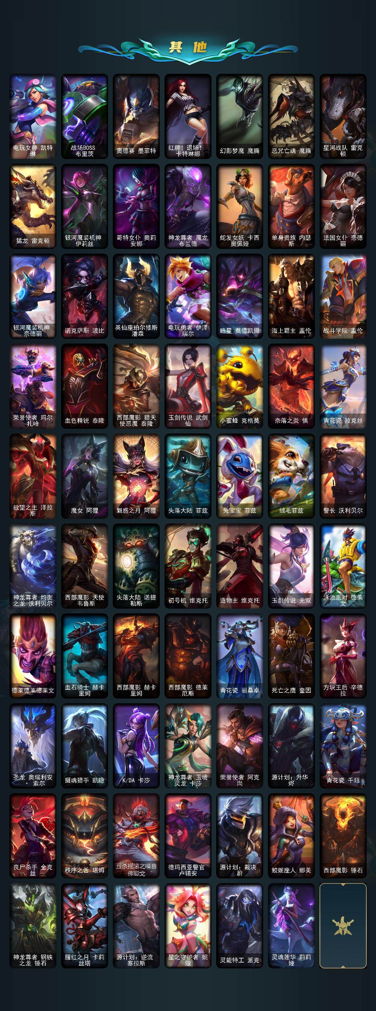 【LOLQH2】172英雄/221皮肤/5终极/4神话/28限定/7臻彩/38炫彩/31传说/39史诗/未定级/至臻灵魂莲华提莫/无畏骑士瑟庄妮赤子初心/征服者韦鲁斯炫金/闭月之颜貂蝉炫金莲华/战斗学院卡特琳娜盛典礼服/可爱可爱粉红红布里茨/魔女阿卡丽虚荣/净雪之月莫甘娜冬虹/定海神珍孙悟空/天龙之子斯莫德/海克斯科技阿木木/摄魂使者薇恩/觅心魔灵奥莉安娜/水晶玫瑰阿克尚/幸福女神乐芙兰/胡桃夹子萨科/魄罗骑士瑟庄妮/北极星使者彗/大元素使拉克丝/KDAALLOUT萨勒芬妮独立音乐人/灵魂守卫乌迪尔/水晶圣骑蕾欧娜/Fnatic卡尔萨斯/SSW辛吉德/SSW泰隆/SKTT1扎克/FPX普朗克/FPX墨菲特/DWG奈德丽/EDG格雷福斯/EDG厄斐琉斯/EDG悠米/DRX凯特琳/玉剑传说无劫/暗裔英雄盖伦/胜利凤凰艾尼维亚/死亡誓约卡特琳娜/泳池派对瑟提/暗影沃里克/都铎王朝图奇/防暴天使凯尔/海之歌永恩/战地机甲厄加特/邪鸦魅影乐芙兰/源计划林易/日蚀骑士希维尔/约德尔国队长提莫/合金巨兽努努和威朗普/源计划联合艾希/冰霜之刃艾瑞莉娅/女主播迦娜/上古战魂魔腾/源计划净化薇恩/炼狱魔犬内瑟斯/屠龙勇士潘森/战斗学院伊泽瑞尔/青花瓷伊泽瑞尔/源计划超体莫德凯撒/星之守护者阿卡丽/死亡骑士盖伦/冰霜亚龙希瓦娜/灌篮高手德莱厄斯/神王德莱厄斯/蔷薇绅士杰斯/青花瓷奥瑞利安索尔/奥德赛凯隐/星之守护者卡莎/黑夜使者亚索/星之守护者金克丝/西部天使赛娜/西部魔影卢锡安/星之守护者霞/源计划毁灭派克/安伯斯与提妮/腥红之月崔斯特/翼骑统领赵信/圣光审判凯尔/侍魂易/荒野豺狼沃里克/黑帮狂花厄运小姐/侏罗纪化石科加斯/掠星魔刃卡萨丁/北领前线斯维因/绝代智将斯维因/古墓丽影凯特琳/枯萎之壤雷克顿/暗星嘉文四世/三昧真火孙悟空/军神战甲波比/星之守护者波比/冰川勇者伊泽瑞尔/死亡领主莫德凯撒/腥红之月凯南/源计划山蕾欧娜/至高君王玛尔扎哈/帝王斑蝶克格莫/战国大名慎/暗黑武士雷恩加尔/驯龙女巫璐璐/死亡绽放卡兹克/生化骑士德莱厄斯/暗黑女武神黛安娜/灰烬领主奥瑞利安索尔/西部牛仔亚索/源代码卡蜜尔/银河魔装机神千珏/黑帮狂花金克丝/源计划雷卢锡安/冲击之刃劫/源计划自由艾克/霸天剑魔亚托克斯/暮星之羽霞/死亡骑士内瑟斯/战地之王加里奥/冰河时代奥拉夫/创意工坊黑默丁格/屠龙勇士奥拉夫/风执事加里奥/未来战士崔斯特/黑暗骑士赵信/波江星神弗拉基米尔/荒野幽灵费德提克/玉剑传说无极/斗牛士阿利斯塔/哞利斯塔/部落精神瑞兹/沙之守护瑞兹/星之守护者索拉卡/欧米伽小队魔鬼伞兵/源计划末日沃里克/古神沃里克/小蜜蜂努努和威朗普/西部牛仔厄运小姐/极地女神艾希/黑暗骑士艾希/黑夜使者泰达米尔/武神贾克斯/玉剑传说苍鸾/探戈灵魂伊芙琳/腥红之月伊芙琳/横行霸道图奇/屠龙勇士图奇/梦魇科加斯/暴龙科加斯/山海绘卷科加斯/鳄加斯/狂欢阿木木/情绪摇滚阿木木/青花瓷阿木木/宇航员拉莫斯/泳池派对蒙多/硬汉蒙多/玉剑传说琴仙子/光明骑士卡尔玛/永恒之森维迦/宇航员维迦/屠龙勇士特朗德尔/荒野治安官凯特琳/电玩女神凯特琳/战场BOSS布里茨/奥德赛墨菲特/红牌退场卡特琳娜/幻影梦魔魔腾/恶咒亡魂魔腾/星河战队雷克顿/猛龙雷克顿/银河魔装机神伊莉丝/哥特女仆奥莉安娜/神龙尊者魔龙布兰德/蛇发女妖卡西奥佩娅/单身贵族内瑟斯/法国女仆奈德丽/银河魔装机神奈德丽/诺克萨斯波比/英仙座珀尔修斯潘森/电玩勇者伊泽瑞尔/暗星莫德凯撒/海上霸主盖伦/战斗学院盖伦/荣誉使者玛尔扎哈/血色精锐泰隆/西部魔影猎天使恶魔泰隆/玉剑传说武剑仙/小蜜蜂克格莫/奈落之炎慎/青花瓷拉克丝/欲望之主泽拉斯/魔女阿狸/魅惑之月阿狸/失落大陆菲兹/兔宝宝菲兹/绒毛菲兹/警长沃利贝尔/神龙尊者均衡之龙沃利贝尔/西部魔影天使韦鲁斯/失落大陆诺提勒斯/初号机维克托/造物主维克托/玉剑传说无双/泳池派对德莱文/德莱德莱德莱文/血石骑士赫卡里姆/西部魔影赫卡里姆/西部魔影德莱厄斯/青花瓷丽桑卓/死亡之鹰奎因/方块王后辛德拉/圣龙奥瑞利安索尔/摄魂猎手凯隐/KDA卡莎/神龙尊者玉境灵龙卡莎/荣誉使者阿克尚/源计划升华烬/青花瓷千珏/丧尸杀手金克丝/秩序之舌塔姆/五杀摇滚之噪音佛耶戈/德玛西亚警官卢锡安/源计划裁决蔚/鲛妮座人娜美/西部魔影锤石/神龙尊者钢铁之龙锤石/腥红之月卡莉丝塔/源计划逆流塞拉斯/星之守护者妮蔻/灵能特工派克/灵魂莲华莉莉娅【按大区: 网通】