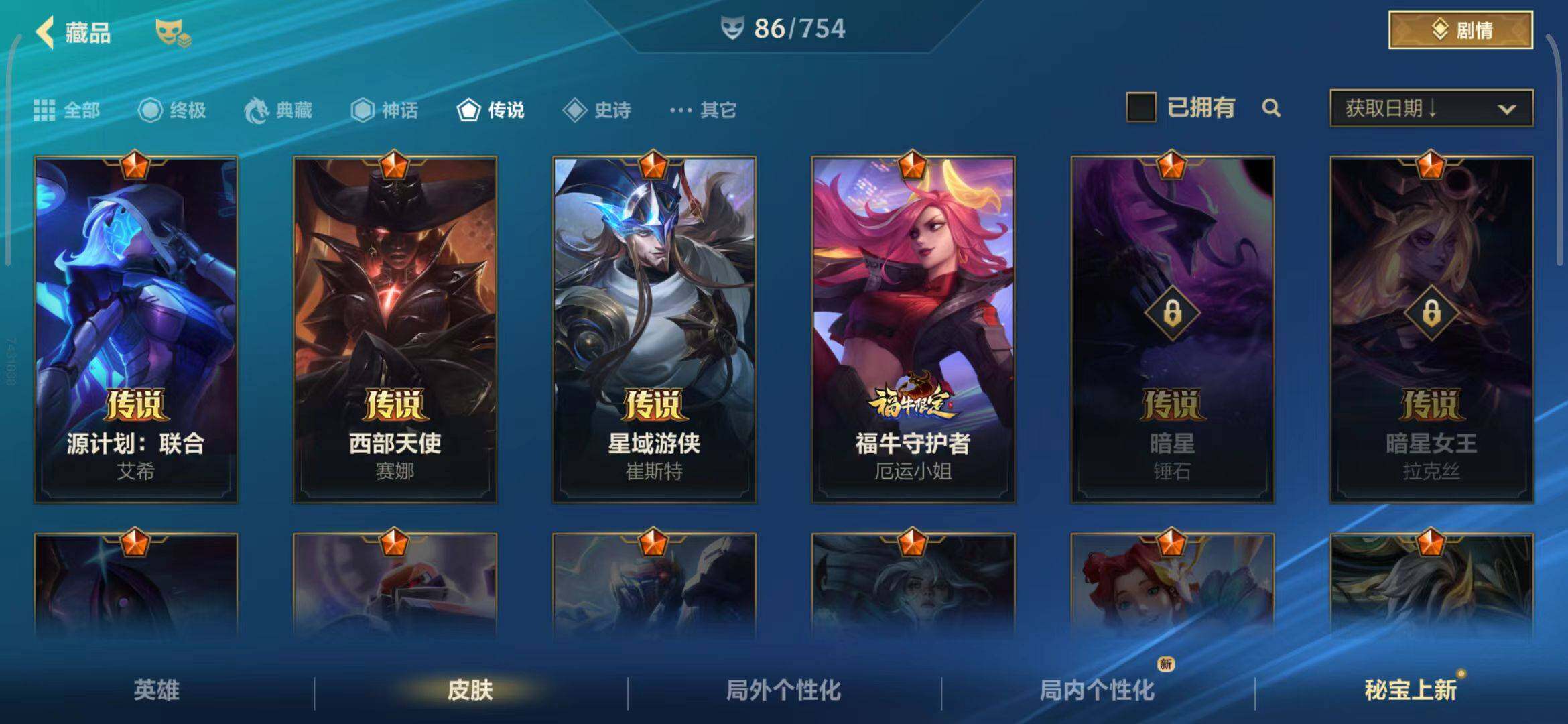 【传说皮肤】 星域游侠崔斯特 福牛守护者女枪 源计划联合艾希 西部天使赛娜