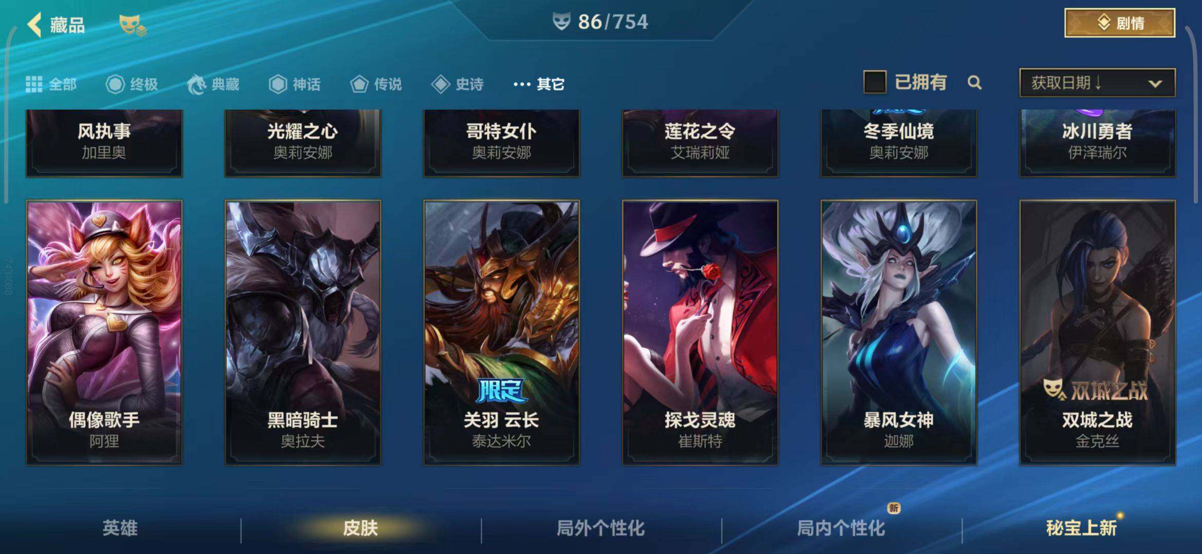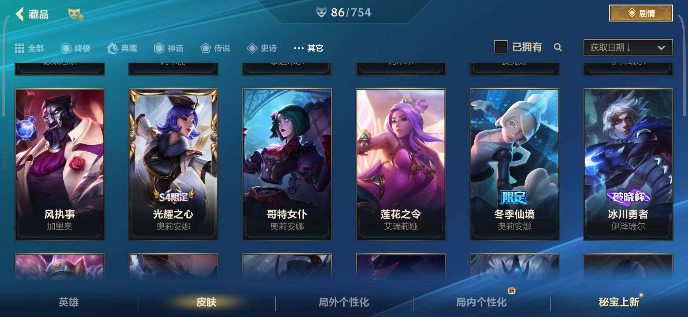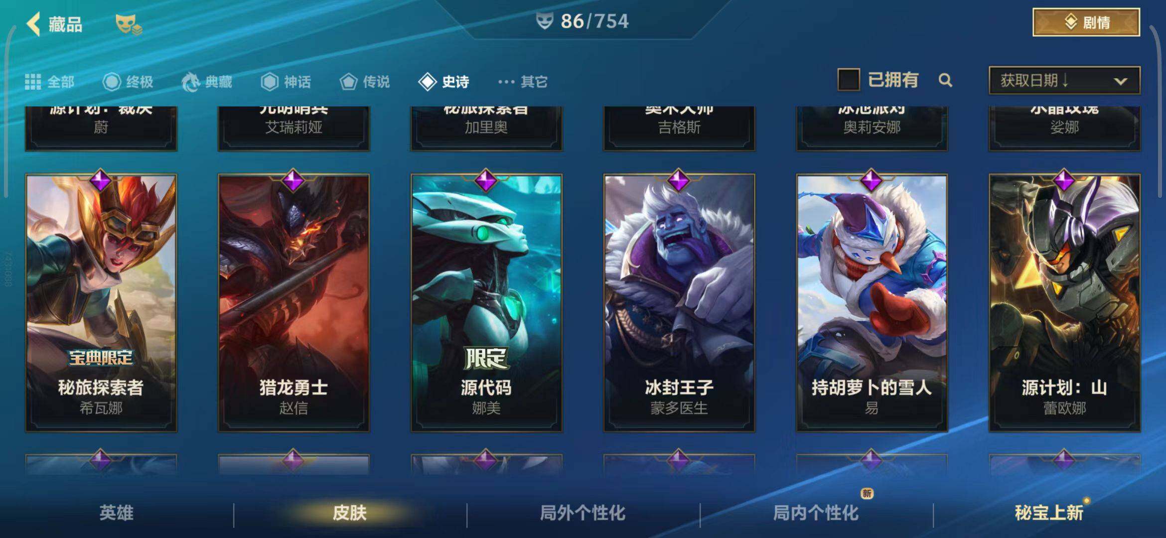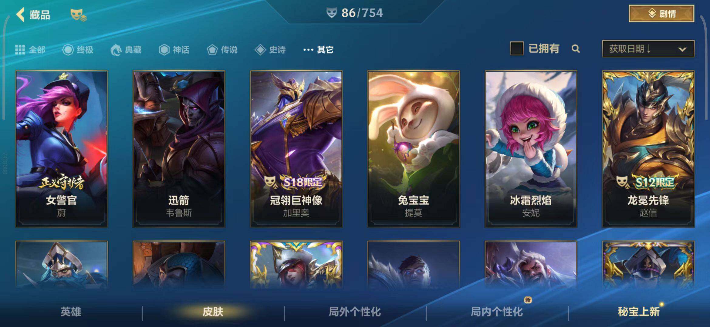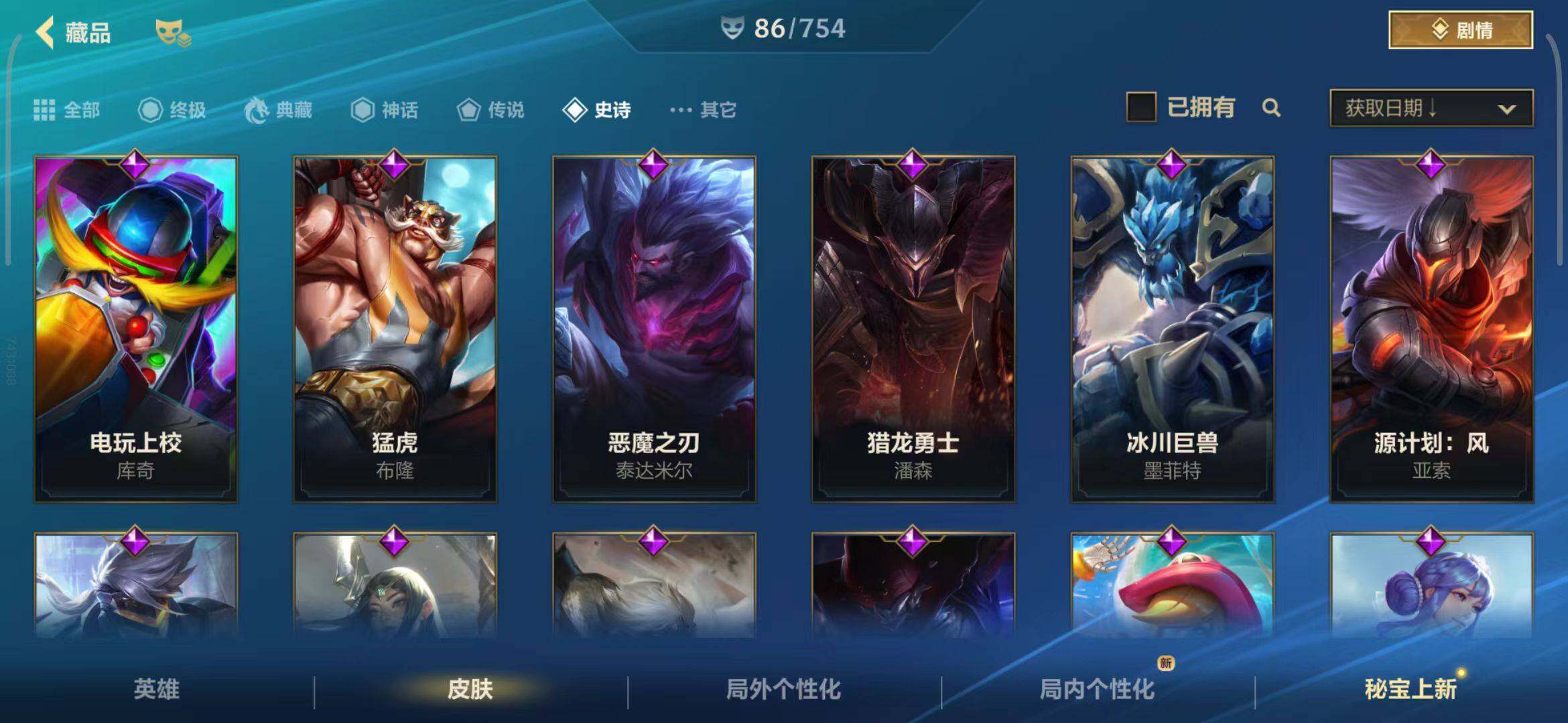 【史诗皮肤】 泳池派对奥利安娜 无限烈焰戴安娜 恶魔之刃泰达米尔 赵云 子龙 猎龙勇士赵信 猎龙勇士潘森 福牛守护者菲奥娜 福牛守护者安妮 源计划风亚索 源计划阴劫 源计划山蕾欧娜 水晶玫瑰琴女 源计划裁决蔚 福牛守护者嘉文四世 福牛守护者德莱厄斯 福牛守护者阿利斯塔 冰川巨兽墨菲特 奥术大师吉格斯