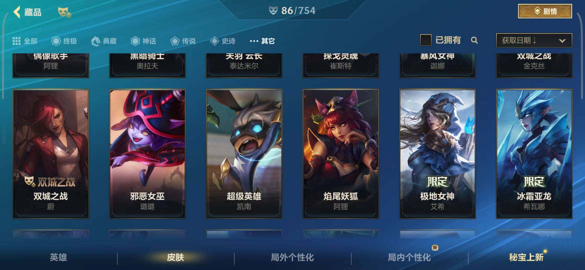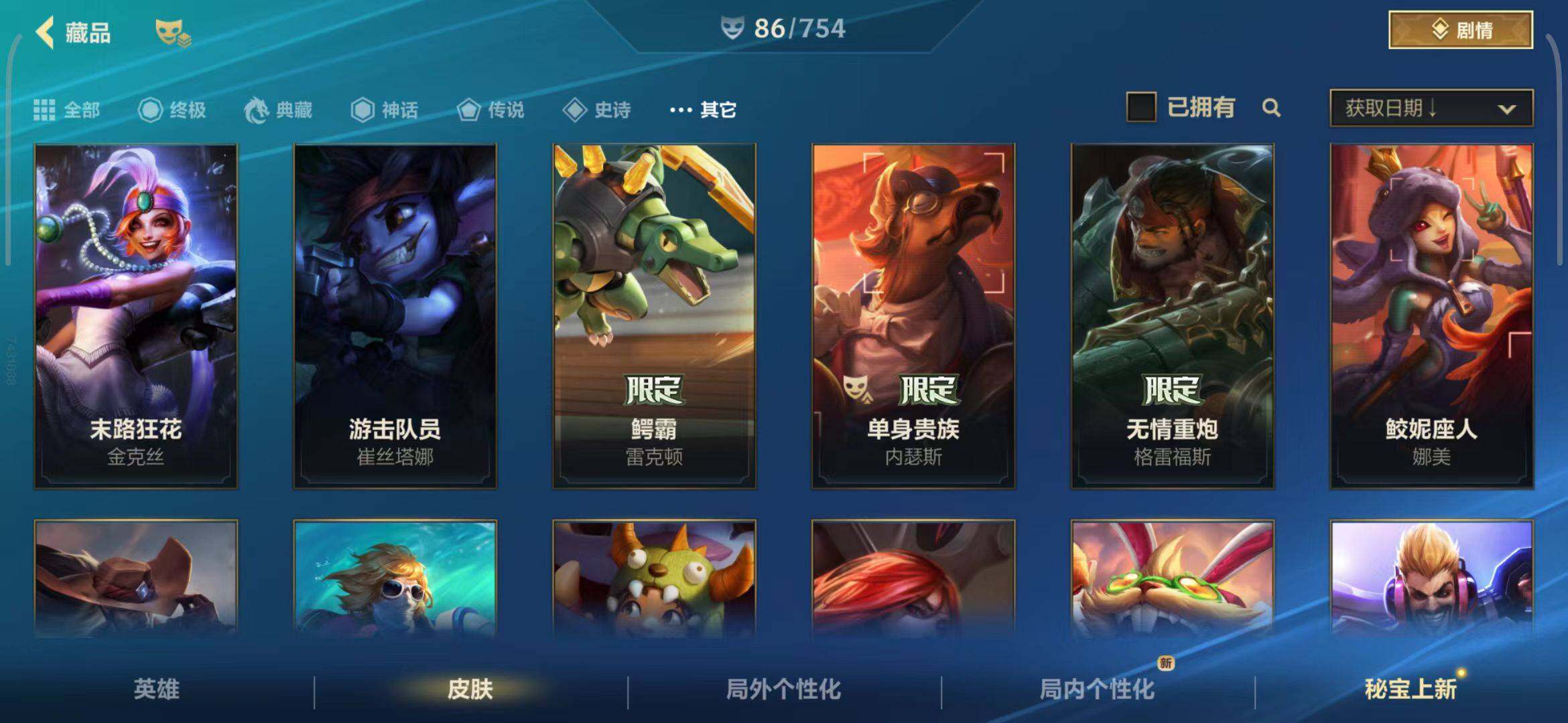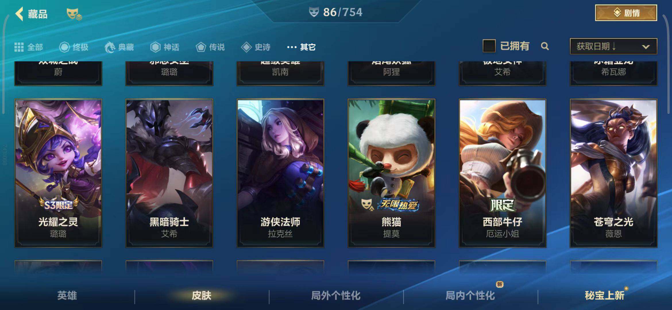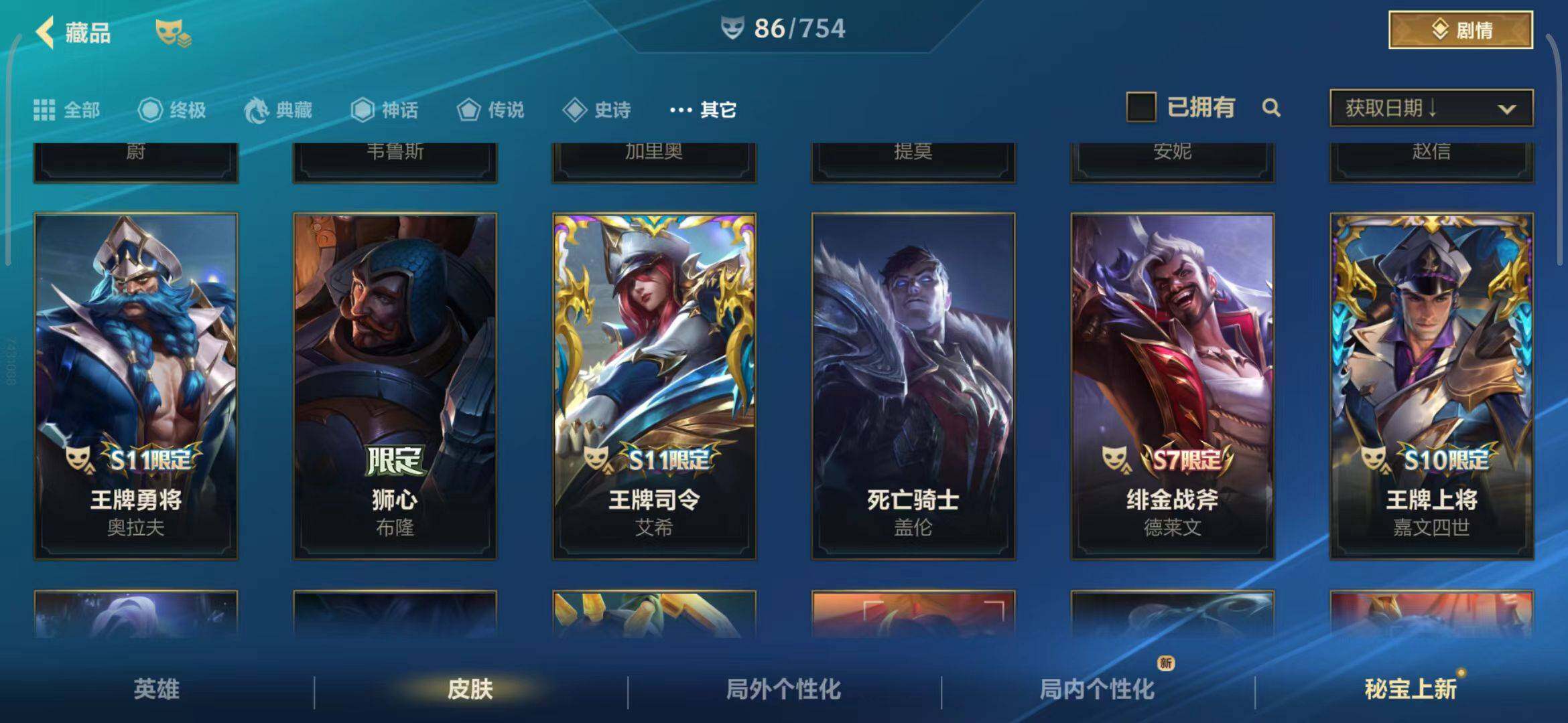 【史诗皮肤】 泳池派对奥利安娜 无限烈焰戴安娜 恶魔之刃泰达米尔 赵云 子龙 猎龙勇士赵信 猎龙勇士潘森 福牛守护者菲奥娜 福牛守护者安妮 源计划风亚索 源计划阴劫 源计划山蕾欧娜 水晶玫瑰琴女 源计划裁决蔚 福牛守护者嘉文四世 福牛守护者德莱厄斯 福牛守护者阿利斯塔 冰川巨兽墨菲特 奥术大师吉格斯