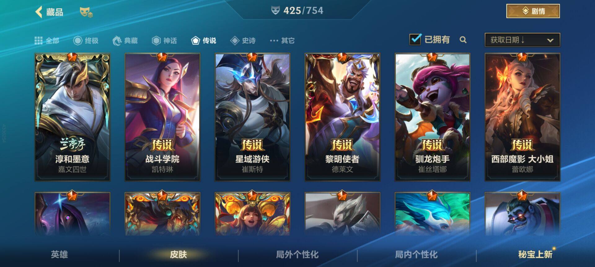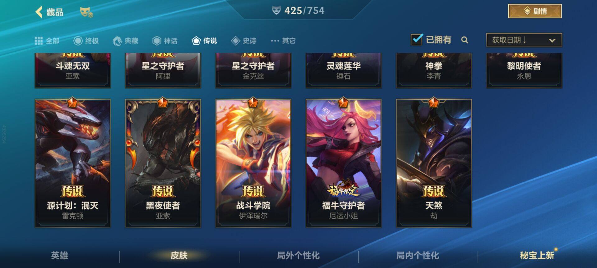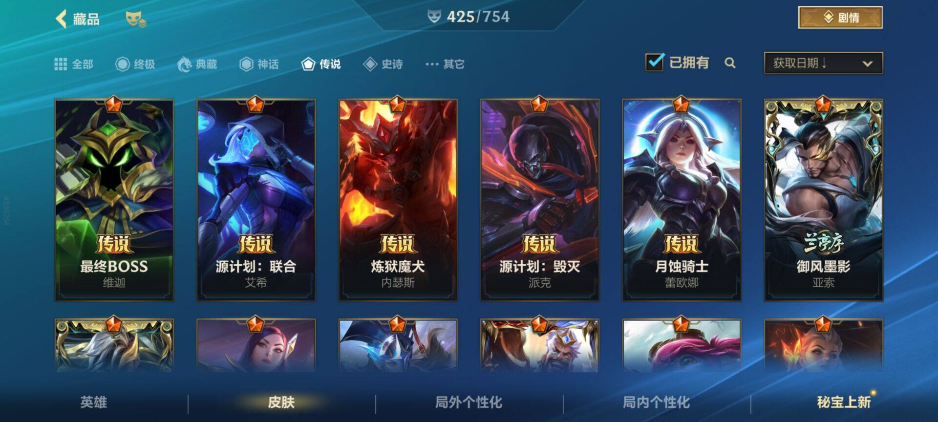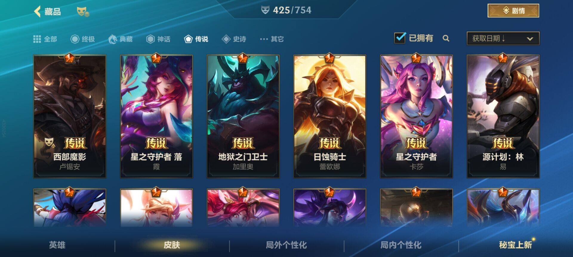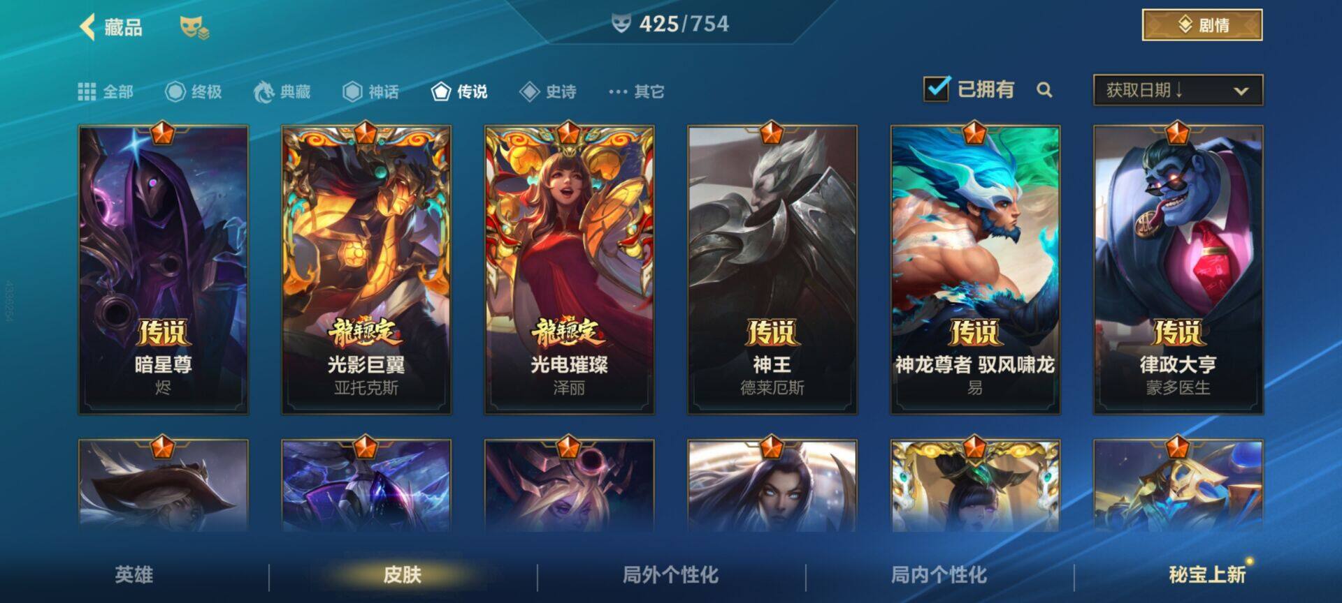 【传说皮肤】 暗星女王拉克丝 源计划-薇恩 光明哨兵薇恩 星之守护者金克丝 星域游侠崔斯特 K/DA-萨勒芬妮 黑夜使者亚索 星之守护者-阿狸 天煞劫 西部魔影卢锡安 神拳-李青 律政大亨 炼狱魔犬 福牛守护者女枪 神龙尊者御风啸龙易 神王德莱厄斯 源计划联合艾希 黎明使者锐雯 战斗学院伊泽瑞尔 地狱之门卫士 涂鸦小队莎弥拉 西部天使赛娜 灵魂莲华锤石 K/DA-卡莎 K/DA-阿卡丽 源计划-阿卡丽 星之守护者-萨勒芬妮 K/DA-阿狸 星之守护者-厄运小姐
