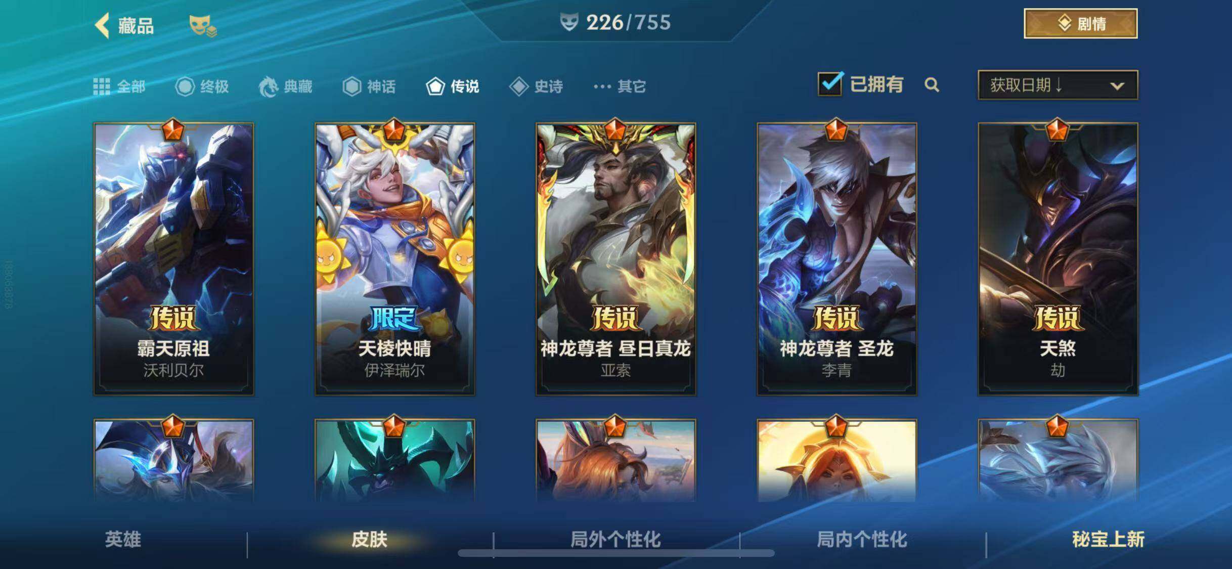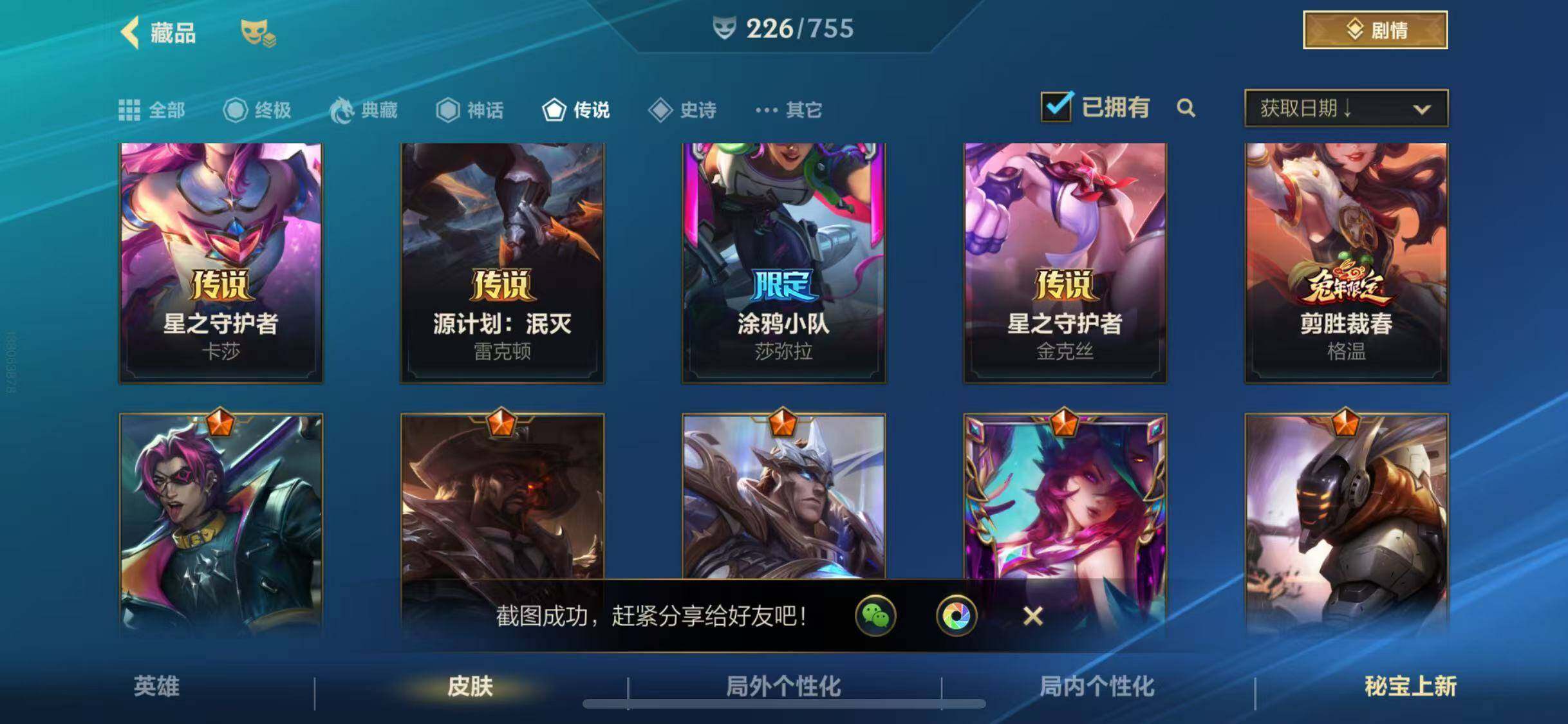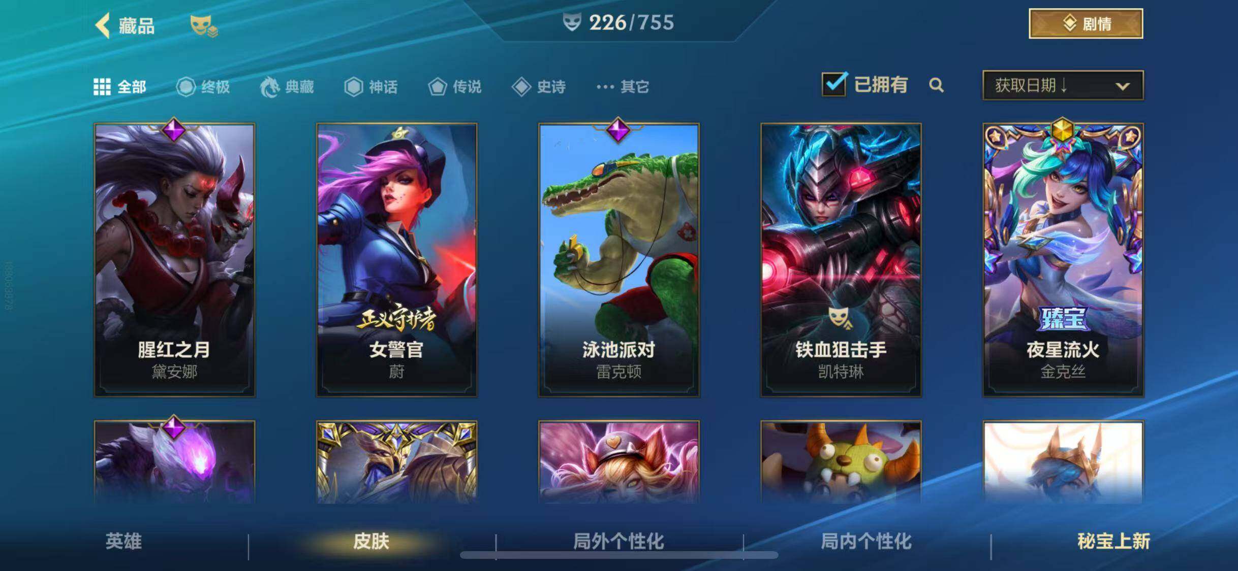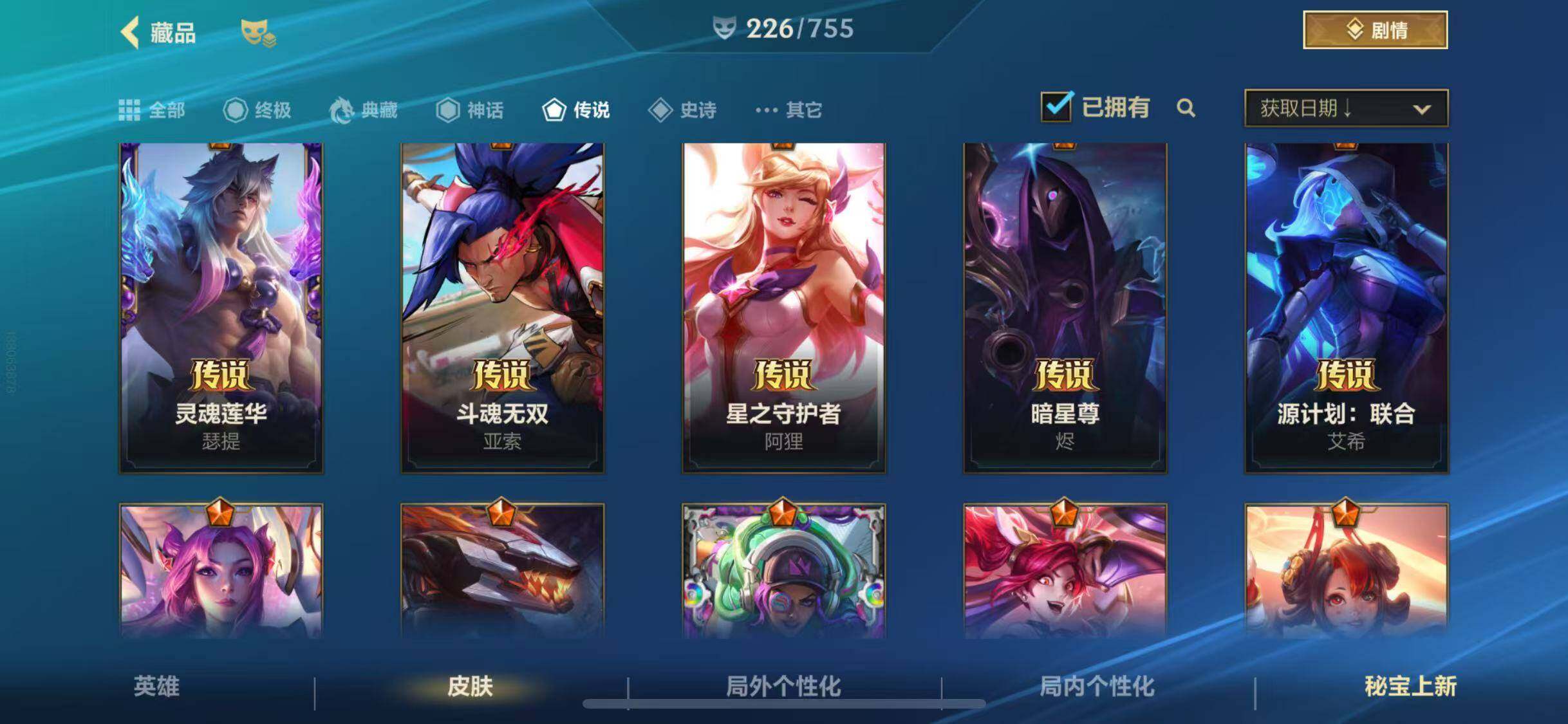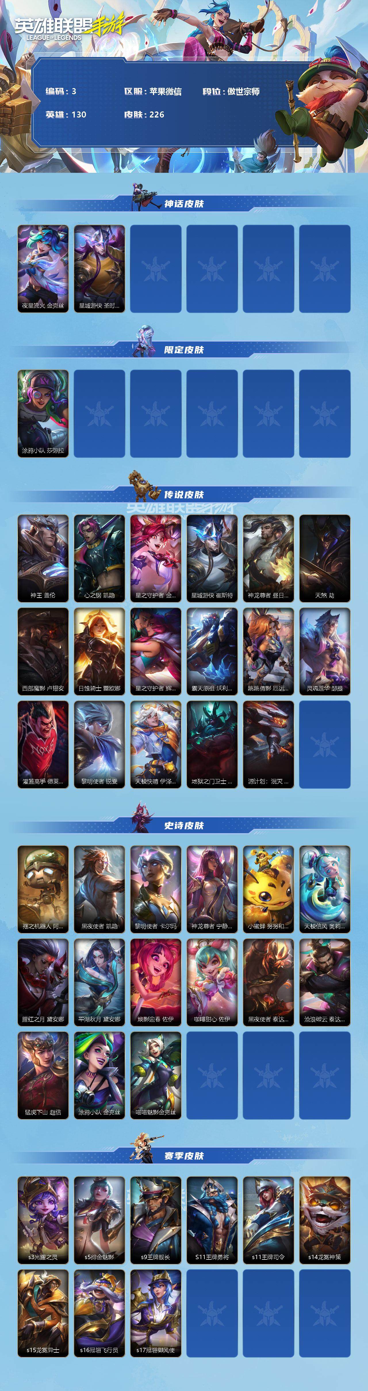 [12590541]英雄联盟手游:苹果WX-130英雄-226皮肤-2神话-30传说-103史诗