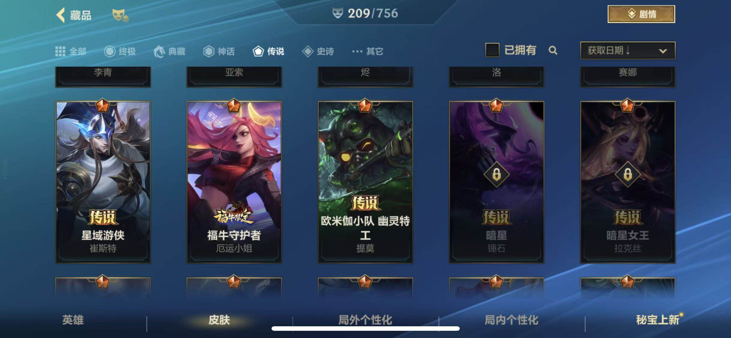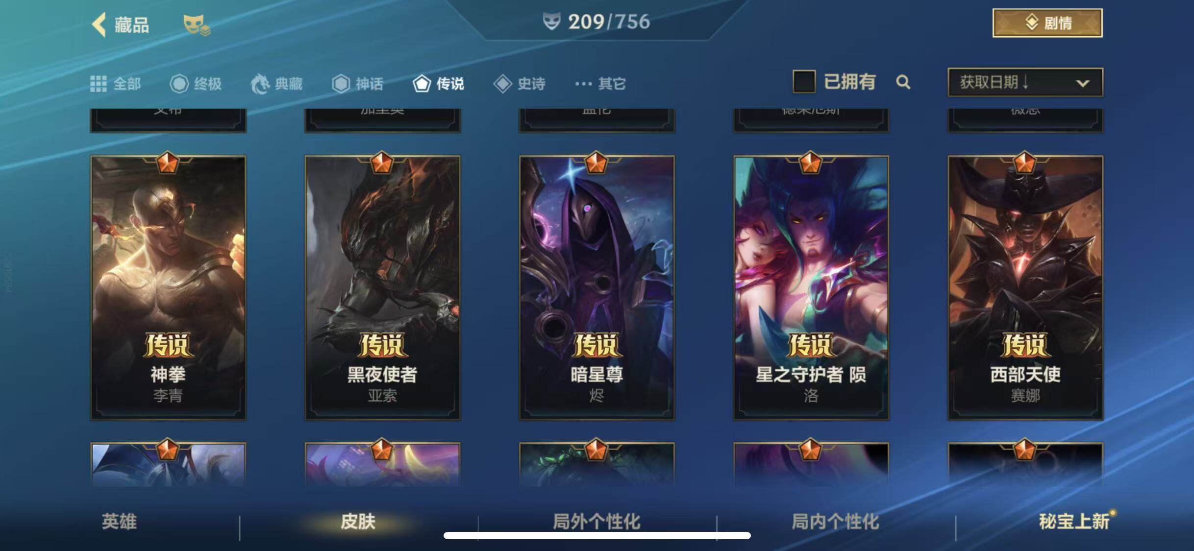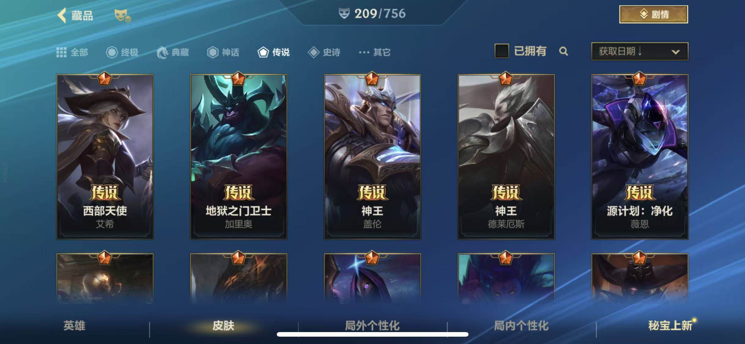 【传说皮肤】 神王盖伦 源计划-薇恩 星域游侠崔斯特 黑夜使者亚索 神拳-李青 福牛守护者女枪 神王德莱厄斯 地狱之门卫士 西部天使赛娜 源计划-烬 K/DA-卡莎 源计划-阿卡丽 K/DA-阿狸 星之守护者-厄运小姐 星之守护者-赛娜
