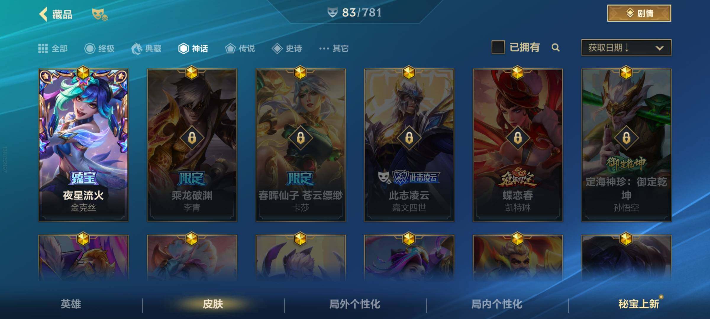 【史诗皮肤】 腥红之月戴安娜 猎龙勇士潘森 源计划阴劫 星之守护者璐璐 暮星之羽霞 霸天巨兽墨菲特 冰川巨兽墨菲特 死亡誓约卡特琳娜 真实伤害赛娜
