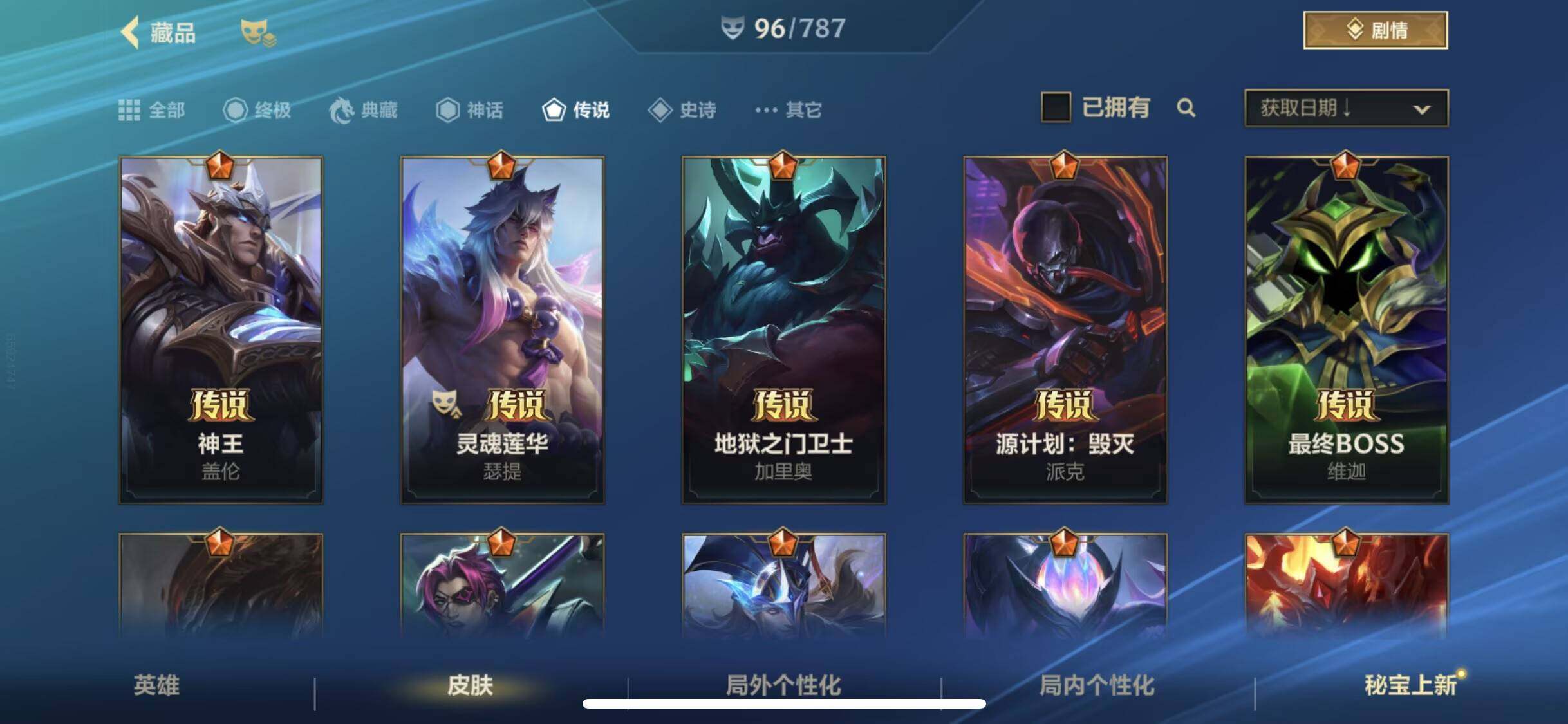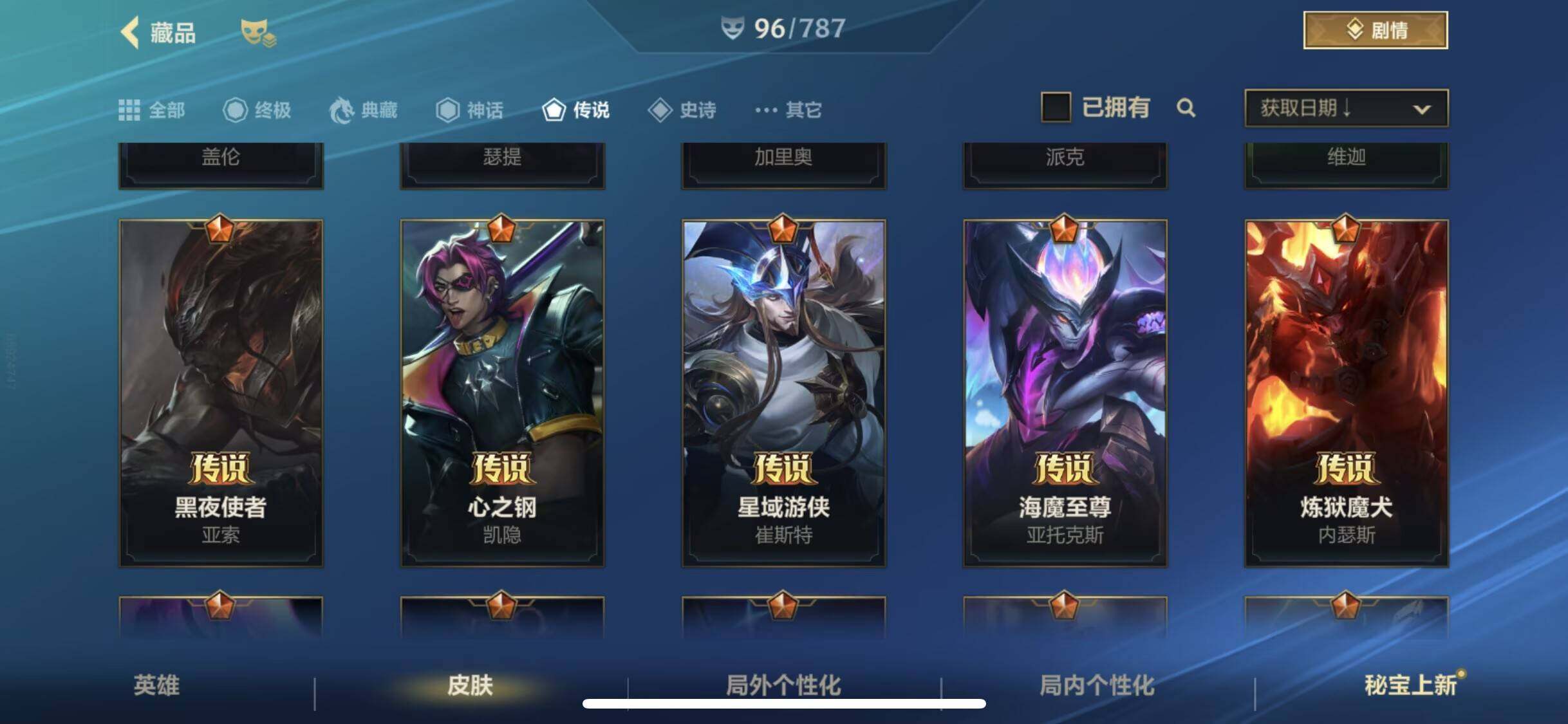 【传说皮肤】 神王盖伦 星域游侠崔斯特 黑夜使者亚索 炼狱魔犬 地狱之门卫士 K/DA-卡莎